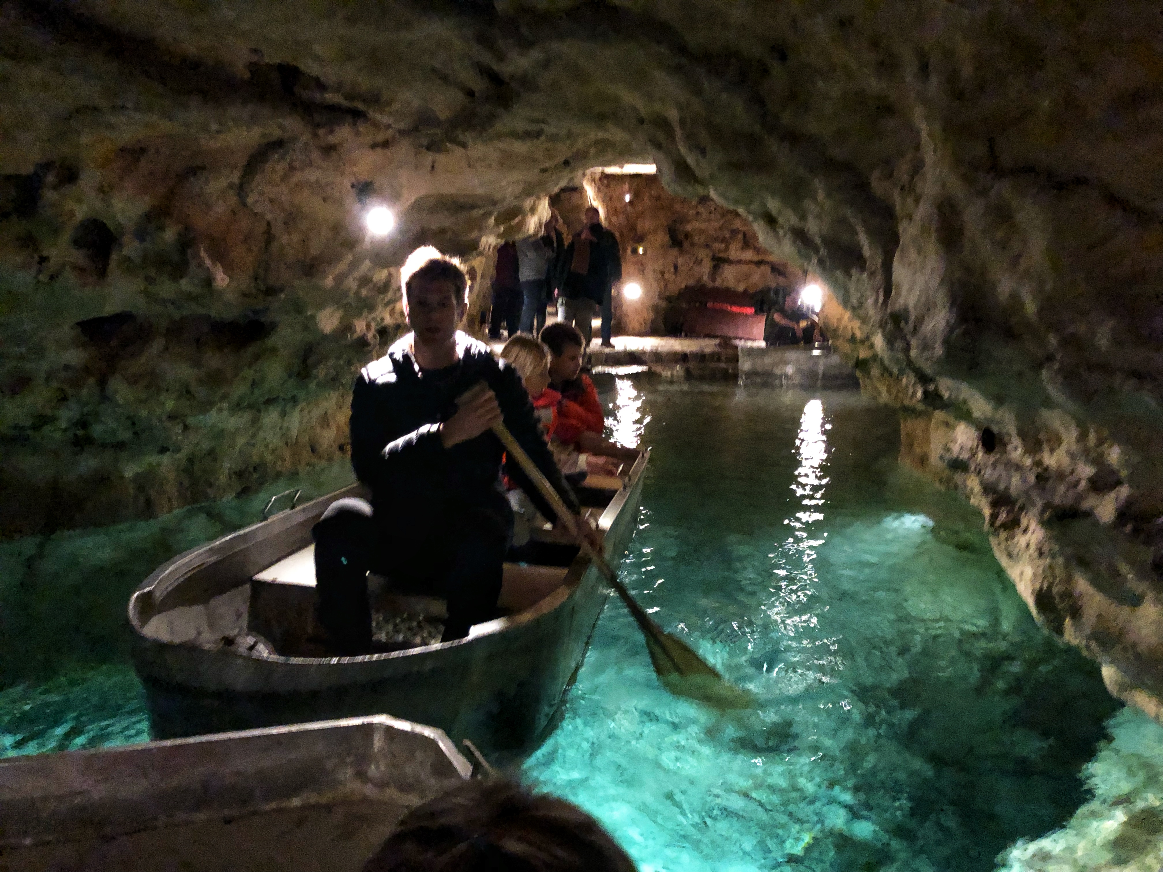 It was a rainy, gray day during the holiday break, and we were looking for a fun outing. The town of Tapolca, Hungary is less than an hour away from Pápa, where we heard about beautiful lake caves we had been wanting to explore. The caves were discovered over 100 years ago and have since been protected and maintained for tourism. It is clear the caves were structurally reinforced for safety and the lights under the water allowed for maximum beauty and appreciation of the space.