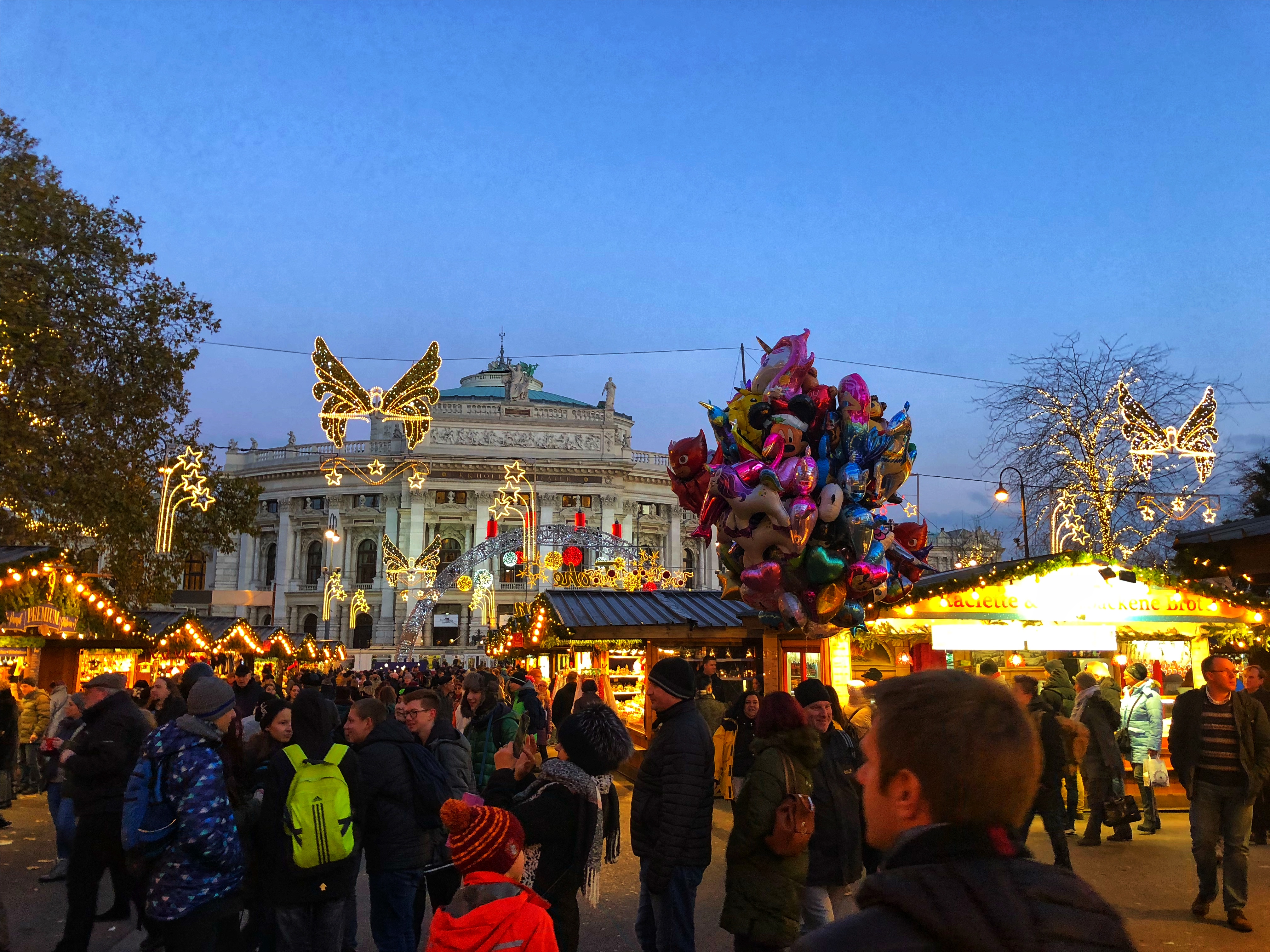 Christmas markets in Europe were in full swing by late November. We were able to visit one of the markets in Vienna, Austria, the markets in Budapest and Pápa, Hungary and the little lakeside market in Bled, Slovenia. These markets are wonderful at inspiring the holiday spirit. Dripping with lights and the tantalizing scents, tempting trinkets at every turn and holiday melodies propelled us into Christmas mode instantly! They’re a lot of fun – if for nothing more than the browsing, people watching, taste testing and of course, the hot drinks in collectible cups.