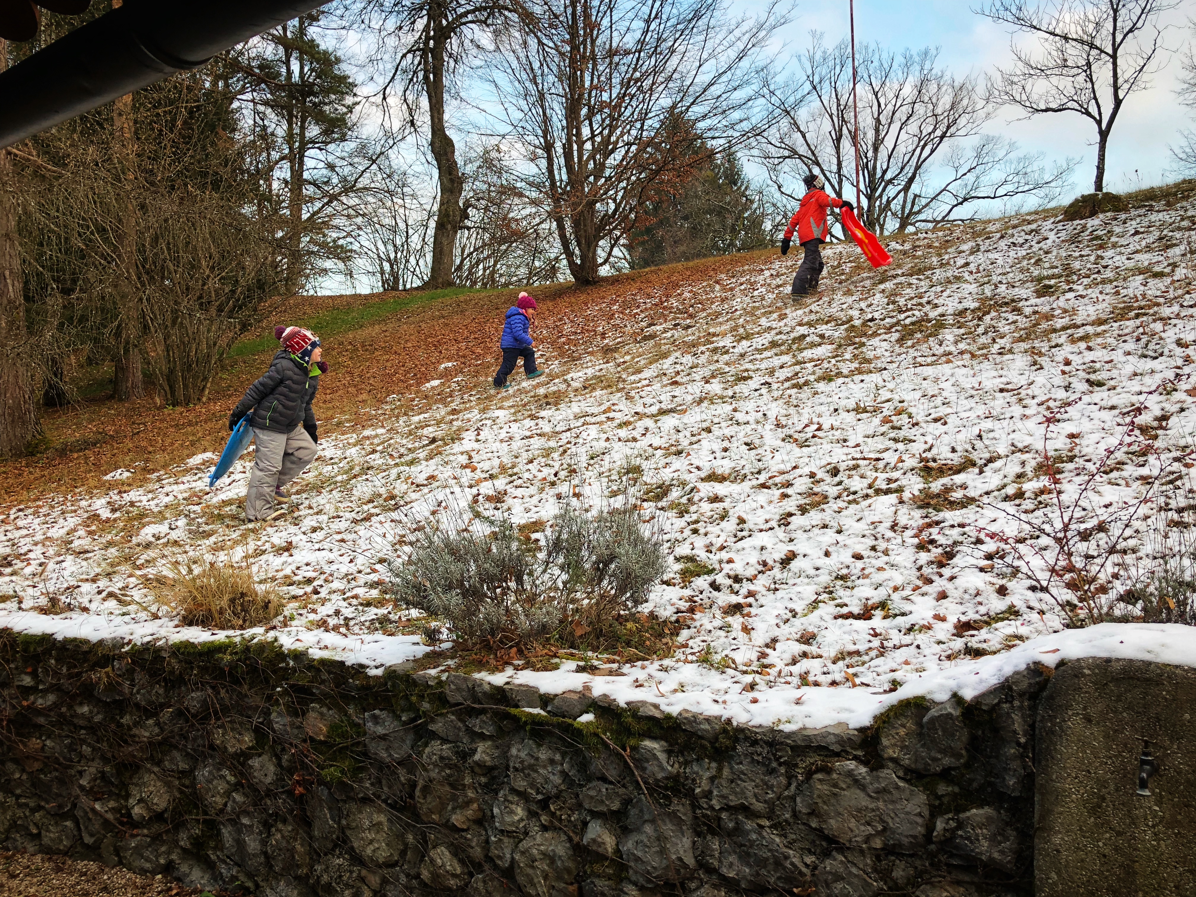 We also learned that weekends are THE WORST time to go skiing, especially if you arrive any time between 8-11 in the morning. Many of the slopes we have seen have limited and errant parking options, lines with astronomical wait times (for tickets, bathrooms, food, ski rentals, etc) and are generally a logistical frustration. We decided we’d prefer looking for smaller, more accessible ski mountains we can all enjoy without wasting hours just getting from our car to the first runs. Lesson learned! We took note of several smaller hills around with beautiful powder runs and only one or two lifts that looked like just our pace. Ultimately, we were able to ski AND sled on this little trip, so of course the kids were thrilled. It was a lot of fun and, in spite of our unpleasant surprise about Stuhleck in general, we had a great time together and with our friends Pete and Ashley!