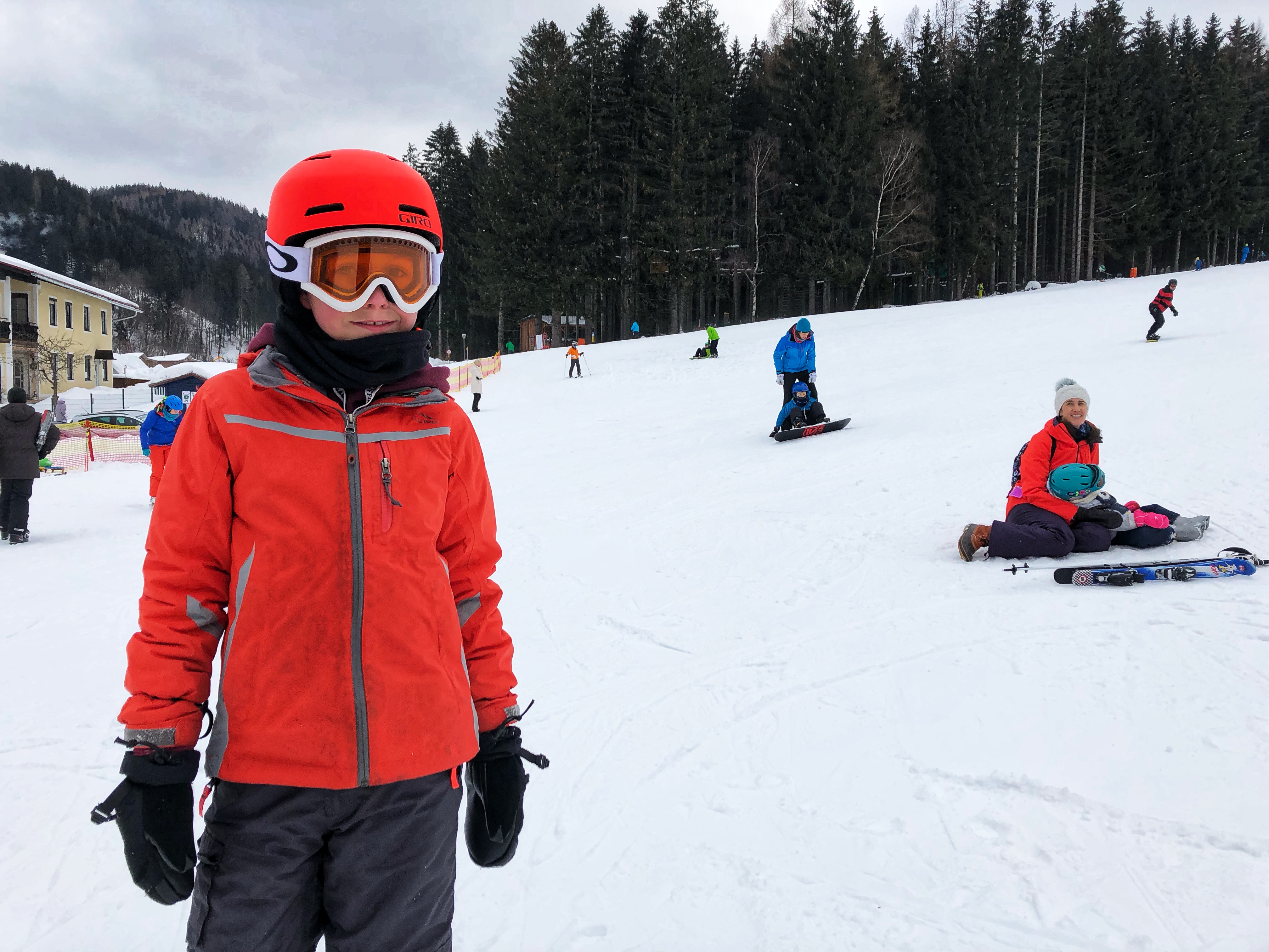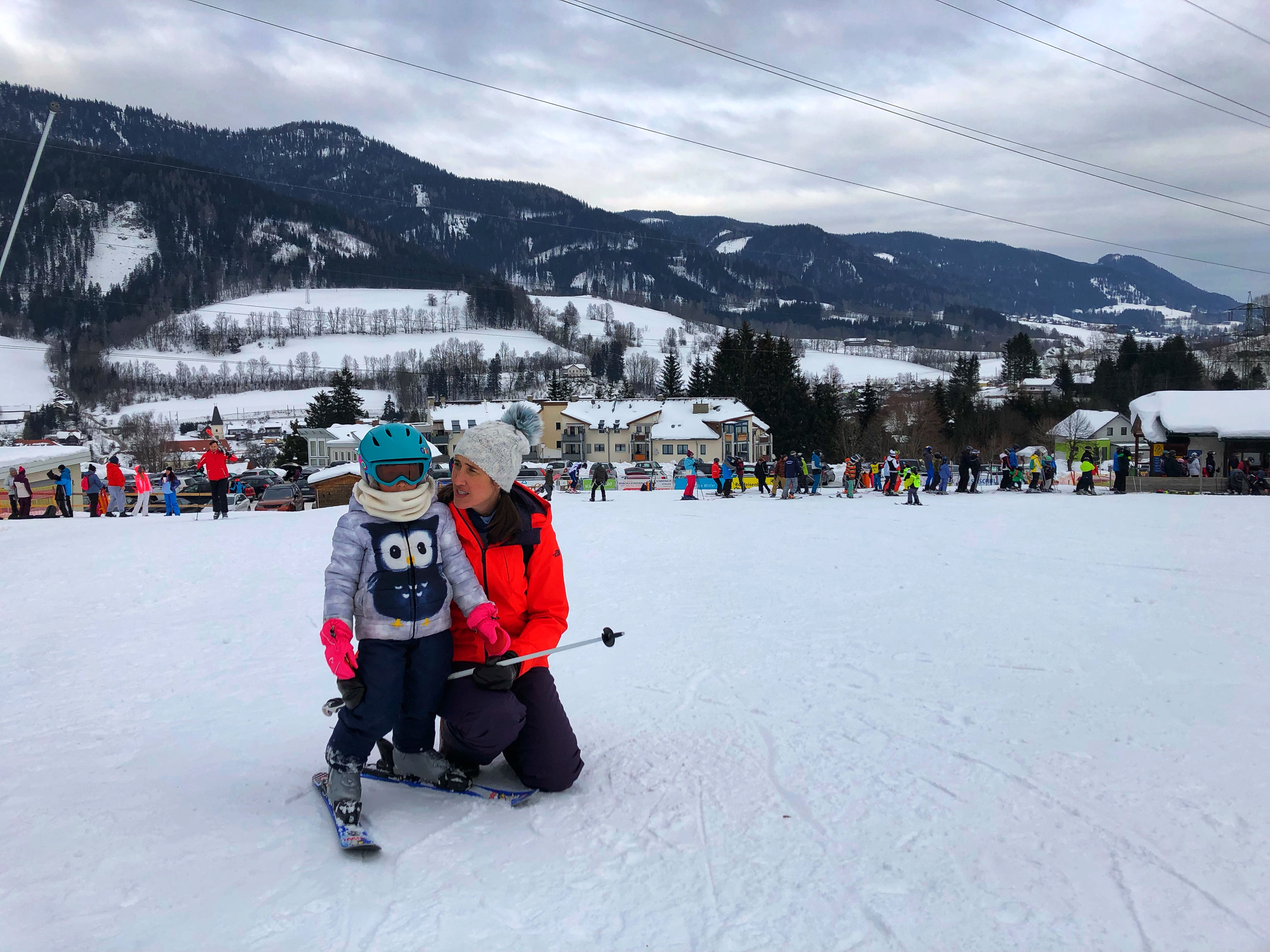 Mid January was our first time skiing since the kids learned last March. This time it wasn’t our cozy little mountain in Maine – it was at Stuhleck ski resort in the Austrian Alps! Its located about 2 hours from us in Hungary. It was piled high with snow on this frigid weekend, and it ended up being quite the learning experience about “the way things are done” here in Europe. The kids were so excited and got right back into ski-mode quickly! It was so much fun to watch them grow in their ski-skills and feel so much pride in their progress. This goes mostly for the big two who got lots of good runs in – both with instructors at first, and then big bro went off on his own with friends we traveled to Stuhleck with.