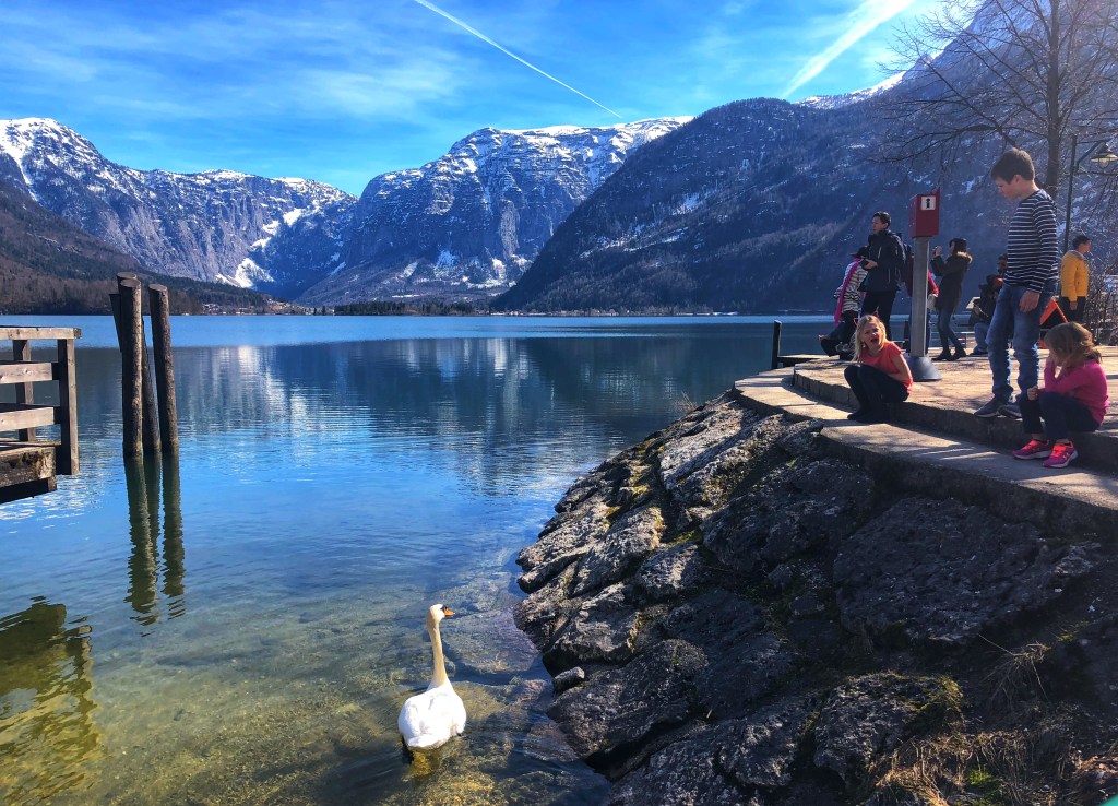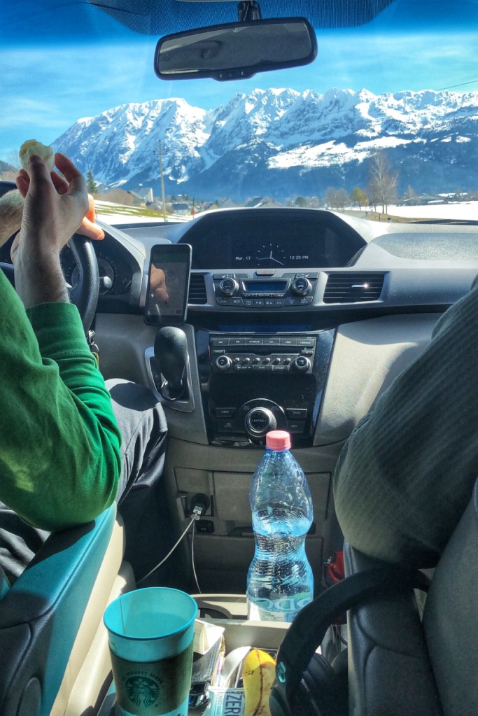 We were all pretty exhausted after a FULL day of skiing, and all of us had a little sunburn on our faces too! A worthwhile souvenir, I’d say, for a weekend well spent. The kids couldn’t wait to swim and the adults couldn’t wait to soak in the hot tub back at Edelweiss, so we returned ski equipment and headed straight for the water! After, we enjoyed a nice buffet dinner and passed out! Garmisch-Partenkirchen is around 7 hours from Papa, but we took a scenic route home via Hallstättersee since it was almost 70º, sunny and clear. What a fun trip to close out the 2018-2019 ski season. See you next year, Garmisch!