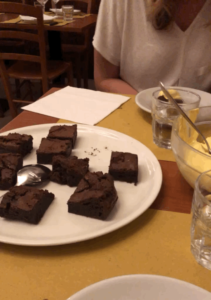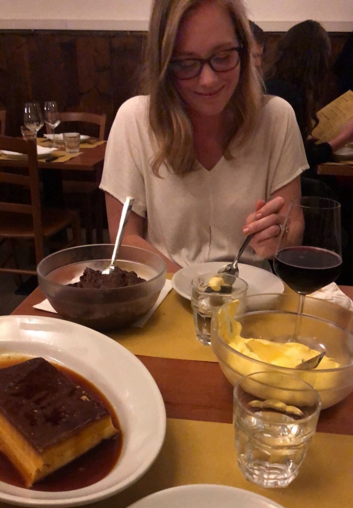 Little did we know that after 9 swift miles of walking, we were in for the most memorable meal of our entire week away! Broccaindosso is a cozy, casual establishment on the East side of the city, with only about 8 tables for guests. The waitstaff is warm and friendly and served us hearty helpings of their classic dishes. We shared the mixed starters, three different pasta dishes and a delightful mix of traditional Italian desserts! As delicious as the main meal was, the piece de resistance was the dessert experience. After the meal and drinks we were pretty full, but we figured we should try their “selection of sweets” and so, to be polite, we splurged.