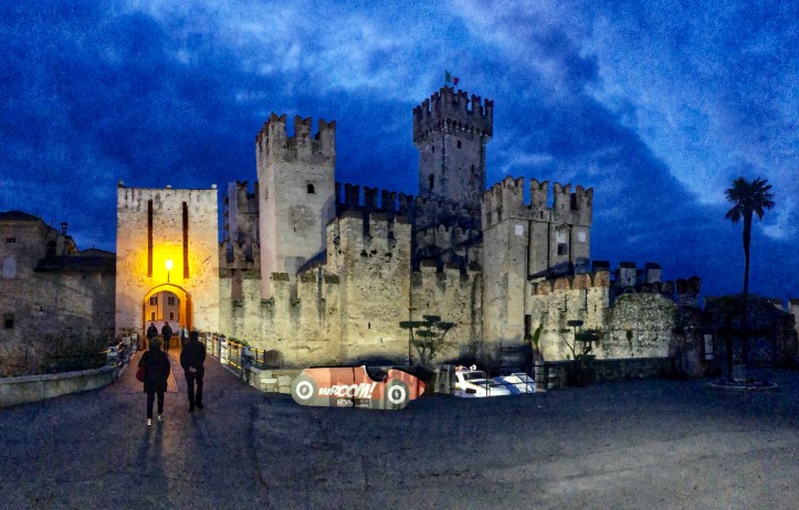 The funniest thing happened on our drive to Sirmione on Lake Garda. We started seeing some reeeally nice cars pass us on the highway. At one point I screeched with delight when an honest to goodness Bugatti passed us, followed by two Lamborghinis! We figured there must be something going on, and soon we would find out! The time passed quickly…we listened to riveting podcasts and talked about 20+ topics on our discussion list!