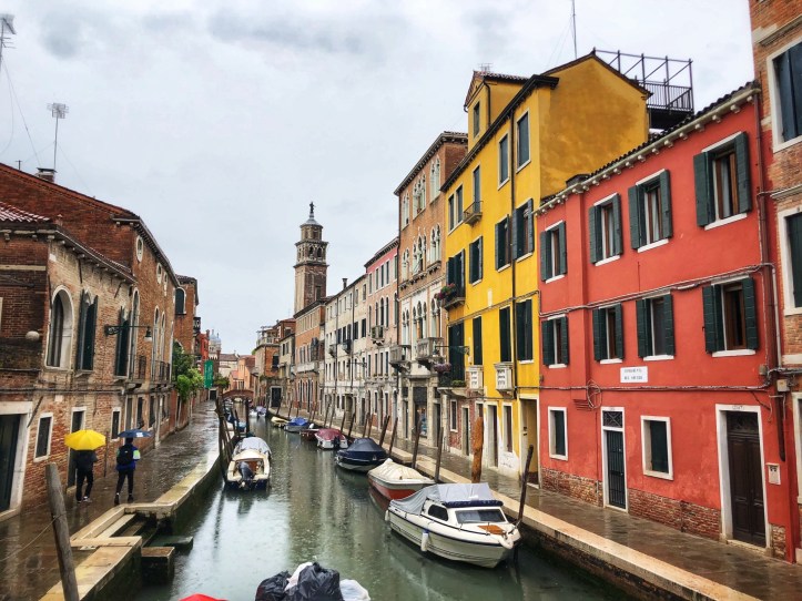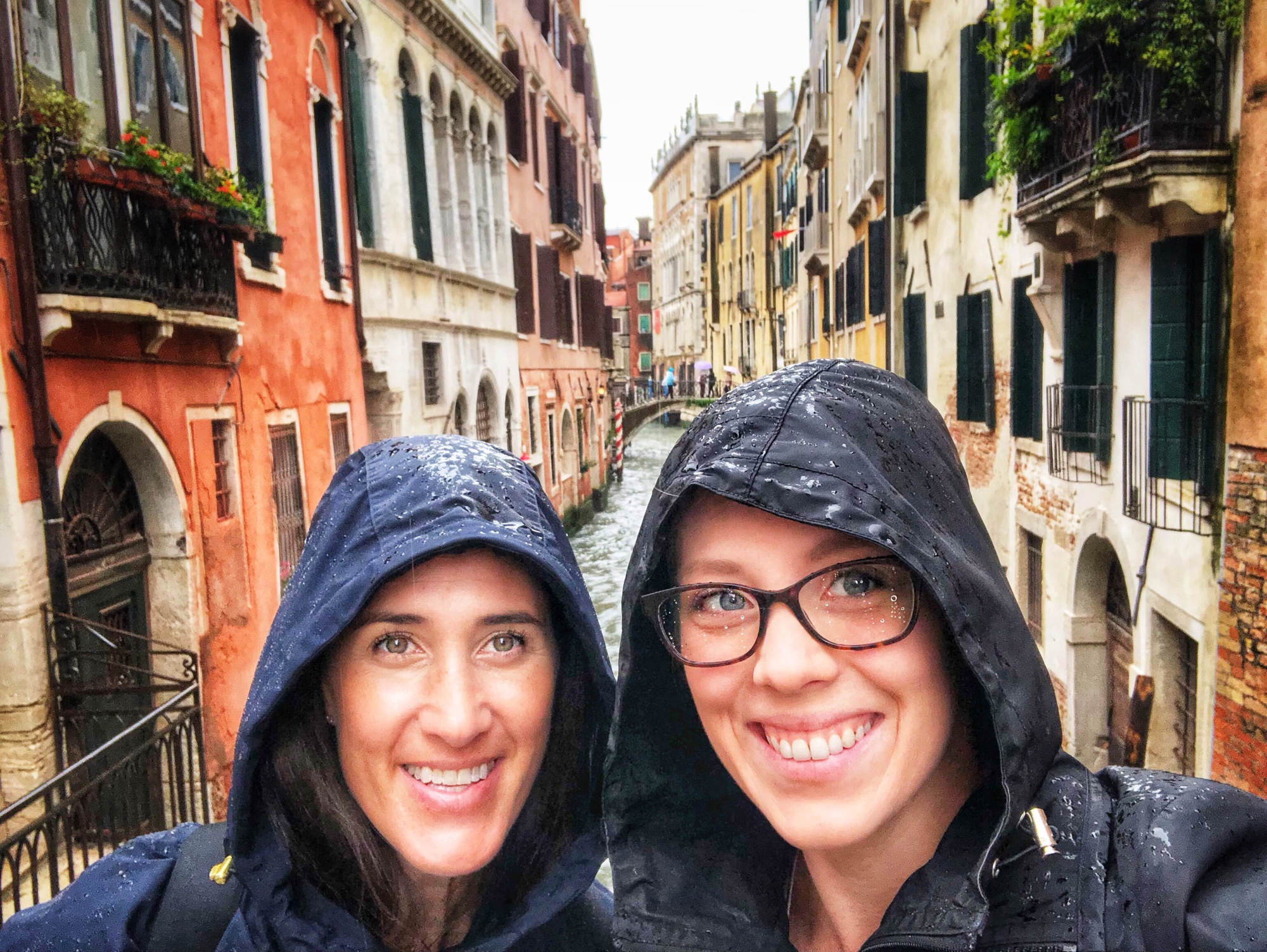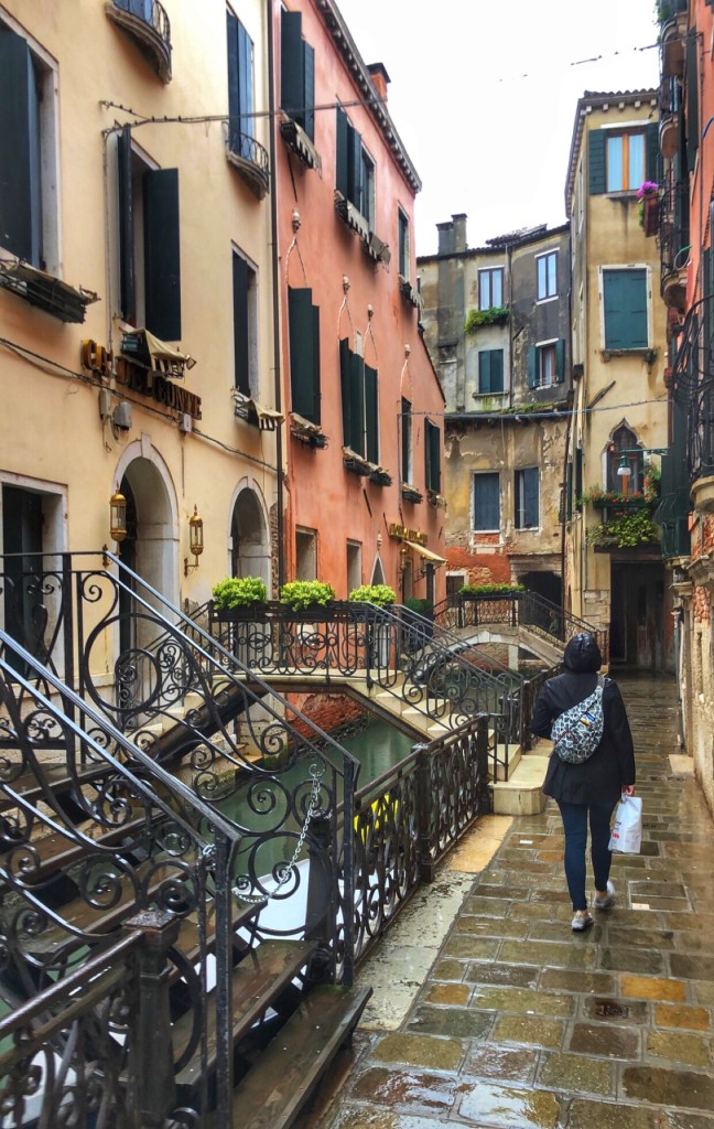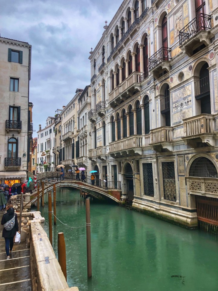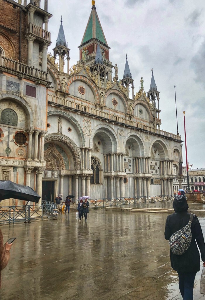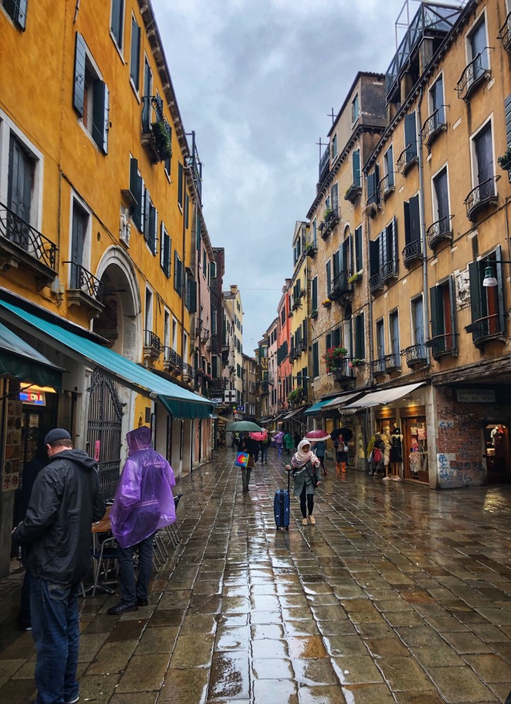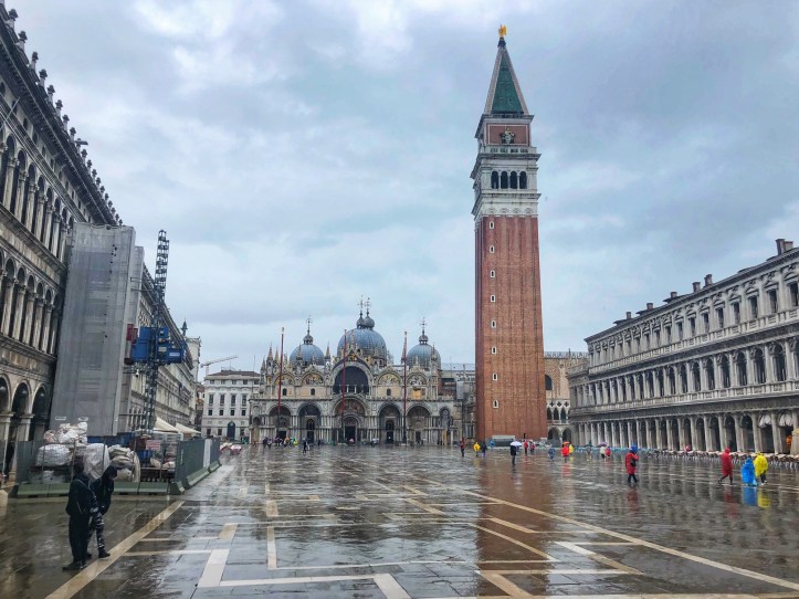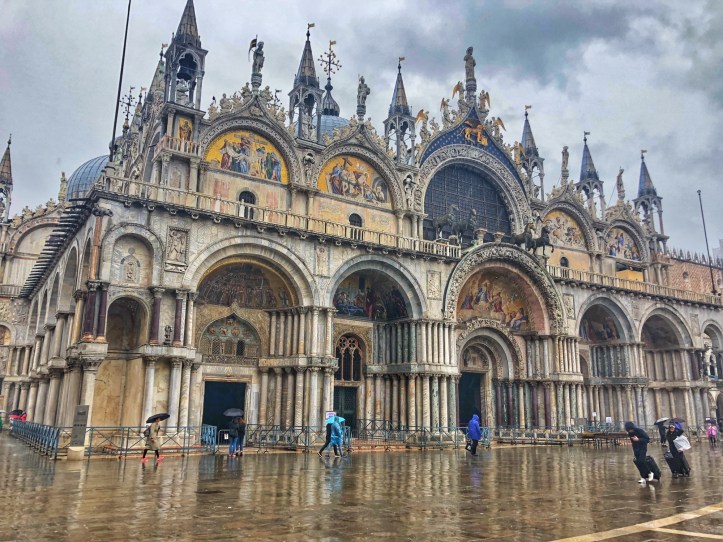 Tourists walked around with waterproof shoe covers and ponchos they picked up from street vendors, but we came prepared…our rain coats got good use! Apparently Venice is flooding more frequently and more severely in the last few years, so sales of disposable “floodwear” gear are booming! I can’t imagine being there in a flood. Nope, nope, nope.