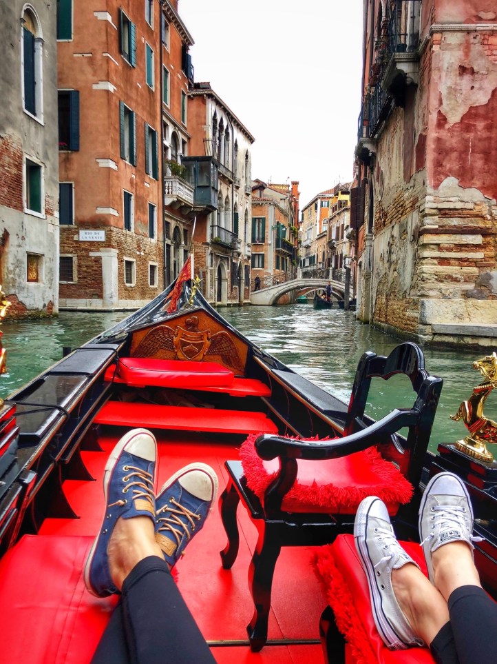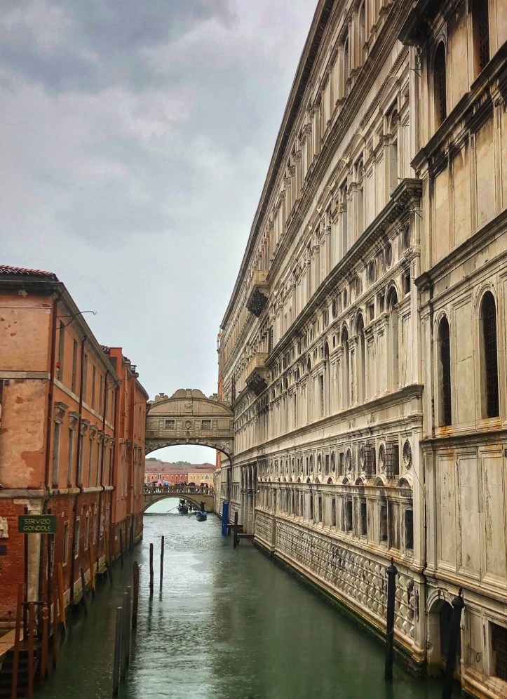 Our first stop on our tour-d’Italy was Venice, the city of water. It has also been known as the city of bridges, city of canals, and the floating city. Venice is made up of 118 little islands separated by canals and connected by over 400 bridges. We were excited to see this man-made wonder for ourselves! The drive to Venice took around 7 hours, and it was very easy and fairly cheap to park and take transport (bus then water taxi) into the city. We knew we only had a small window of time before the beautiful blue skies turned ominous so we checked into our hotel and headed right back out to snag a ride in a gondola!