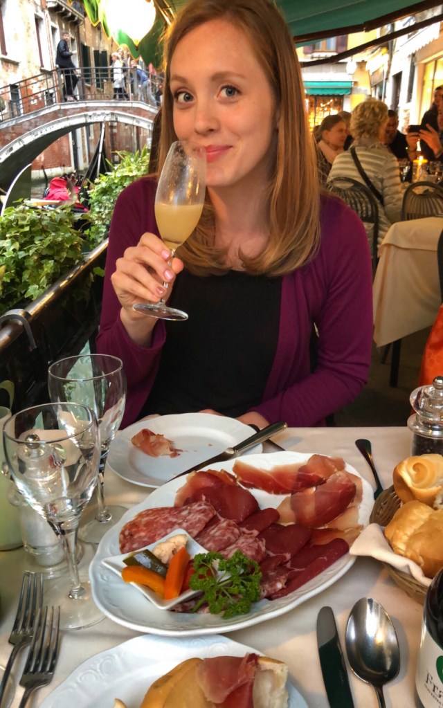 After our gondola ride we went for a little walk around to find dinner. We noticed a place right along the canal that looked good, so we snagged a table before it got too busy. Ristorante da Raffaele had lovely canal-side tables as well as a beautiful dining room. The staff was attentive and friendly and the menu was decent. It was probably a bit overpriced (welcome to Venice) but it was a welcome yummy meal considering all we’d eaten until that point was road snacks!