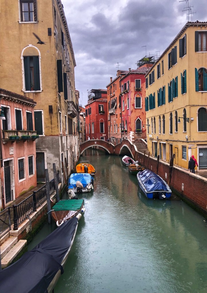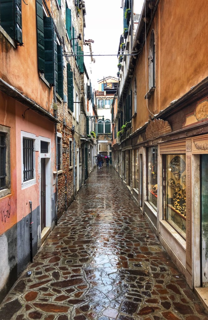The longer we walked the winding, narrow streets of Venice, the more dizzying it became. It felt like a maze, and we often would stop to take a photo and laugh saying, “it feels like we were just here!” Sometimes we were retracing our steps – and other times it just appeared similar. It was impossible for us to walk the streets and see the beautiful, decaying buildings without picturing life here hundreds of years ago and sensing the “ghosts” of Venice past. It left us with a lingering, haunting feeling. Our little boutique hotel certainly had that “rich in history” feel, with its tapestry walls, squeaky, steep staircase and original wooden-shuttered windows. It would’ve made a great setting for a murder mystery dinner! Hotel Lisbona has all the Venice vibes.