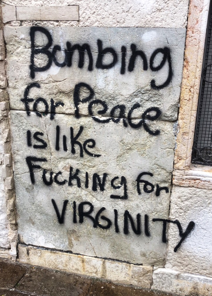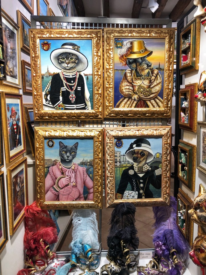 We saw all kinds of amazing architecture, statues, art art installations. Apparently we just missed Banksy by about 10 days! Below is a sampling of goodies from shops (including cannoli and meringues), Libreria Acqua Alta (a famous book store known for putting its books in boats to avoid damage during frequent flooding), some hilarious artwork, beautiful lion-themed statues (lions are all the rage in Venice), poignant graffiti and soul-crushing street art.