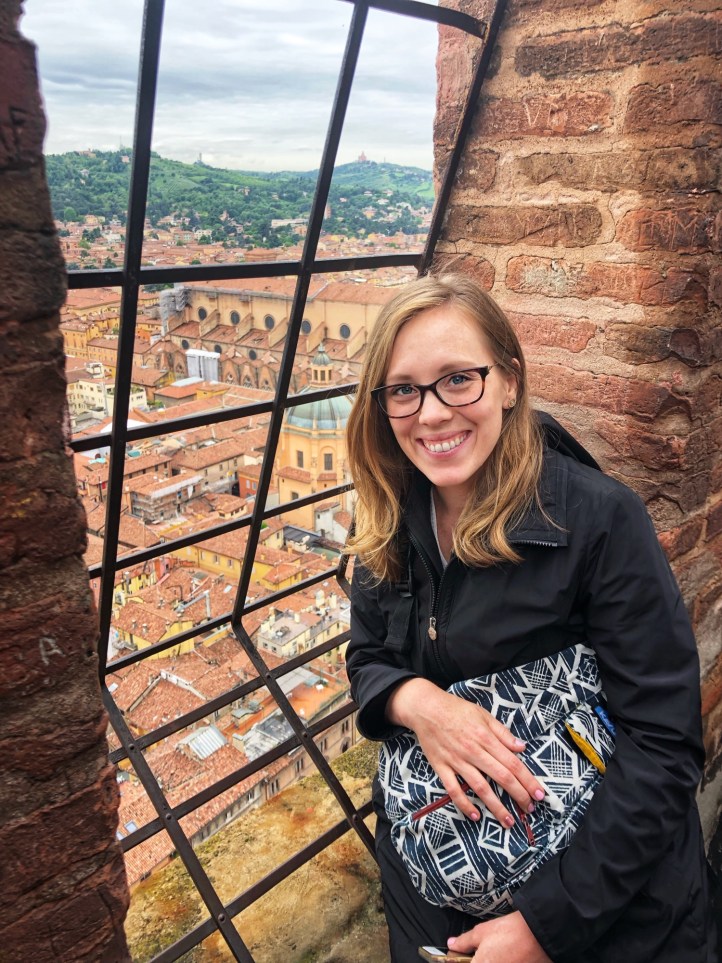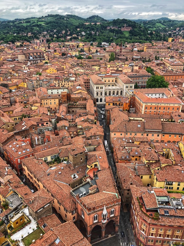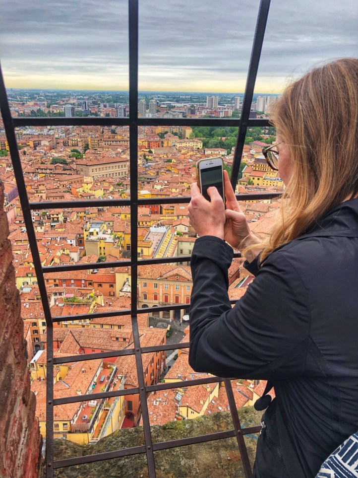 The bus took us through one of the impressive city gates, many of which are still intact from the Middle Ages. Bologna is known as the city of porticos, with over 45km of covered walkways throughout the city. It is also one of the few remaining large walled cities in the world. It is home to the oldest university in the world, University of Bologna, established in the year 1088. It also used to have 180 defensive towers but today only around 20 remain. We saw the two most famous towers “Due Torri,” constructed in the early 1100’s. One of which we climbed, and the other is leaning dramatically! It is a spiraling 498 steps to the top of Asinelli Tower, the taller of the two, at 97m or 318 feet high. Its height and location gives it the most breathtaking panoramic views of the city of Bologna!
