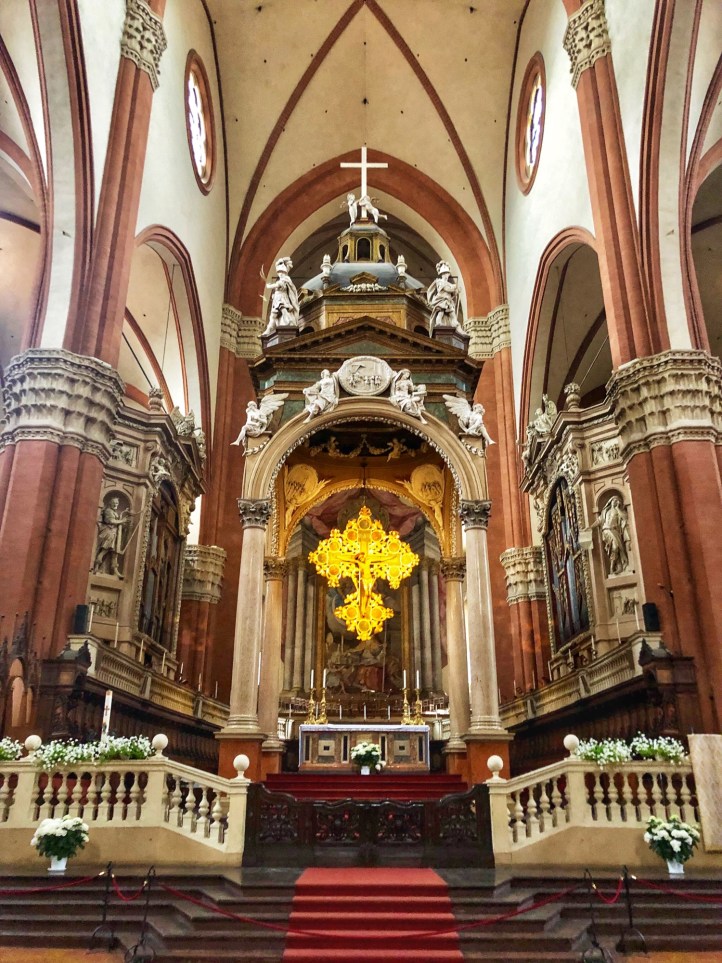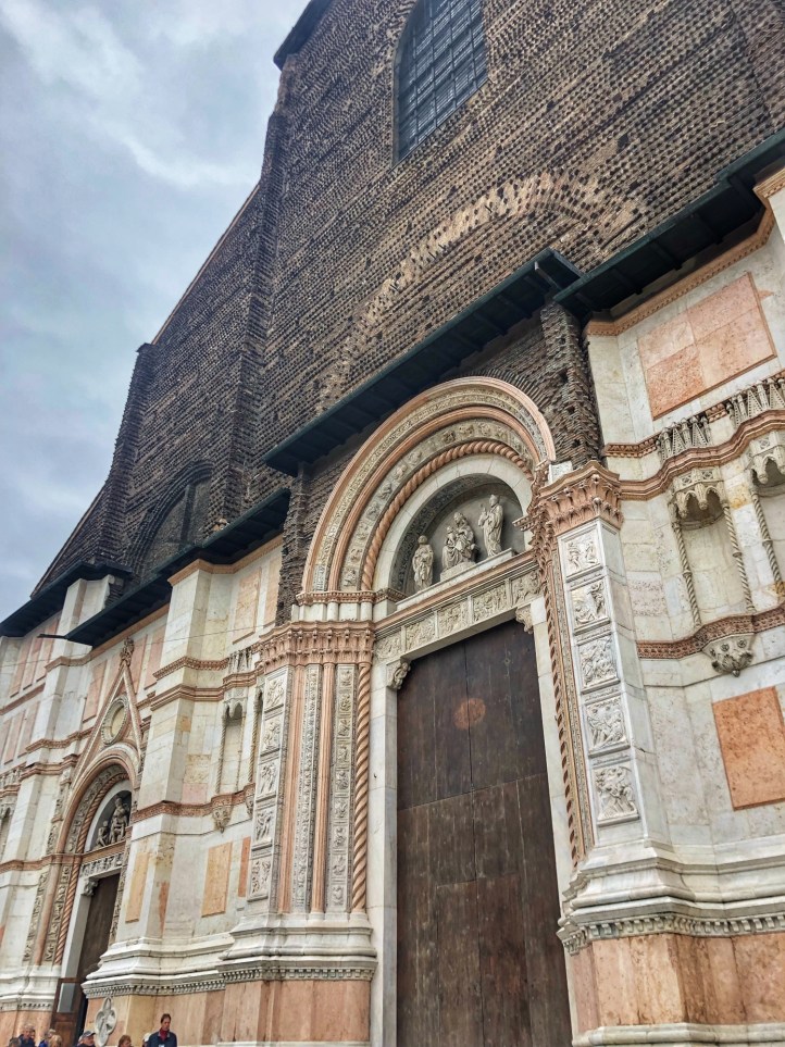 Back down on the ground, we stretched our legs and explored some more. We walked through “Eataly” which is a very popular spot for tourists to shop and dine. We made our way to the Piazza Maggiore and decided to tour the Basilica. We learned so much about its fascinating history! Its construction began in 1390 but the front facade of the building is still unfinished. It has an unmistakable appearance, and was well guarded by Italian police. We weren’t sure why at the time, but it’s possible they were surrounding the Basilica due to thwarted terrorist attacks in 2002 and 2006.