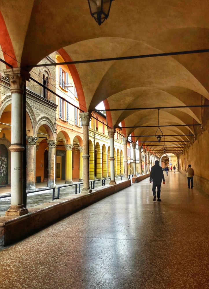 After exploring the cathedral and surrounding hilltop, and snagging another Prosecco at Vita a San Luca, we decided to brave the longest portico in the world and walk back to town. Our dinner reservation was around 4 miles from the top of the hill so it didn’t seem like that much of a stretch, but it took longer than we expected, and turned into a brisk and damp downhill hustle for an hour and a half to make it to our dinner reservations on time! We were also walking in the wrong direction – because apparently there was a soccer match that night and everyone was heading to the stadium!