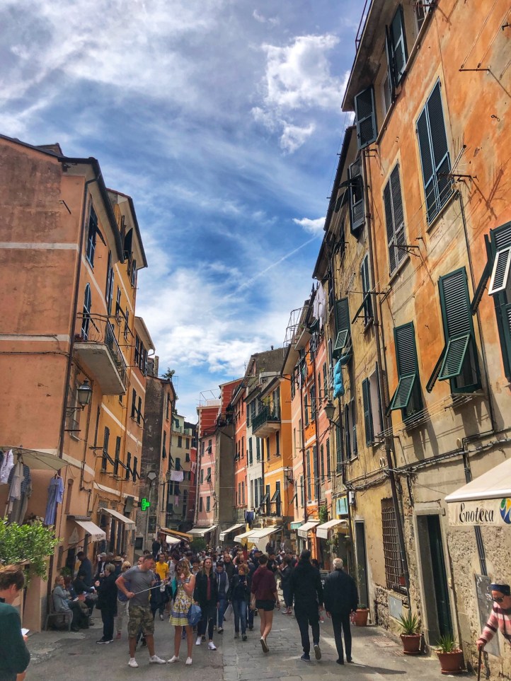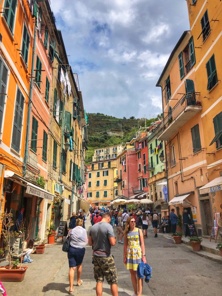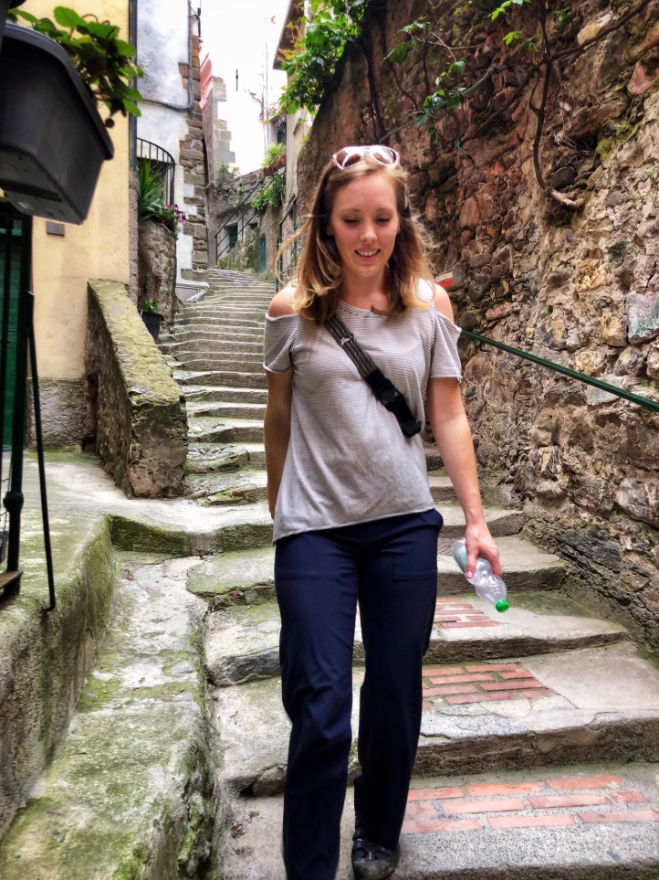 We checked into our hotel and then hopped on the train in Levanto down to Monterosso al Mare where we grabbed a snack (mmm focaccia!) and found the Sentiero hiking trail. From there we hiked (it took over 2 hours) to Vernazza. We got our first view of the classic colorful buildings stacked along the coast and it was every bit as amazing as we had hoped! That hike was intense…we were quite surprised by some of the people who we met up with mid-trail. A word of caution – bring water, wear proper clothing, and make sure you can handle lots of elevation hiking! It was a blast, but I could tell some people were hurting after tackling such an endeavor.