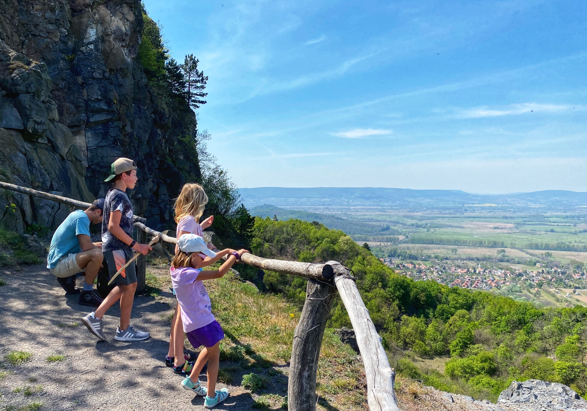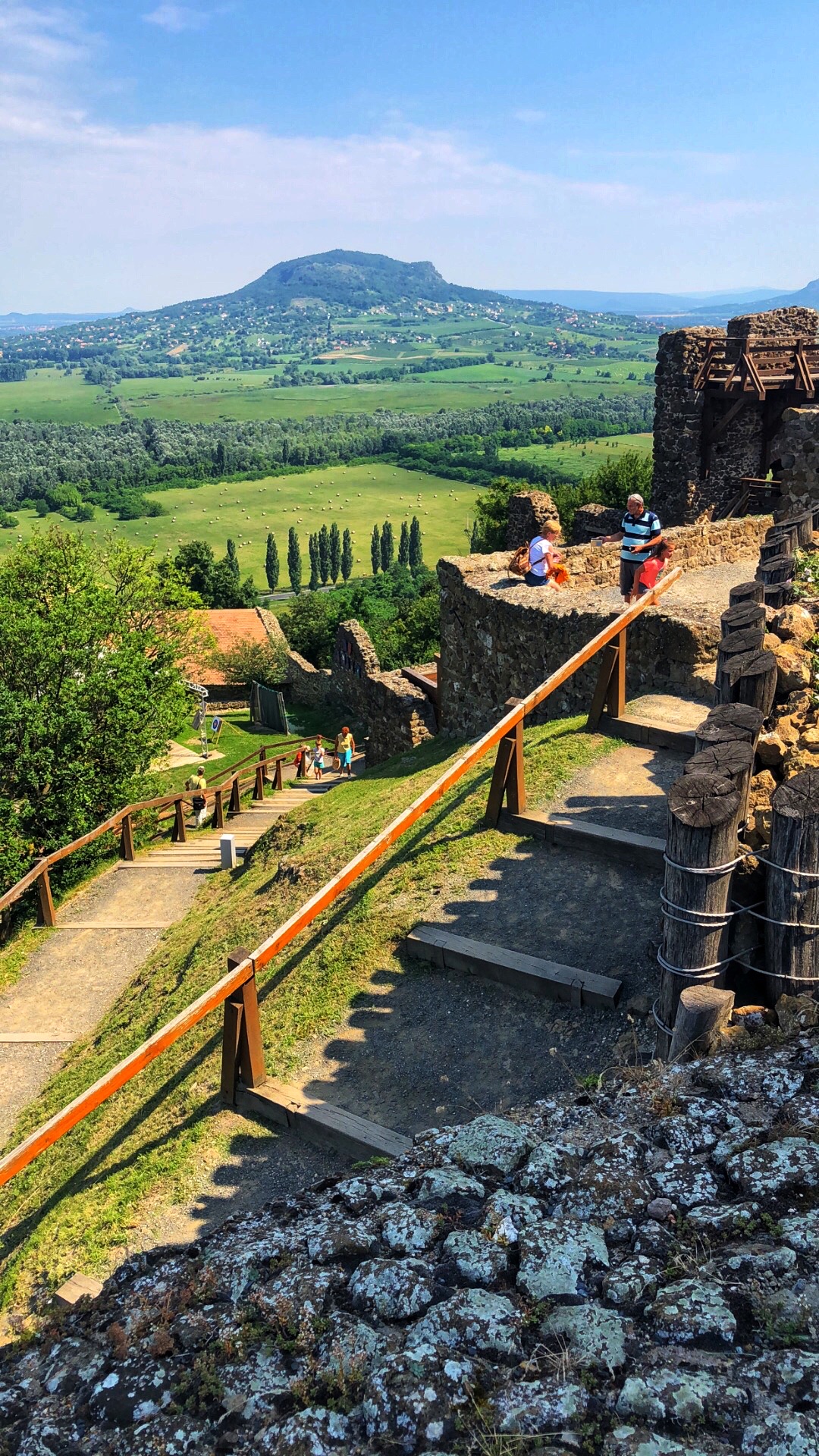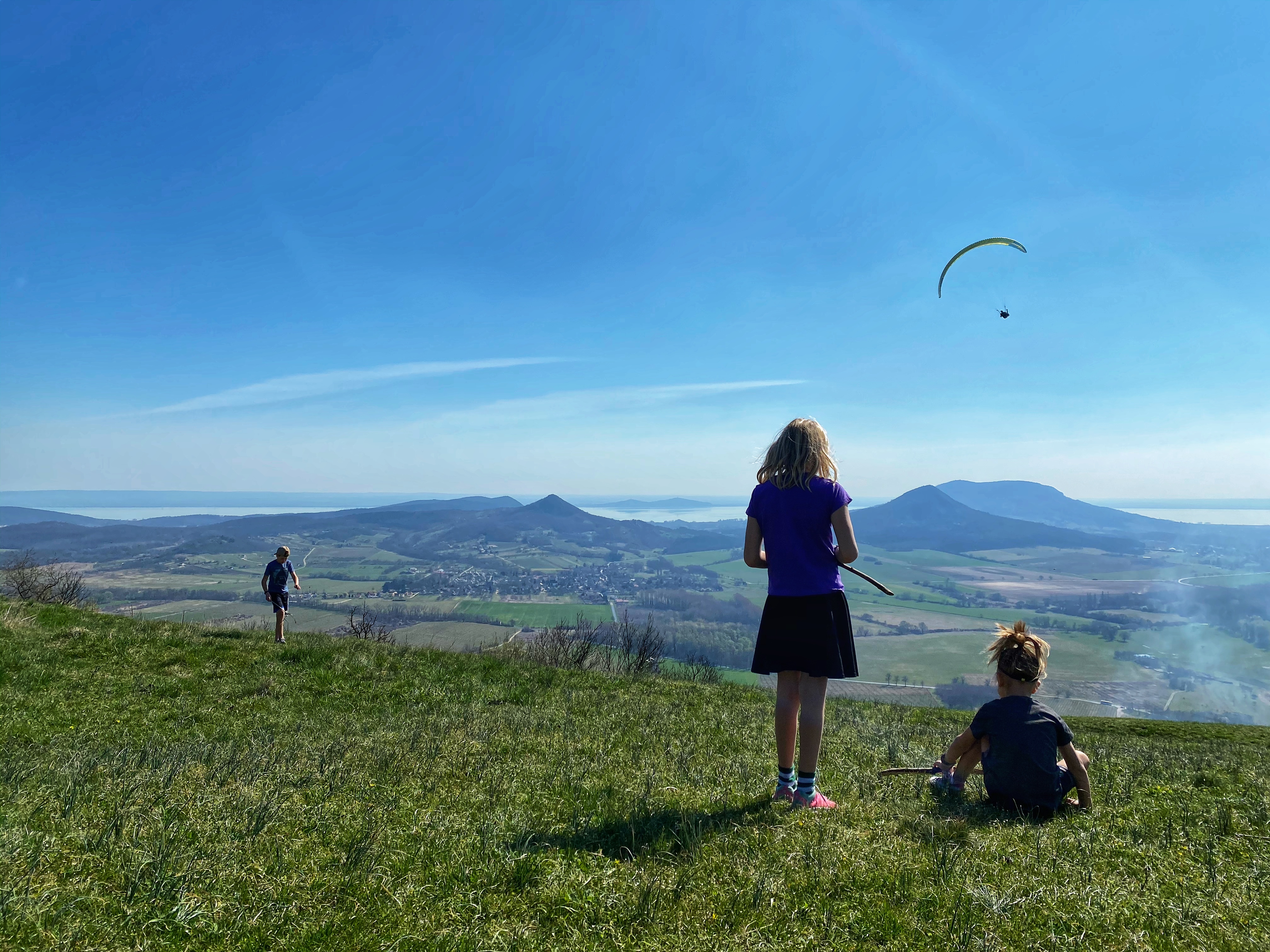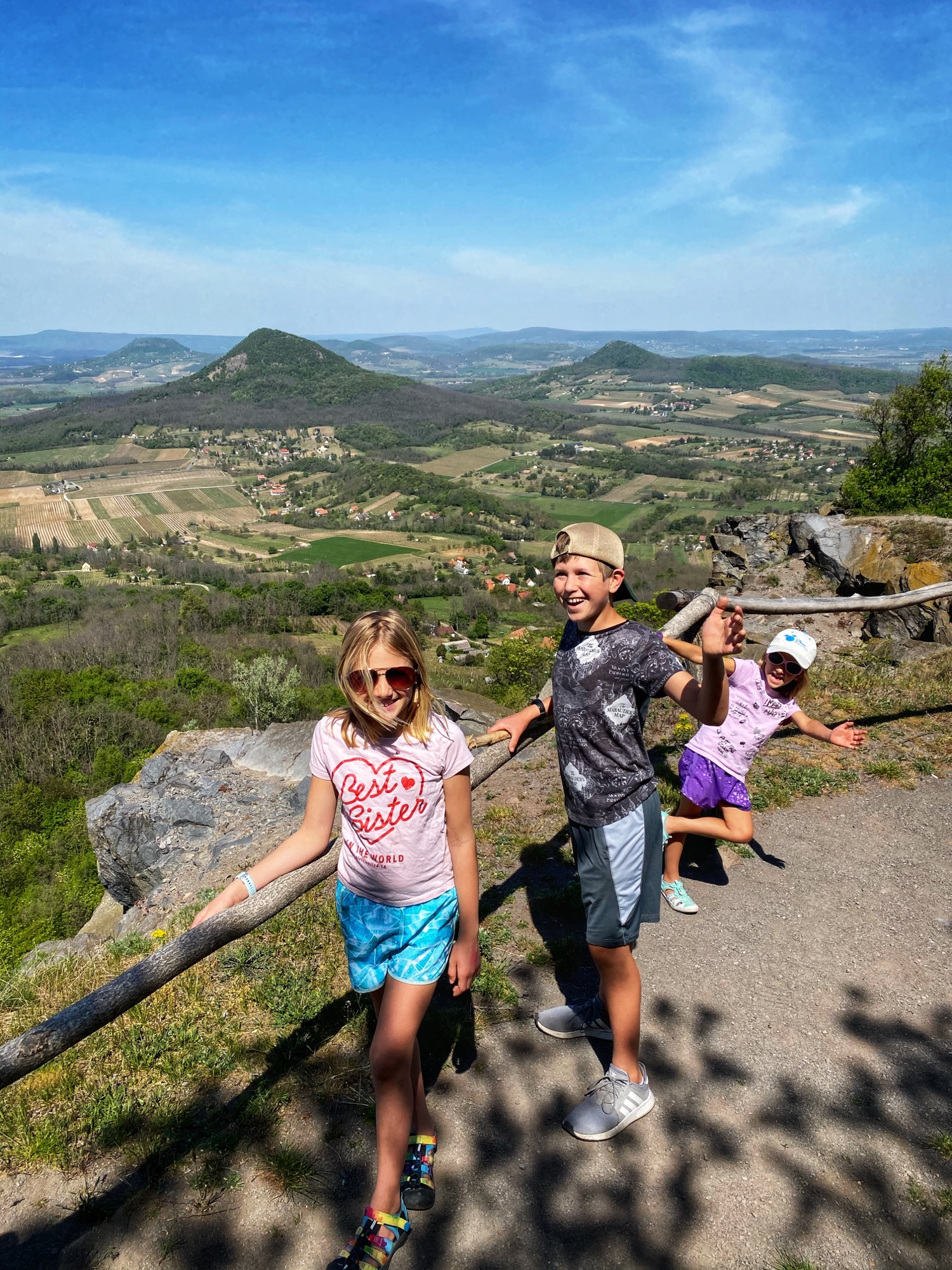 Csóbanc is a great family hike in the cluster of hills near Lake Balaton boasting beautiful views of the surrounding hillside vineyards and lake. Unlike Szigliget, Csobánc is free to visit. Park in the car park just west of the hill and walk up the “road” past a couple of old vineyards to the start of the trail. It is also possible to park at vineyard closest to the trail head but parking is limited and the road requires a sturdy vehicle. Once at the top, the views are perfect. They are among the region’s best! This is a popular spot for para-gliders, and on a sunny day with light wind you just might get lucky. The ruins are just that – ruined – similar to Somló, Döbrönte and Csesznek. The trails are not labeled well but are easy to follow. It is dog friendly, but no facilities are available – you’ll have to “go in the woods” like our kiddos did!