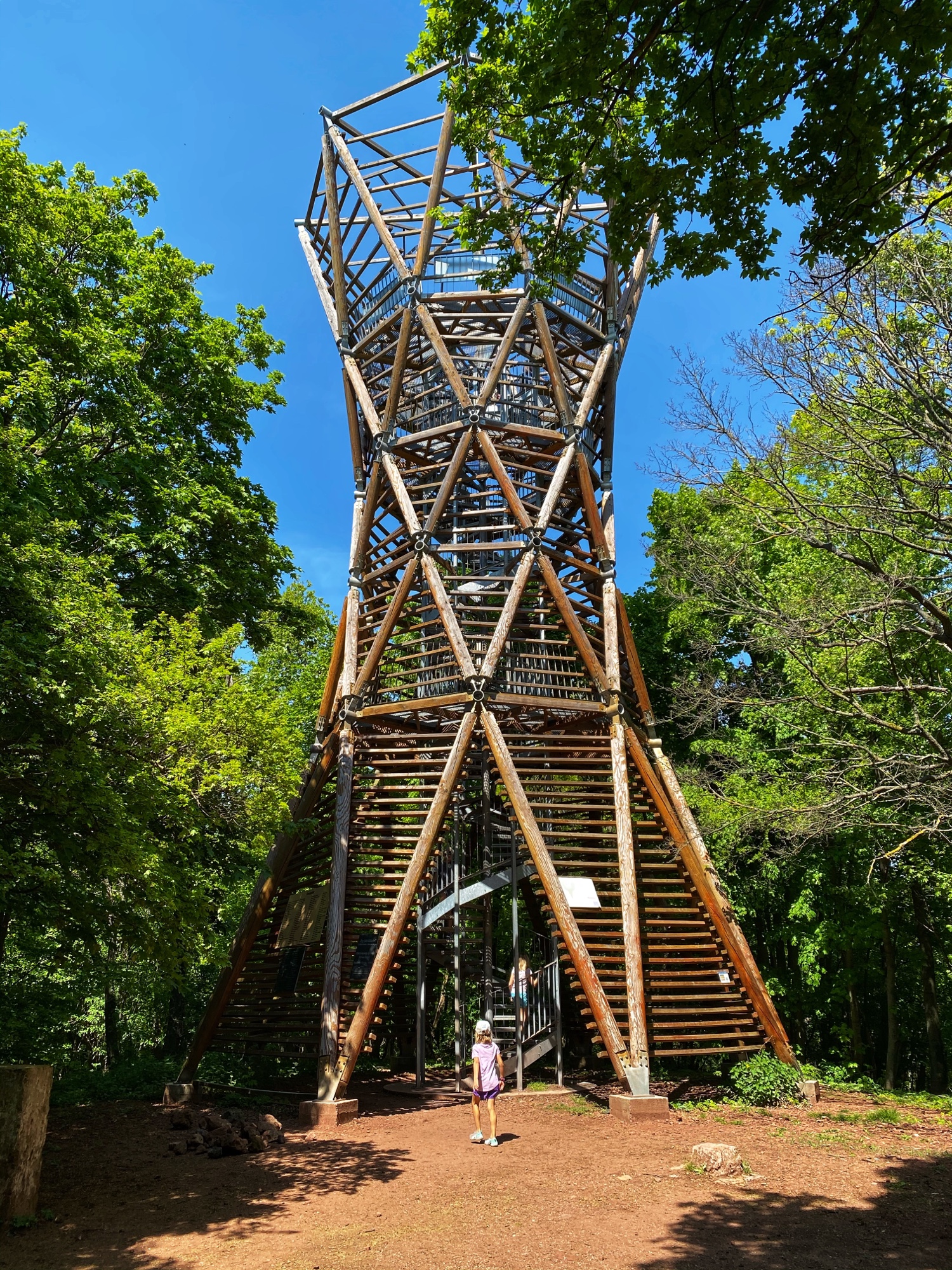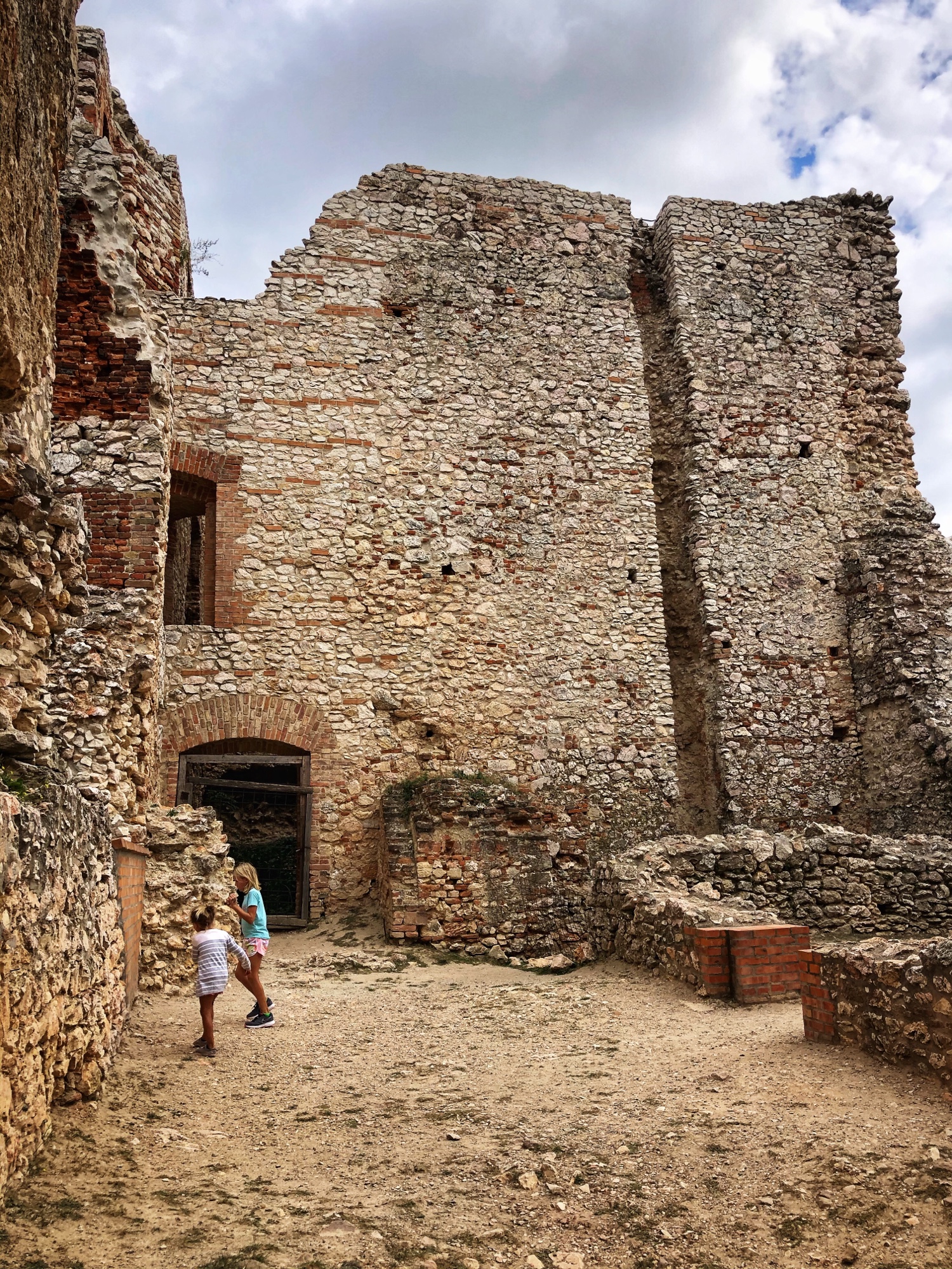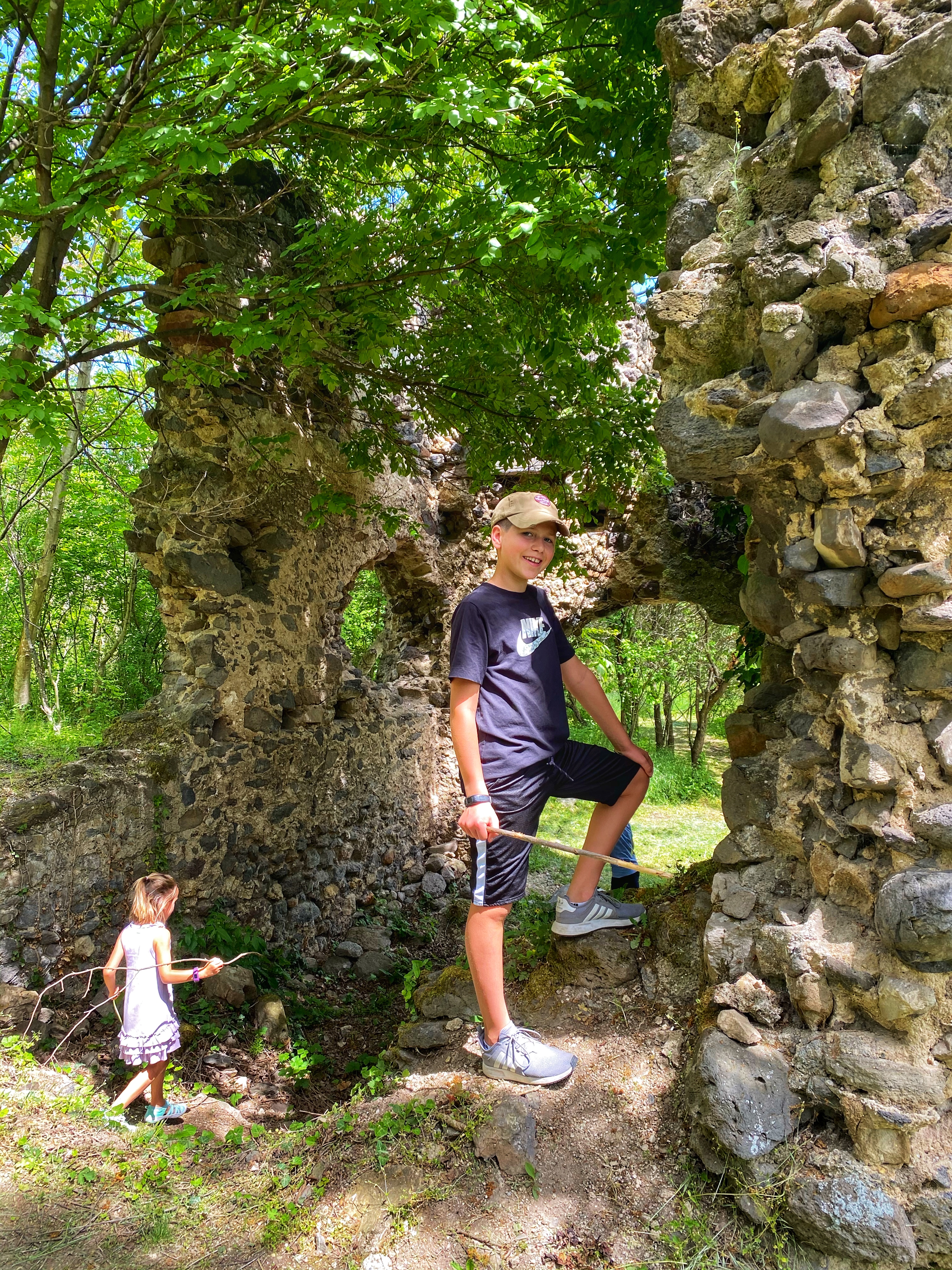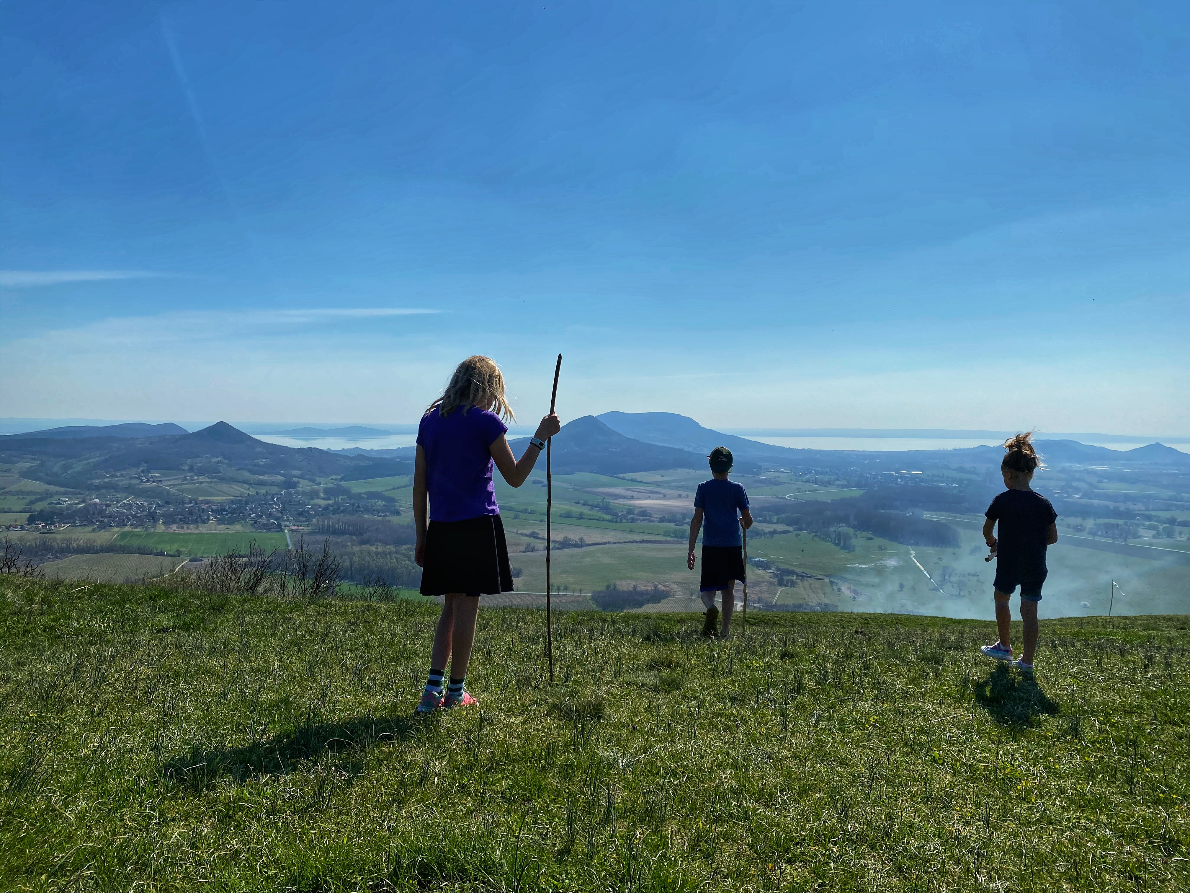 Csóbanc is a great family hike in the cluster of hills near Lake Balaton boasting beautiful views of the surrounding hillside vineyards and lake. Unlike Szigliget, Csobánc is free to visit. Park in the car park just west of the hill and walk up the “road” past a couple of old vineyards to the start of the trail. It is also possible to park at vineyard closest to the trail head but parking is limited and the road requires a sturdy vehicle. Once at the top, the views are perfect. They are among the region’s best! This is a popular spot for para-gliders, and on a sunny day with light wind you just might get lucky. The ruins are just that – ruined – similar to Somló, Döbrönte and Csesznek. The trails are not labeled well but are easy to follow. It is dog friendly, but no facilities are available – you’ll have to “go in the woods” like our kiddos did!