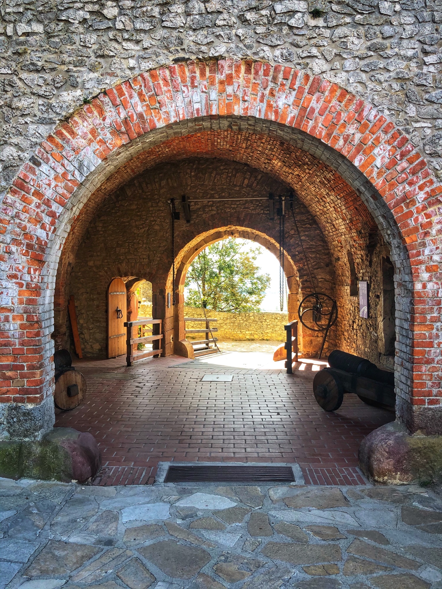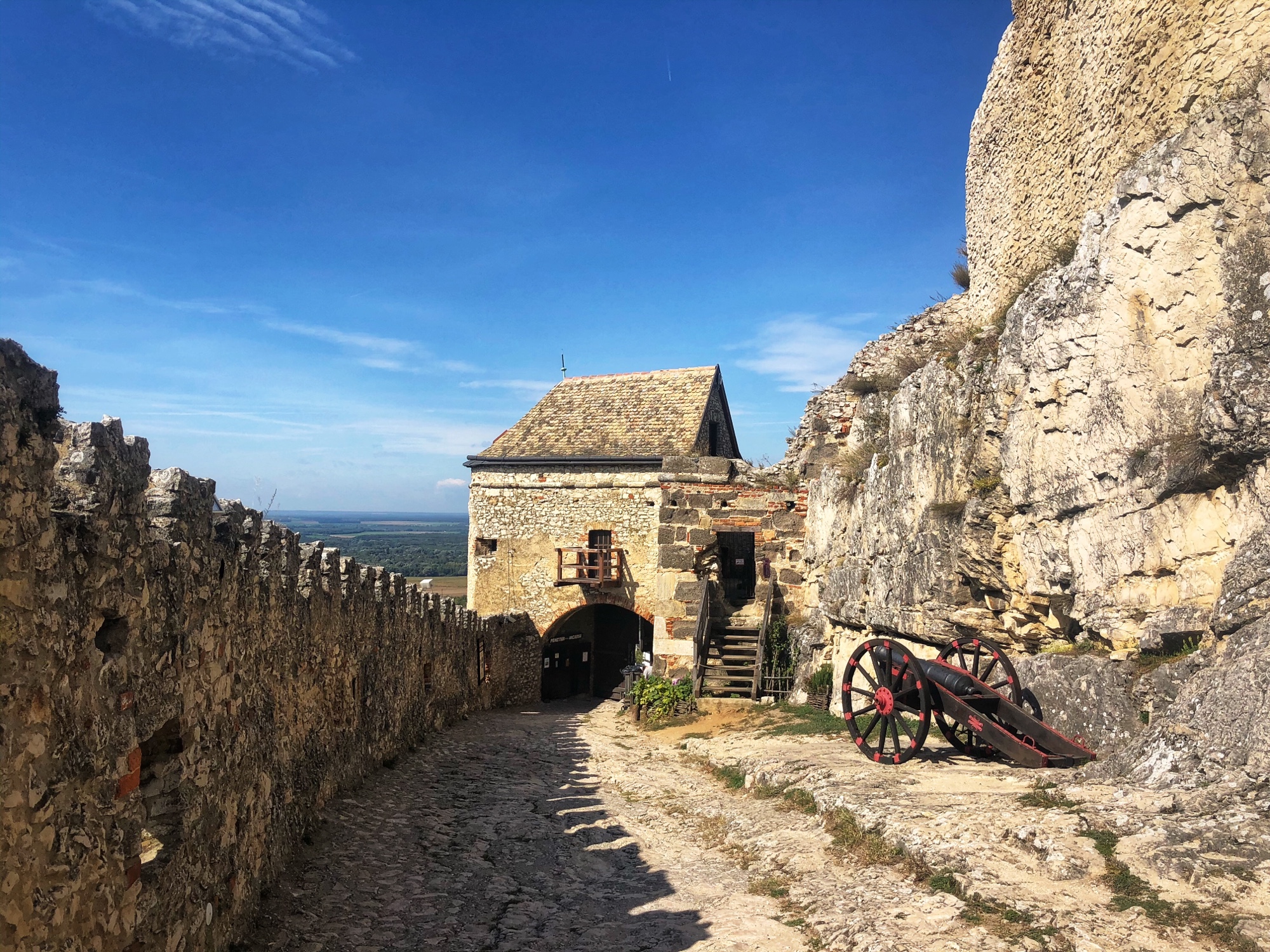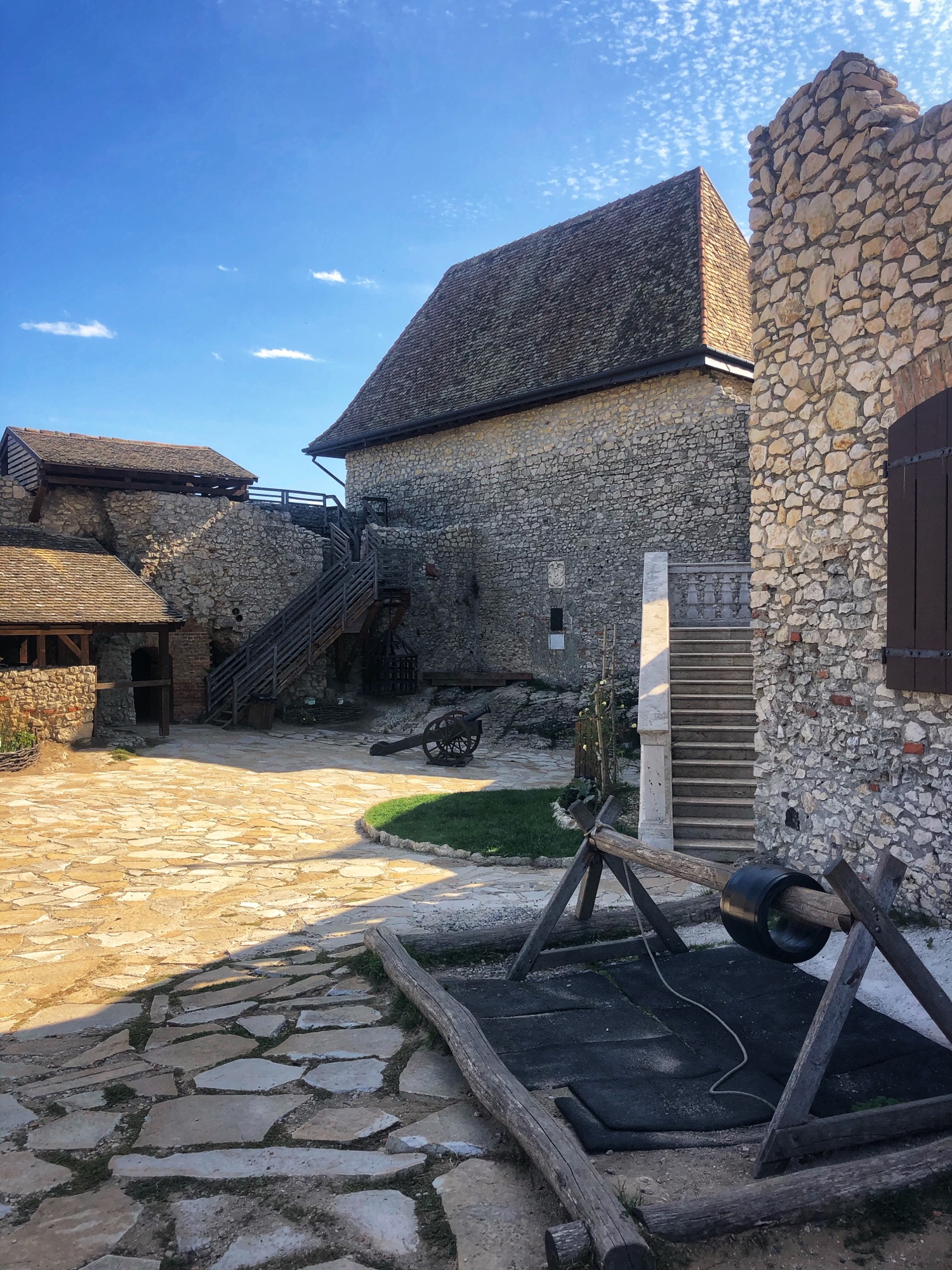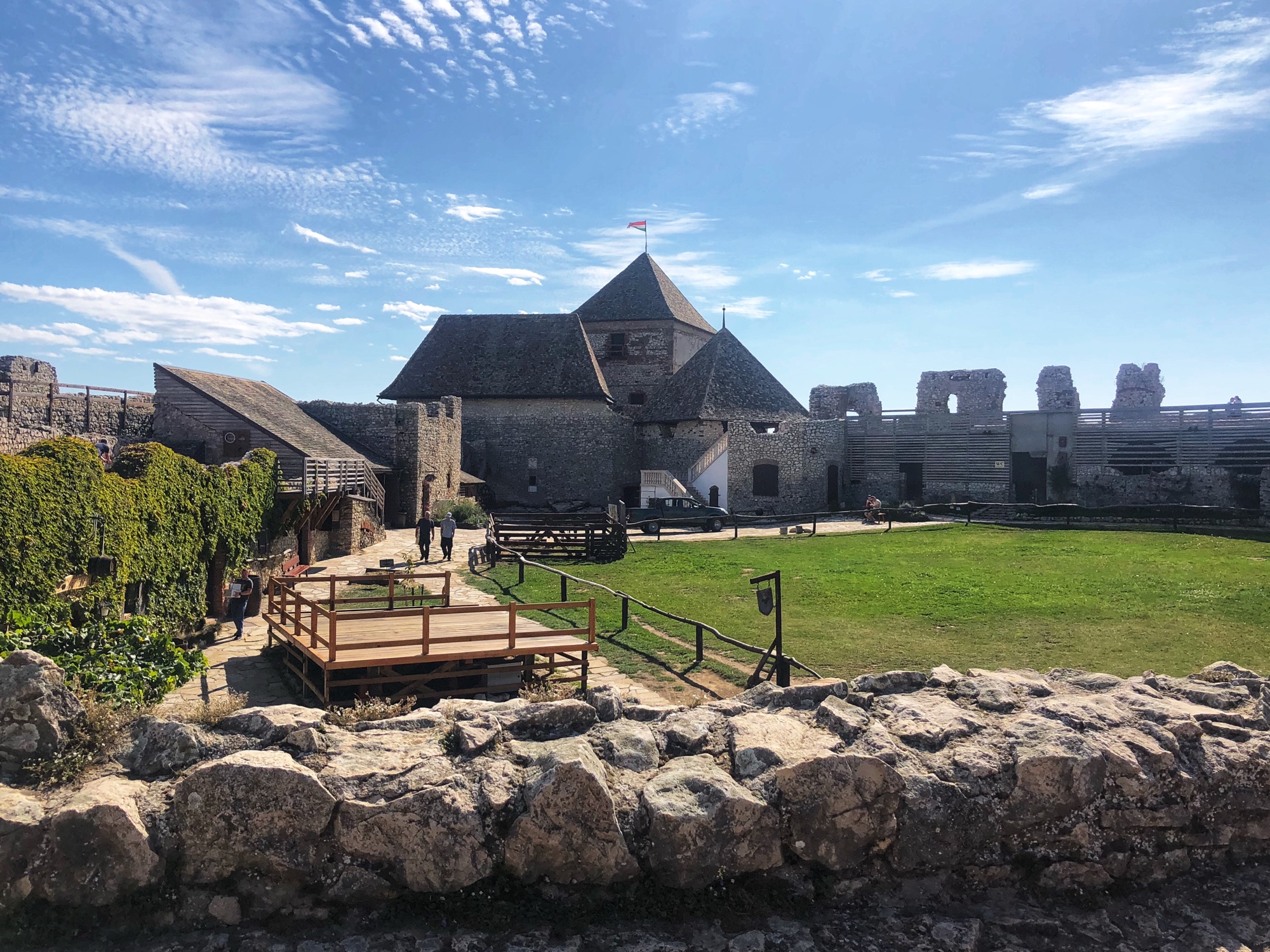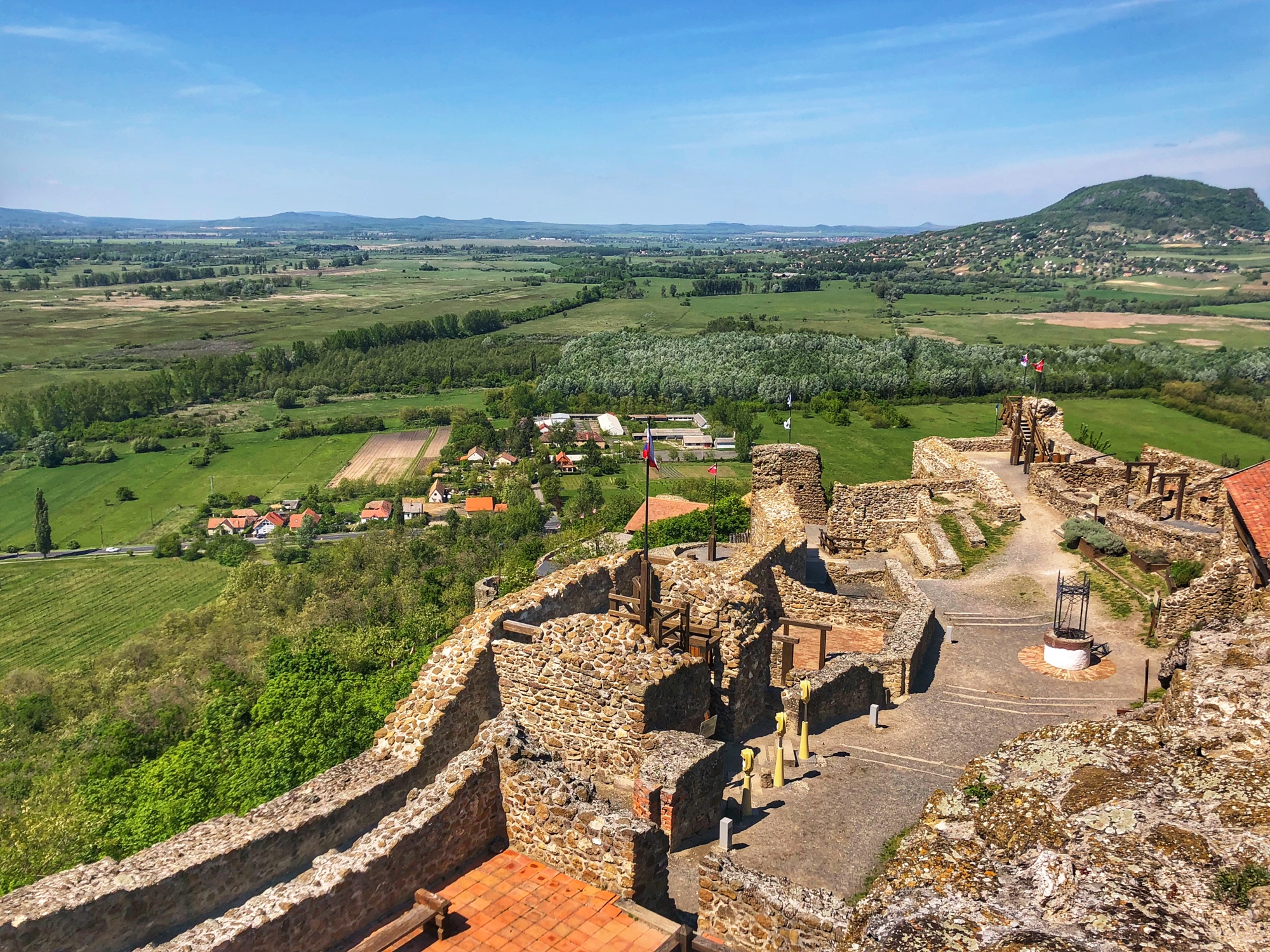 This one is by far my favorite – but not just because of the beautiful, well intact ruins atop the hill. It also boasts the best gelato nearby, Villa Kabala (my favorite restaurant in Hungary), and Szászi, a biodynamic wine shop all on one little volcanic hill! It’s amazing. There is a well marked and ample parking lot up a steep, narrow road (yes, you can drive up!) that is free. At the base of the hill there is a building with rest rooms and usually some little trinkets for sale. Follow the umbrellas to the BEST gelato around (they’re known for the salted pistachio flavor but I think the coffee is to die for – Szigligeti fagylaltozó) and then take your cone up the hill further – it is steep – to the entrance of the castle ruins. There is a small fee to enter and then the exploring begins. The steps are steep and they seem to go on forever – but the views are so worth it. A 360º view that includes a stunning, hilly, vineyard-covered view over lake Balaton is the reward for all that climbing. It can get quite busy in the summer, so I recommend going early in the morning or in the shoulder seasons. A lovely lake view awaits at the nearby Villa Kabala (closed Tuesdays and Wednesdays) which tops my restaurant reviews of the region. Don’t forget to try the wine at Szászi and grab a couple of bio bottles before you leave!