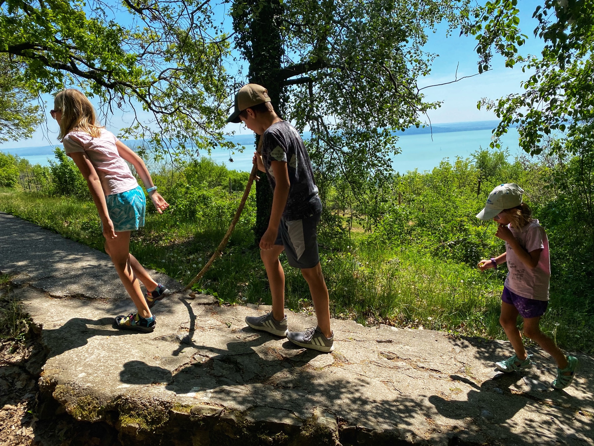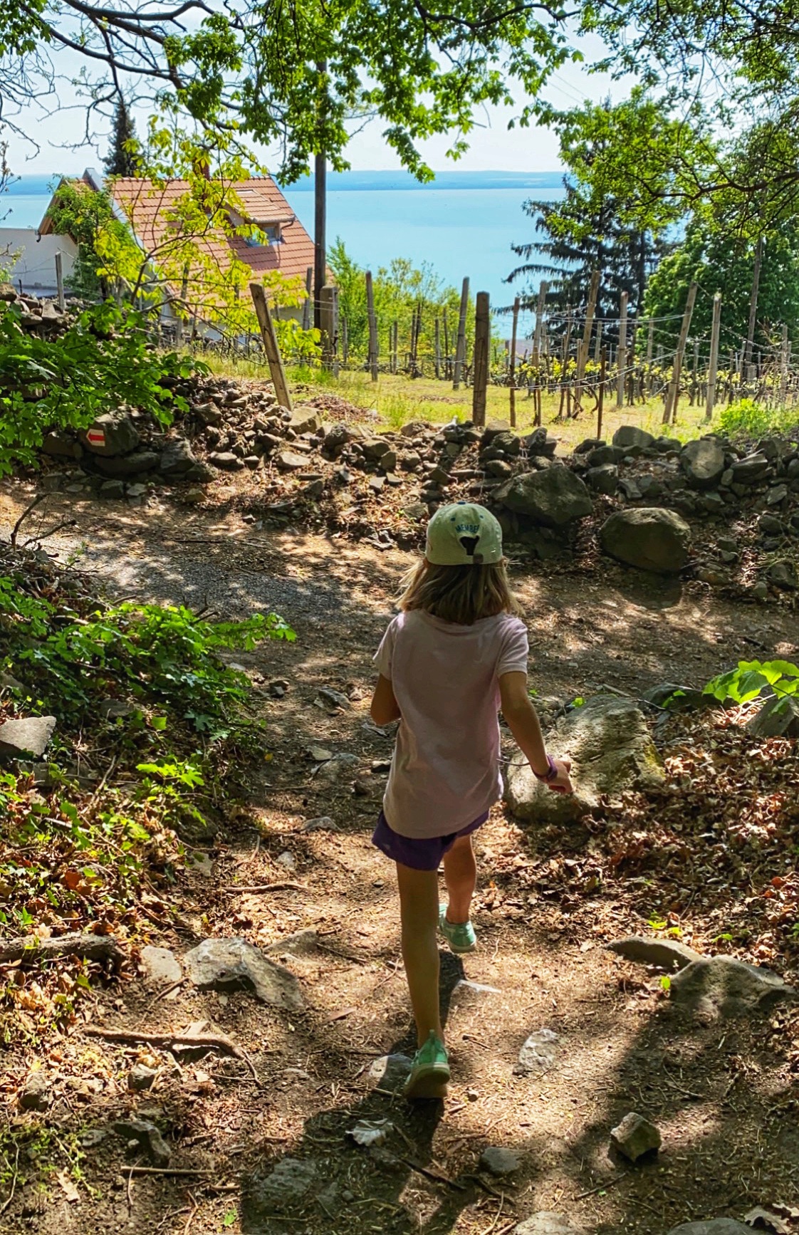 Badacsony is a terrific hill with lots of trails and hiking options overlooking Lake Balaton. A great parking lot (Rózsakő parkoló) near Kisfaludy Haz restaurant is located at the trail head and costs 400 HUF/hour, ($1.25/hr) a good deal for such a prime location. The restaurant is average, but the hike was among our favorites in all of the post-volcanic hills near the lake. Just over an hour’s drive from Pápa, this hike is rewarding, with many overlooks in all directions around the hilltop. The trails are very well kept, with some areas built into stair cases and paths with rock walls to prevent rock slides. The kids loved the varying terrain, lookout tower (Kisfaludy Observation Deck) and the lizards and snakes! Parents appreciated the amazing panoramic views from “Kőkapu” lookout area and the shaded trails – just under 4 miles worth that we were able to traverse in a leisurely 2.5 hours. We didn’t see any restroom facilities, so plan accordingly.