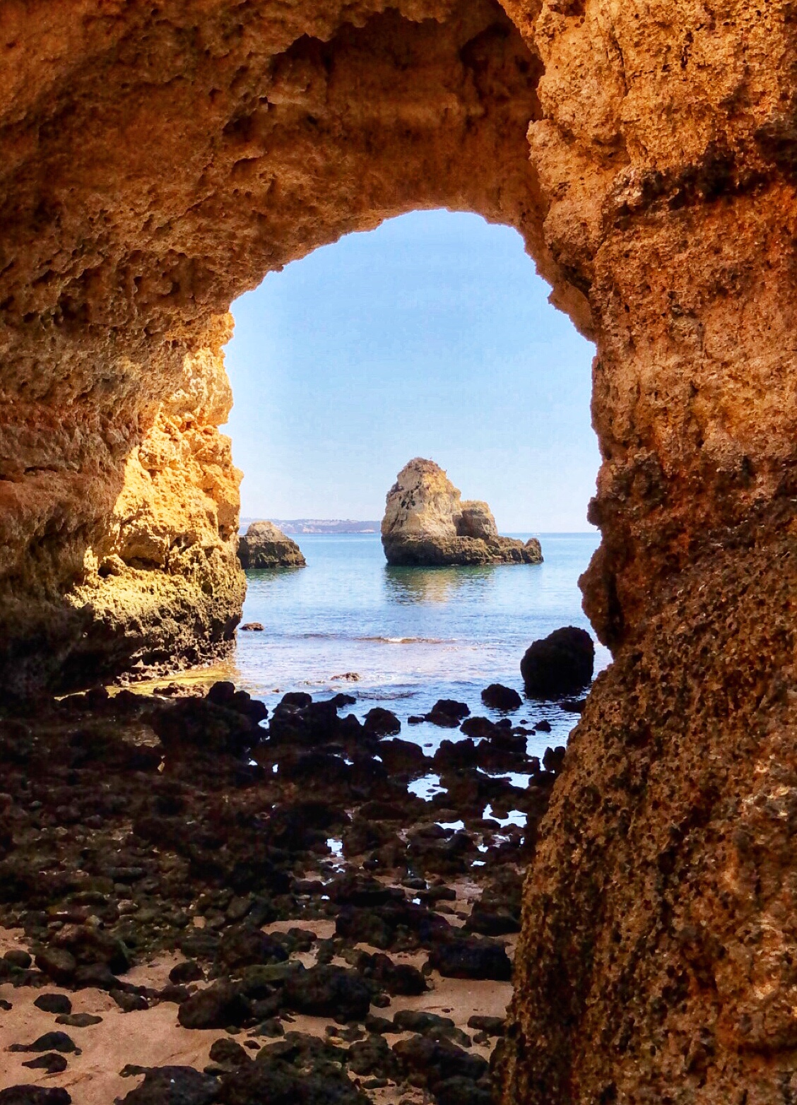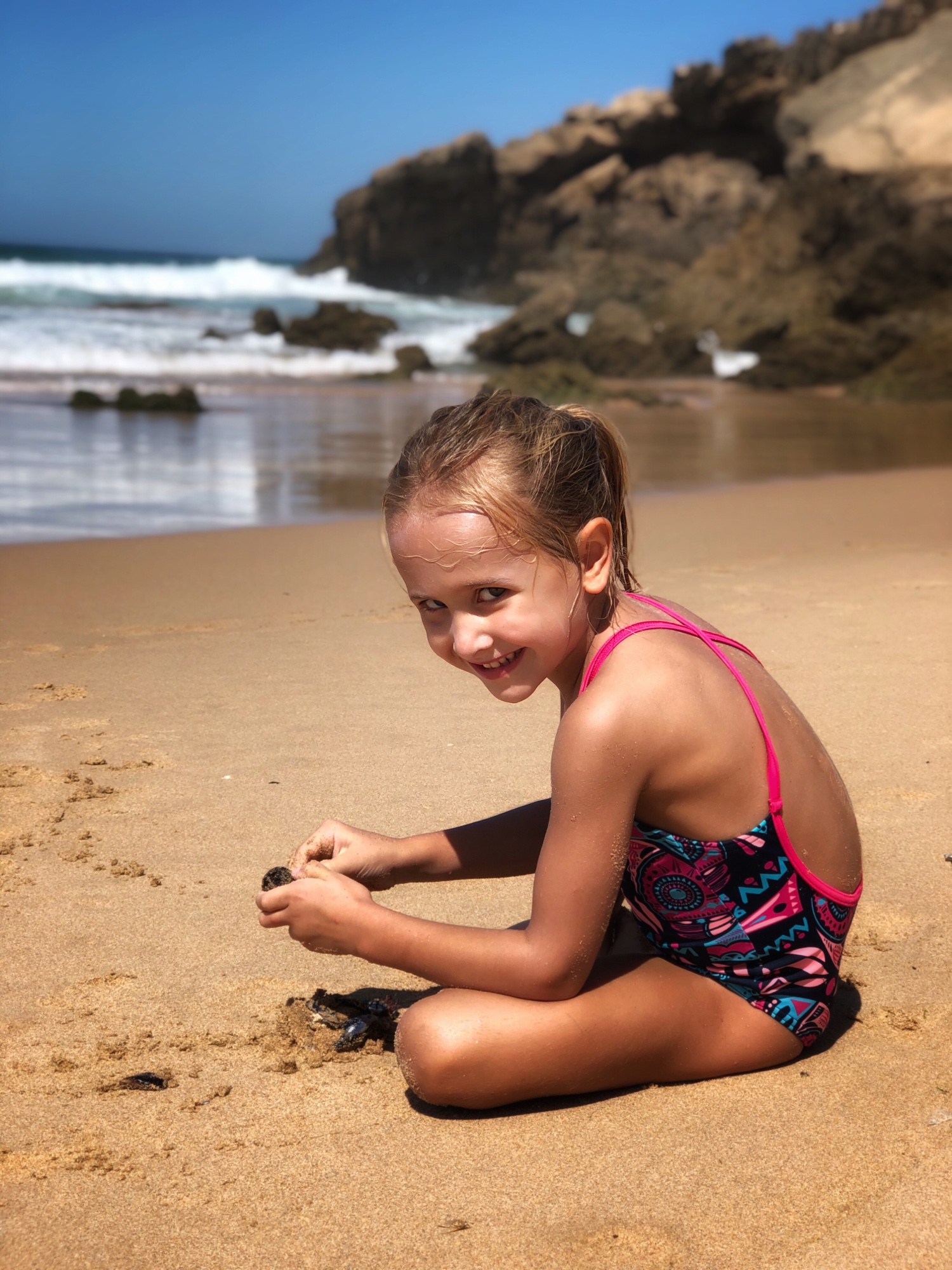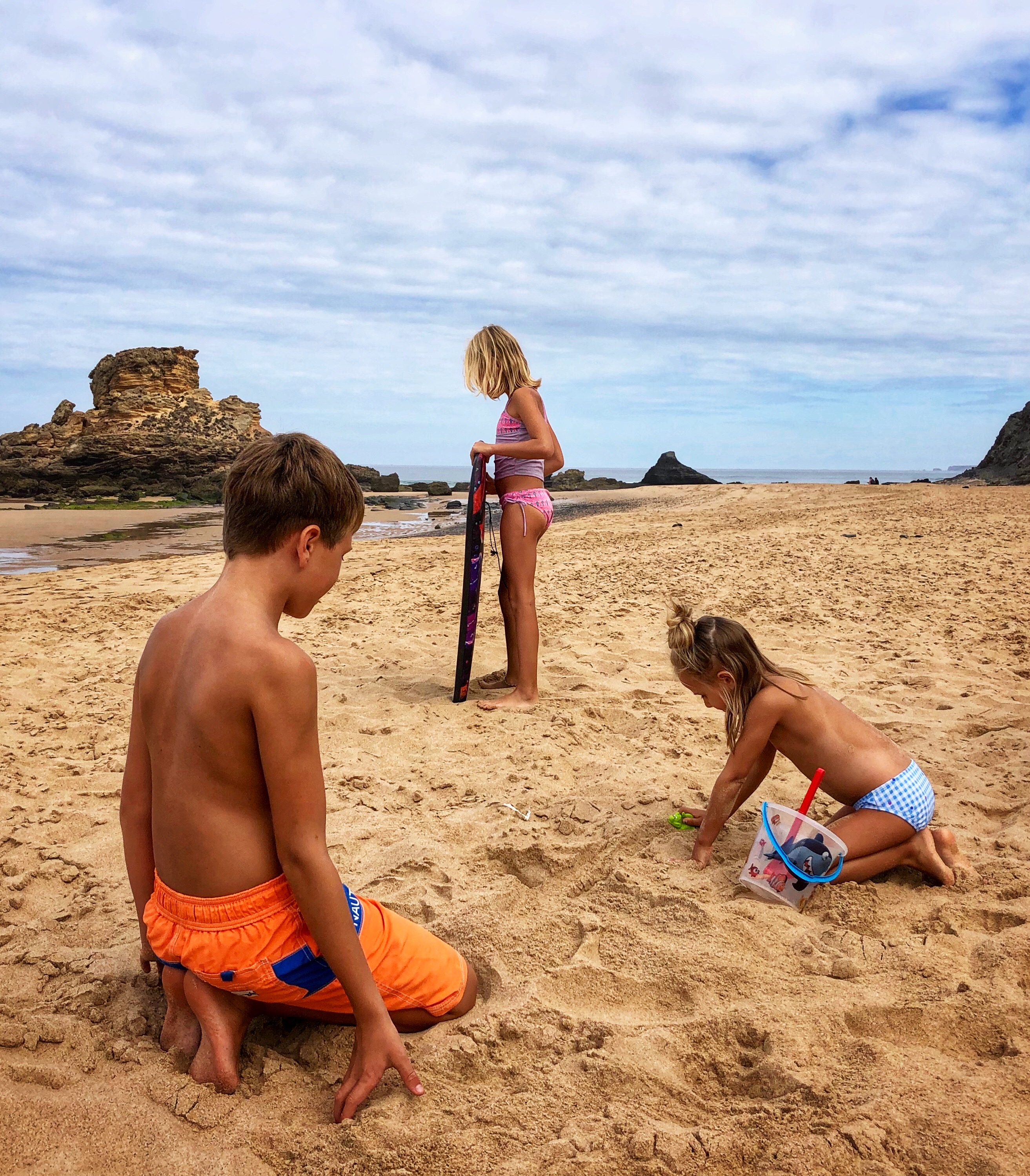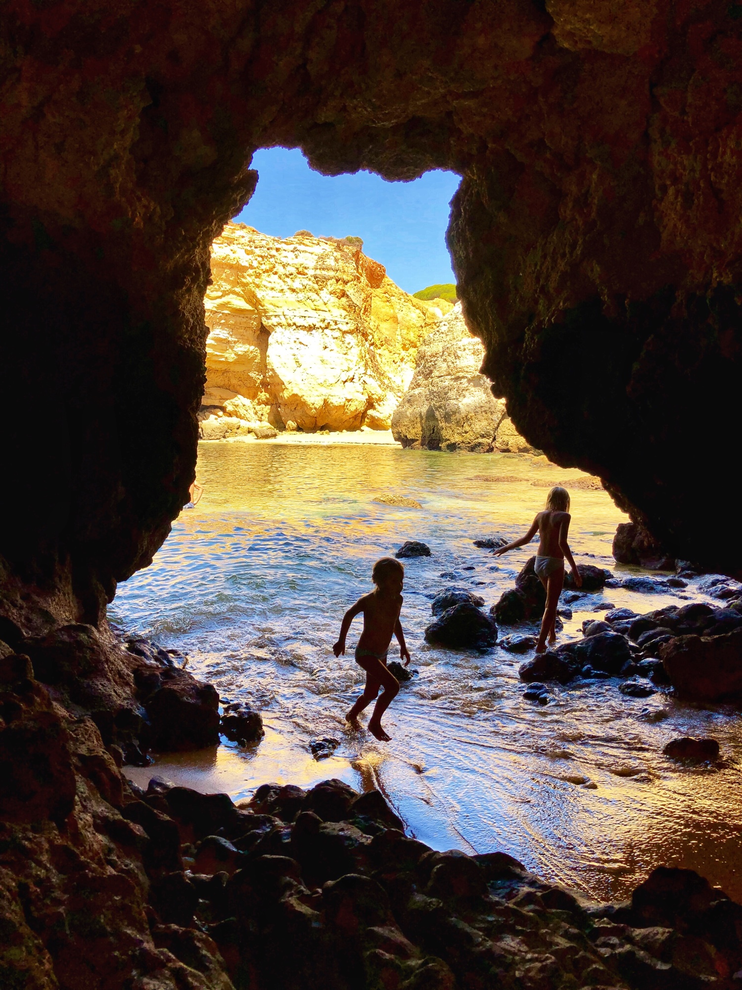 Like almost all beaches in this region, Praia João de Arens features natural tunnels and caves that lead to various other beaches and private openings that made for an especially fun place to explore. The kids were occupied with floating on the boogie board, climbing through caves and burying each other in the sand! This was the first time I felt comfortable (and in good company?) going topless as the girls did it naturally, and I must say it was very freeing! Obviously I had to be careful about my photography so I was discerning about where and when I took out my phone, but this is a decent overview of the beach – certainly one I recommend if comfortable with naturist beaches! As we learned early on, if you time this place right with the tides, it is a magical place indeed.