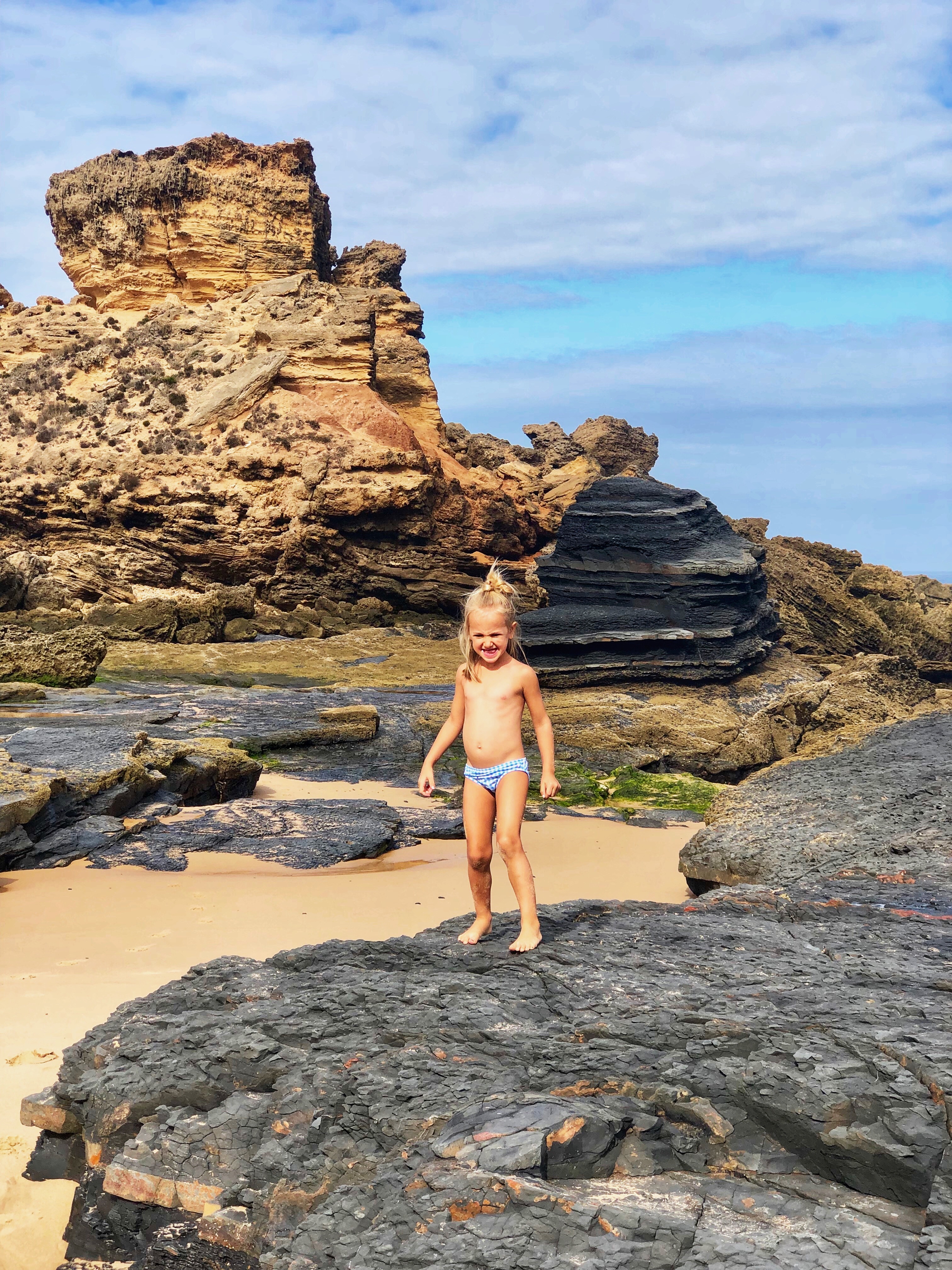 If I had done the research, I would’ve been able to prepare the children that this was, in fact, a nude or “naturist” beach. However, I did little more than scout the site and didn’t read reviews so we quickly got the hunch that this was going to be a new exposure for our littles. Nevertheless, we made the trek all the way there and hiked/climbed all the way down, so we weren’t about to turn back after discovering this remote paradise just because of a few happy naked bodies. We gave the kids a quick “be respectful” chat and plunked down in our very own sunny cave spot to enjoy the day at this very exotic beach.