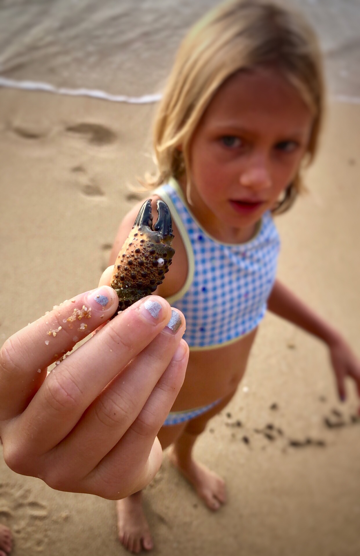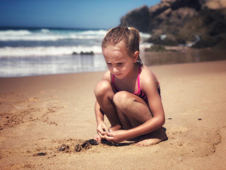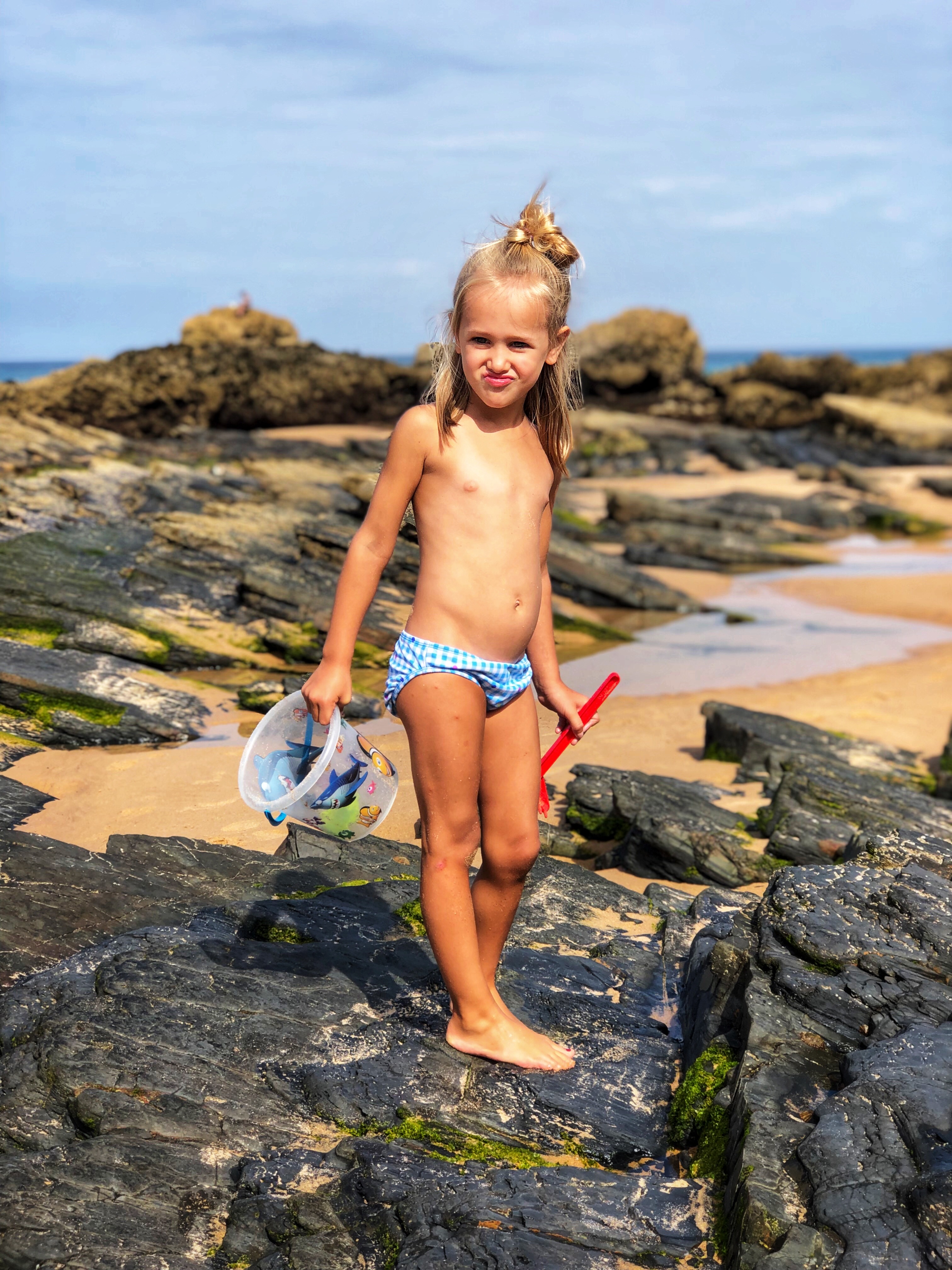 A girl and her bucket, searching for crabs…