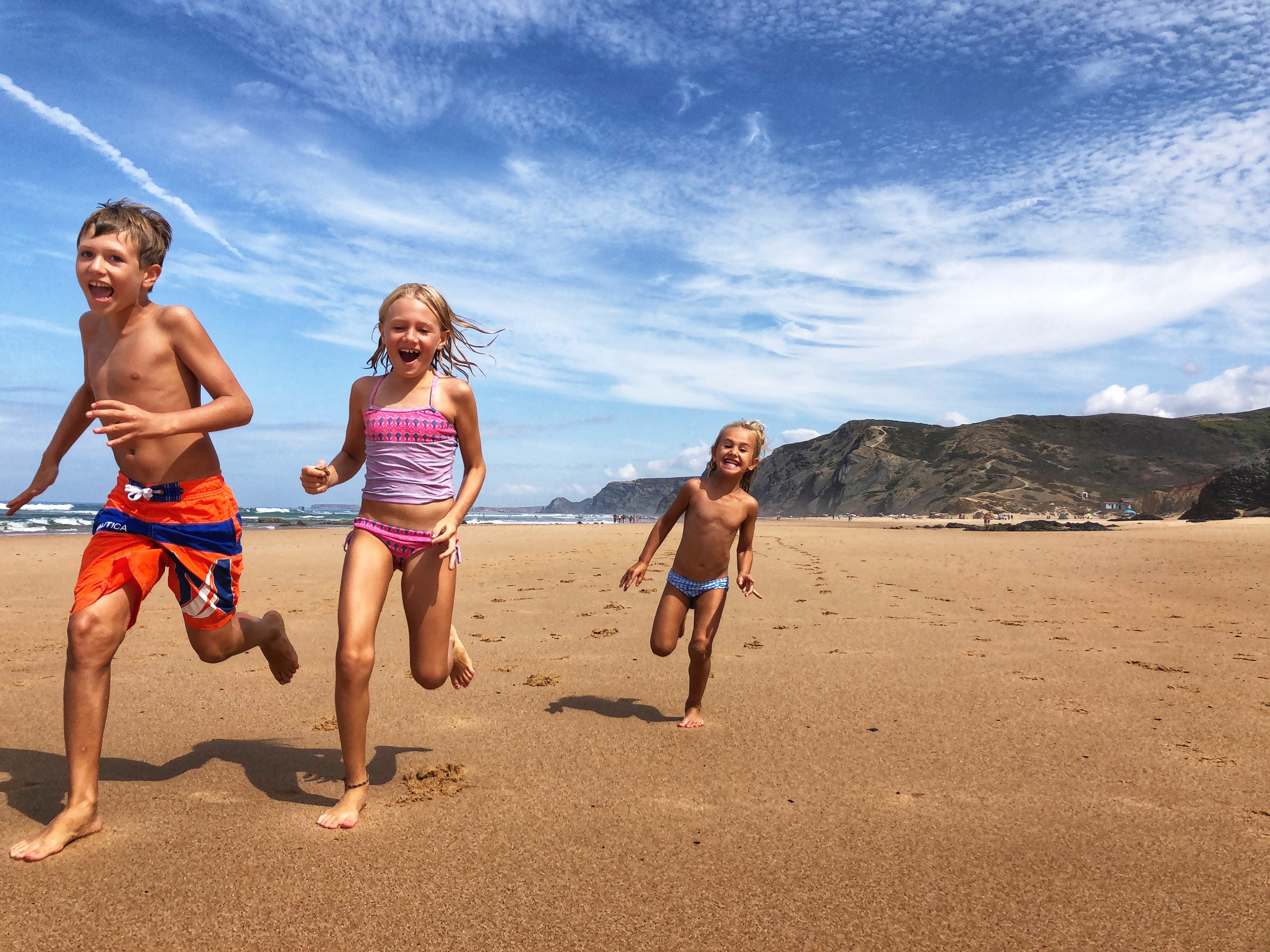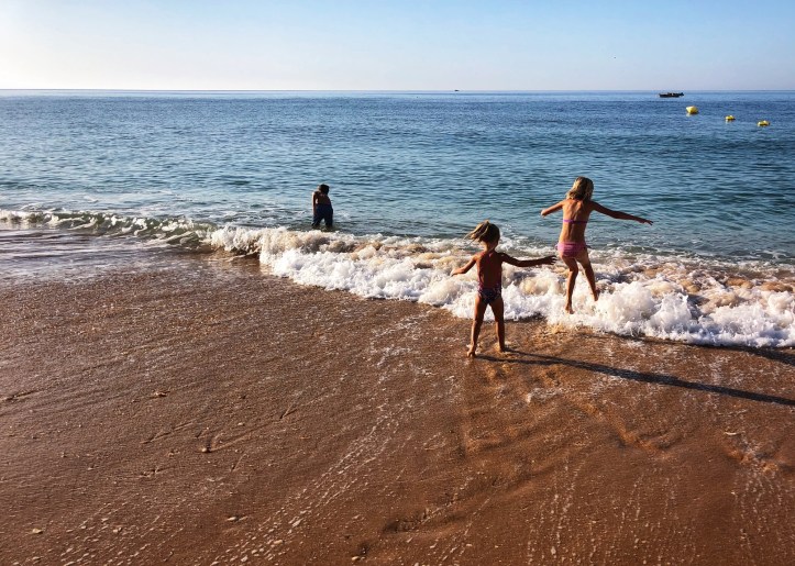The kids missed a week of school for this trip, so we made a point of collaborating with teachers (who were very accommodating) to get work for them so they didn’t get behind. It was a fun challenge to incorporate homework time while we were away – something we hadn’t done quite so formally before – but the kids did awesome with it! At one point big brother said, while sitting on our little balcony overlooking the water, “now this is a great place to do school work!” I couldn’t agree with you more, buddy! I loved watching middle one write about the trip – chronicling things noticed in each place we traveled to. After our week in Portugal we drove to Spain to see friends (see blog here), bopped over to Gibraltar, and enjoyed an incredible day in Morocco (see blog here). The whole reason for the getaway, however, was to have family beach time together in a brand new place, so that’s where the story begins!