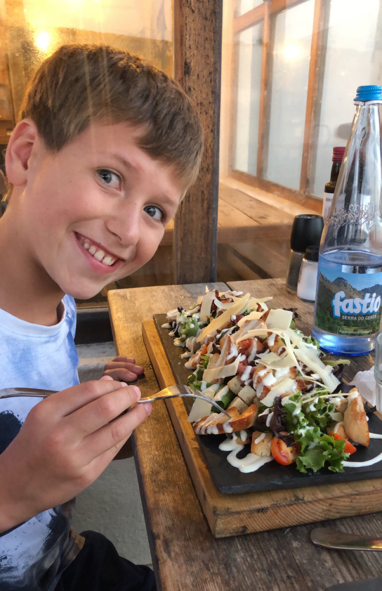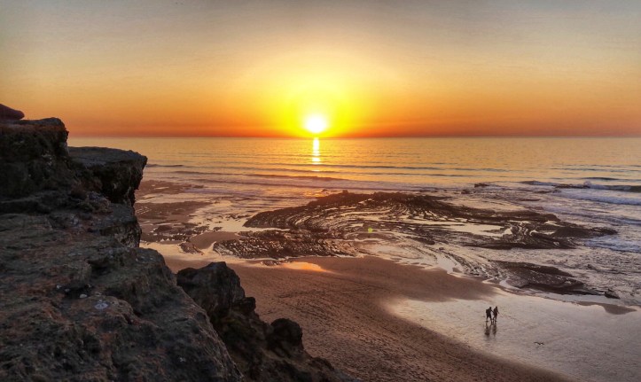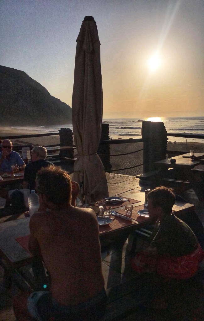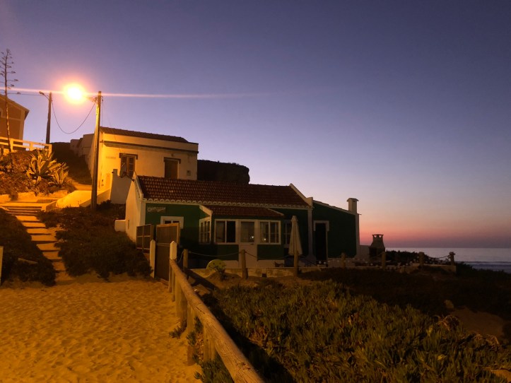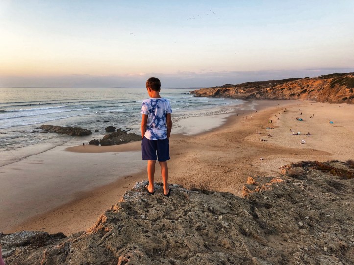 Everyone got wet, everyone got a scalp full of sand, and everyone got toasty skin! We worked up an appetite and knew there was a great little place in the village at the end of the beach, so we cleaned up and headed to O Sargo for dinner. It was just in time for sunset – and we almost missed the best view of it! The sun wasn’t visible from the village, so a quick climb up to the top of the cliff opened up to an awe-inspiring sight. Delicious food and a time-stopping sunset put a happy stamp on that first day. The kids were on a high and the hubby had fallen in love with Portugal.