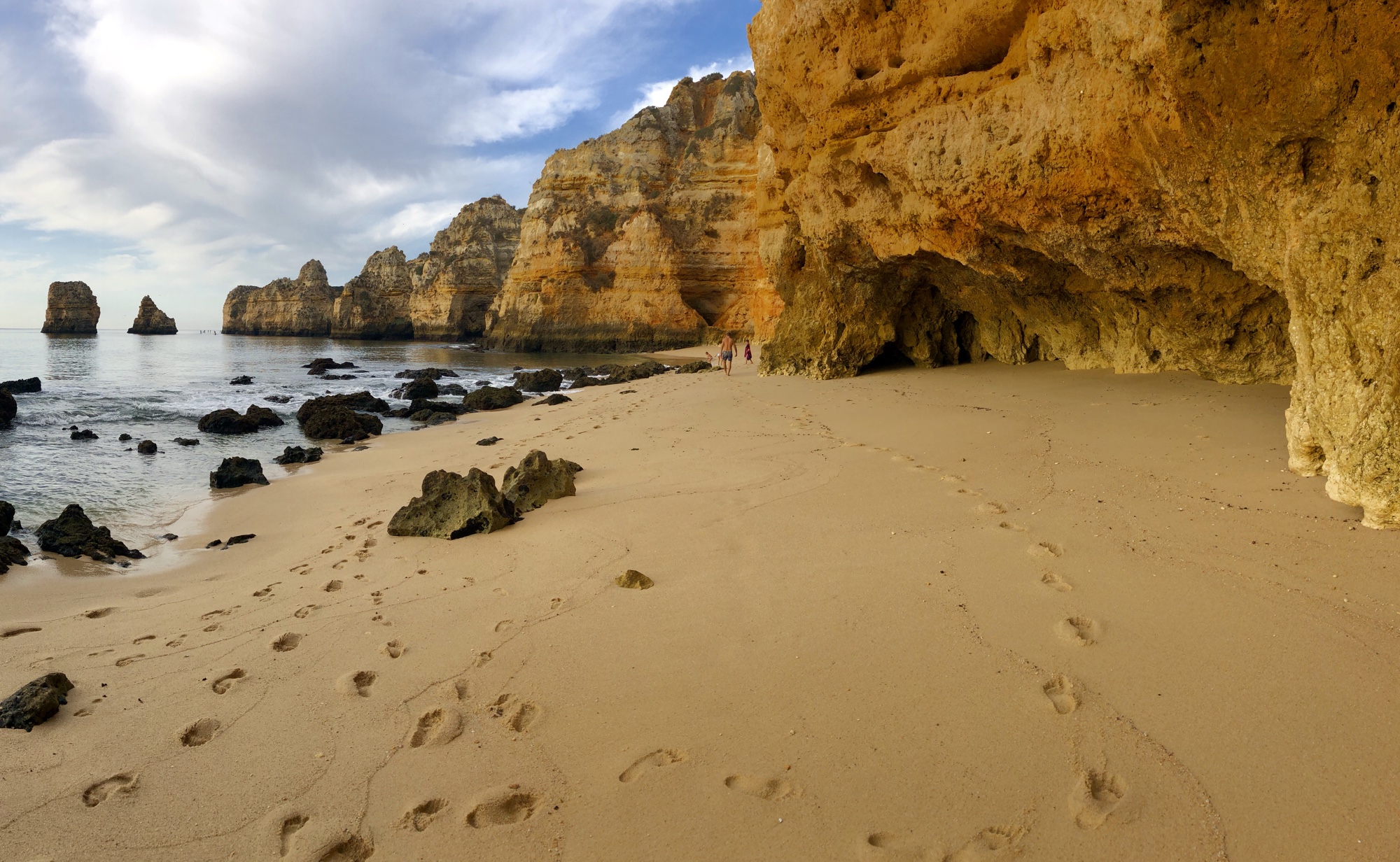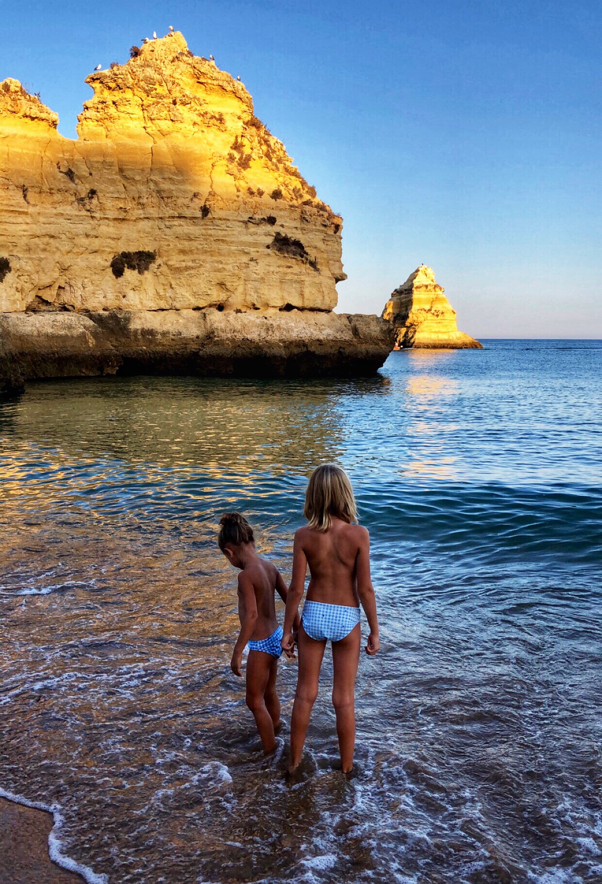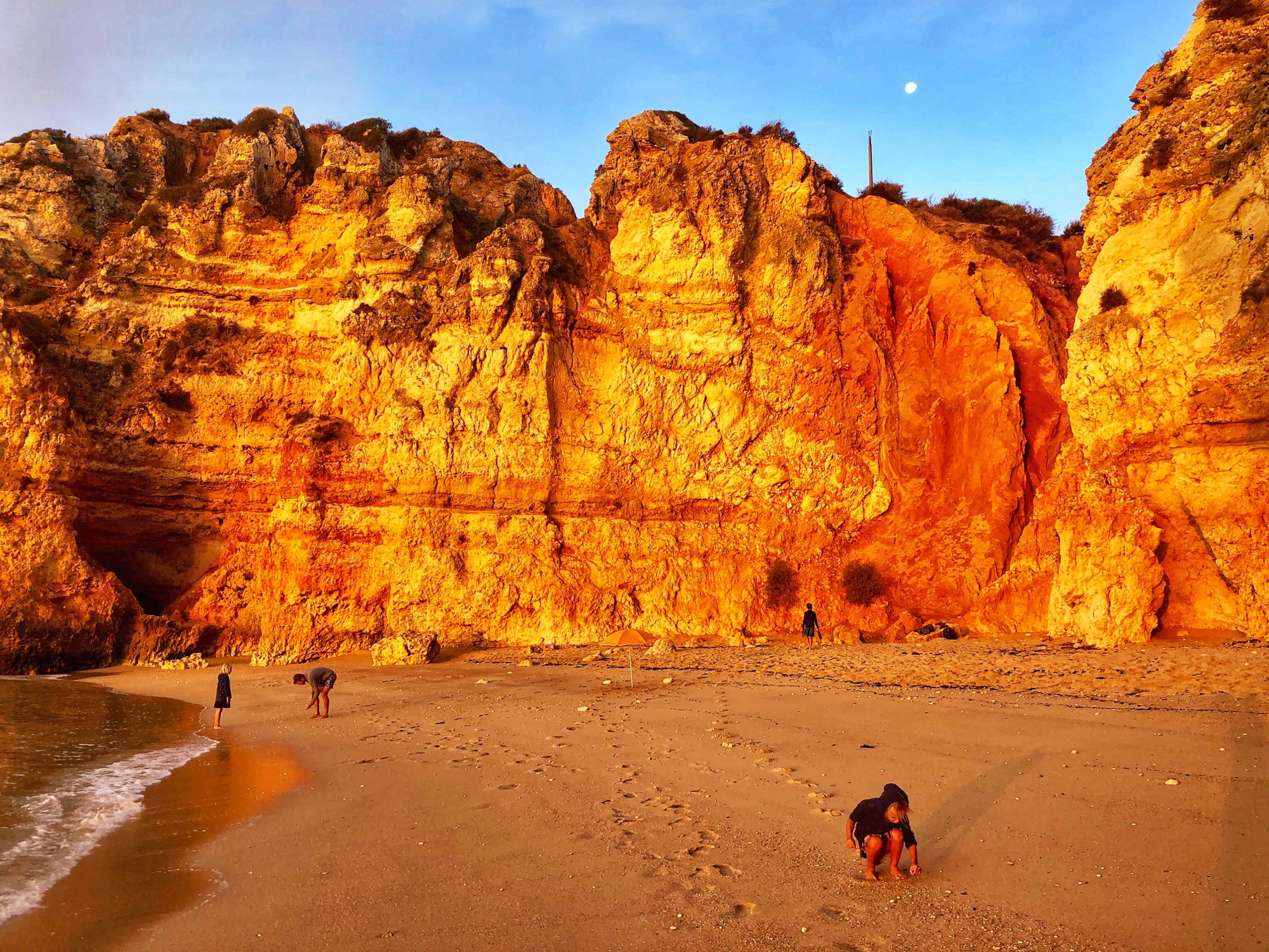 We took another quick peek at the Ponta da Piedade cliffs and then headed straight for another beach I was very excited to see. The theme of the day turned out to be “climb down to the beach,” and the kids were becoming experts at it at this point, so they weren’t daunted at all when I told them they had more climbing to do. “Can I just use bare feet??” asked middle one, and I said yes – and followed suit with my own bare feet.