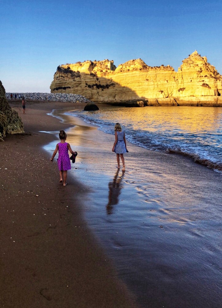 After a long afternoon at the beach squeezing in every bit of seawater, sunshine and sand we could, we headed to our apartment – our home base for the week. We stayed at the Dona Ana Beach House apartments (aka Silver Moon Beach House, about $150/night for our family of 5) which were a great location and price, with ample space for our whole family in 2 bedrooms and 2 bathrooms. The balcony overlooked a pool and the nearby beach (Praia Dona Ana), and the central location was walkable to several beaches and into town each night for dinner and supplies. It was perfect.
