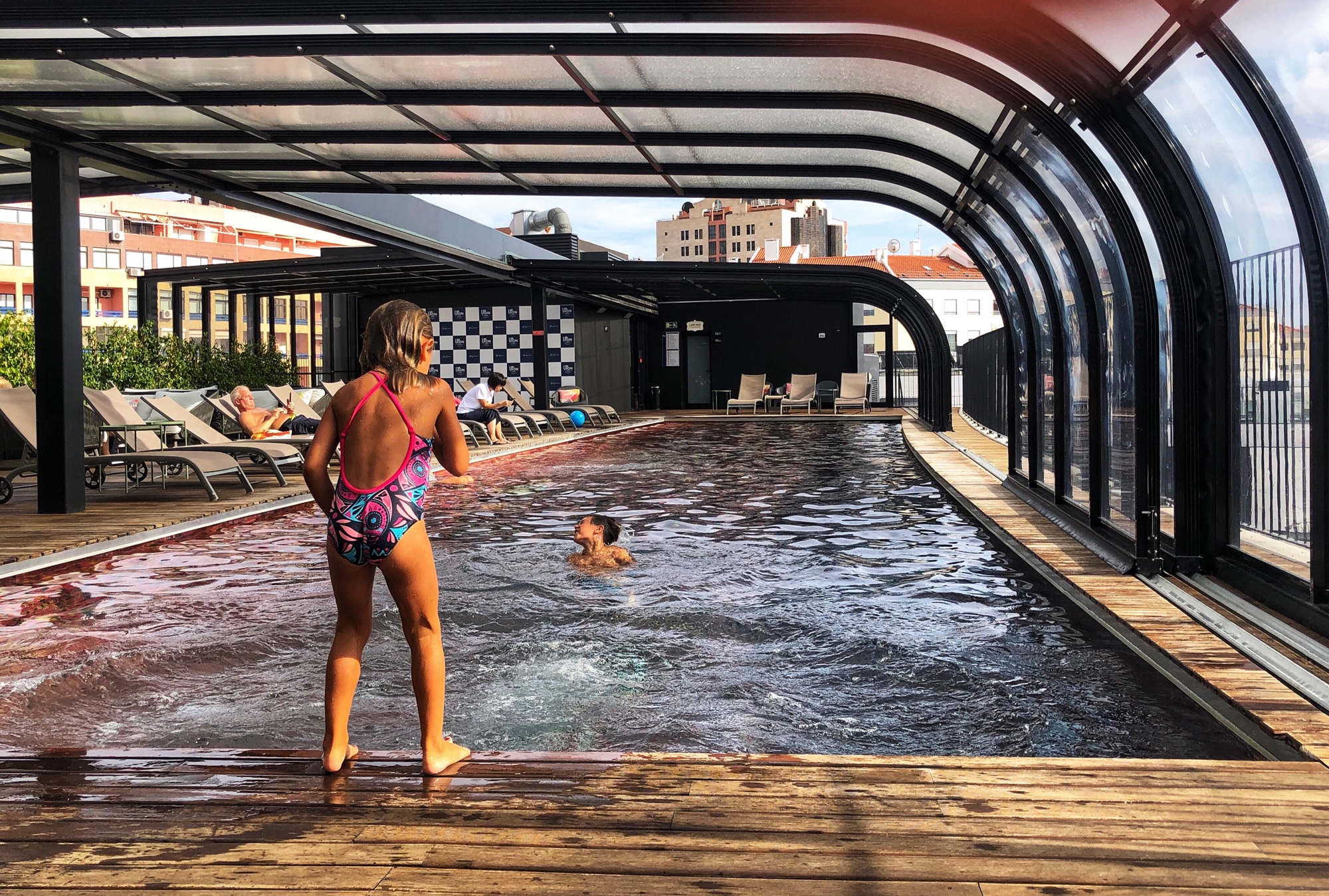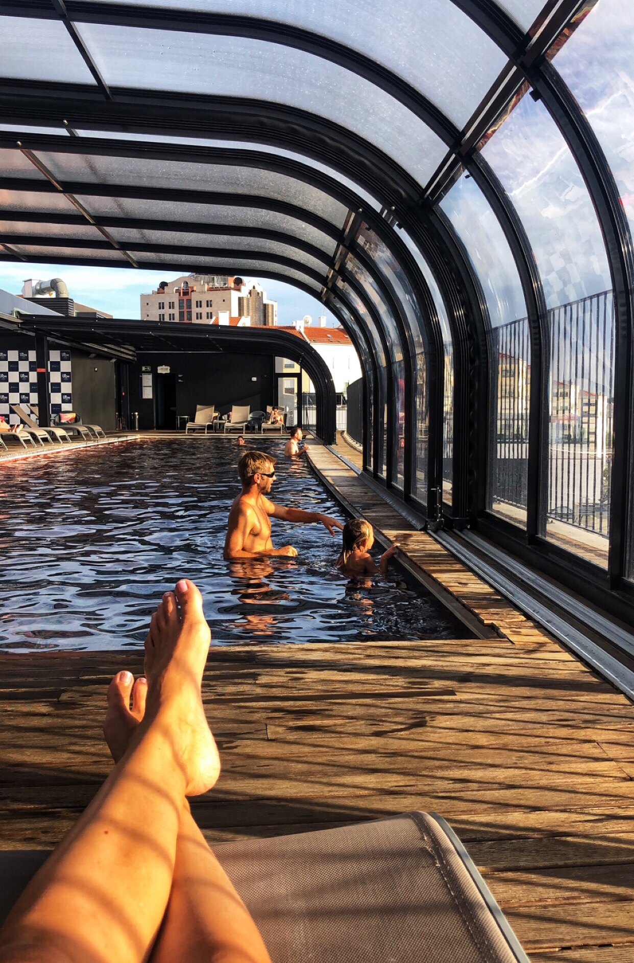 After returning from Spain we headed back up to Lisbon for the day before flying back to Hungary. As if we hadn’t done enough swimming, we hit up the hotel pool that overlooked a soccer stadium. So cool! It reminded us to add a European soccer game to our to-do list while living over here.