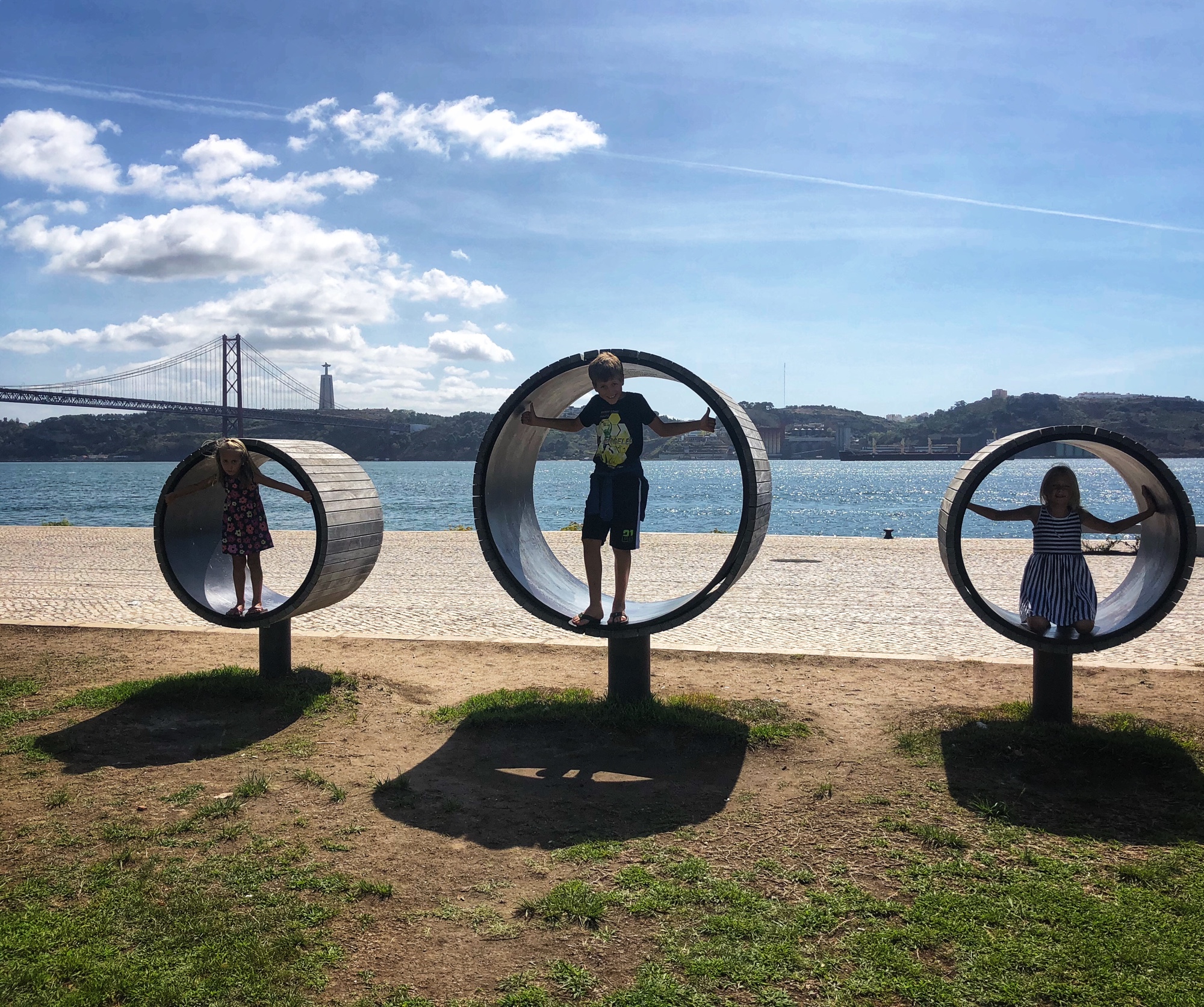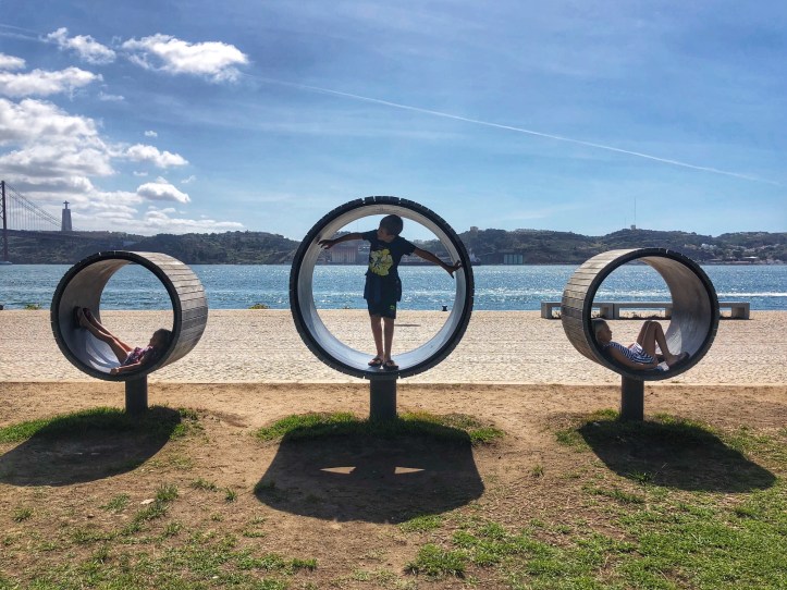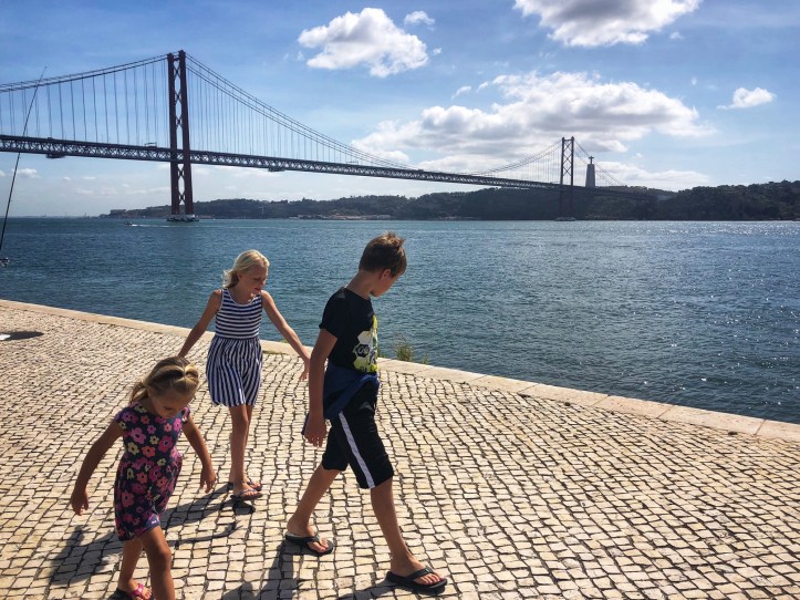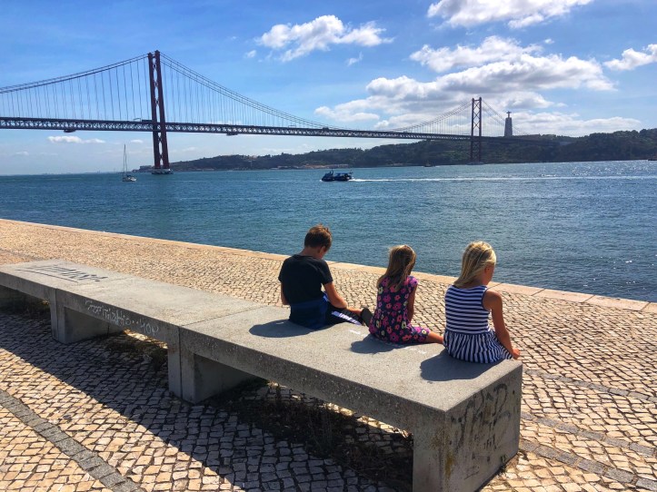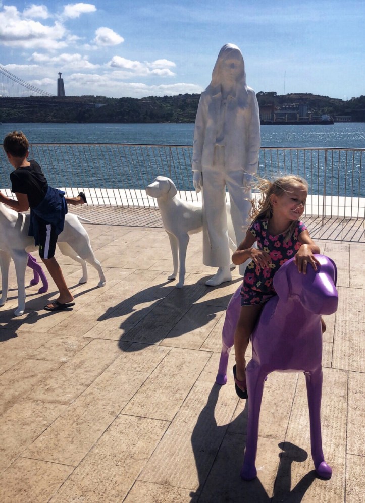 On our last day we walked all over the Lisbon waterfront and saw beautiful parks, statues and monuments, as well as enjoyed one last lunch of yummy tapas. Poor daddy cracked his phone screen and lil one was disappointed the dinosaur exhibit at the museum had closed down (they replaced it with another Banksy exhibit. Cool, but we had already seen that, so…), so everyone had reached their limit for travel when it was time to leave. We had plenty of opportunity on our trip home to pour over photos and videos from our time in Portugal (and beyond) and were overcome with gratitude for another successful family vacation. Next time we will spend more time in Lisbon and perhaps visit nearby Sintra. I’m so proud of the big kids for taking their homework seriously and being so engaged with the various landscapes we explored and cultures we were immersed in. They have certainly learned a lot and have become experienced little travelers! We saw ten beaches and had a quick city tour in just six days…what’s next?