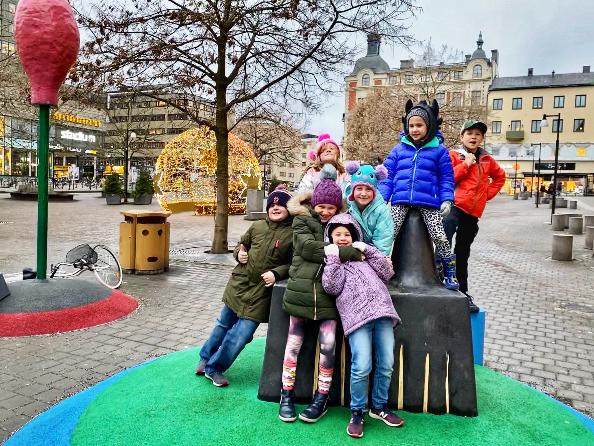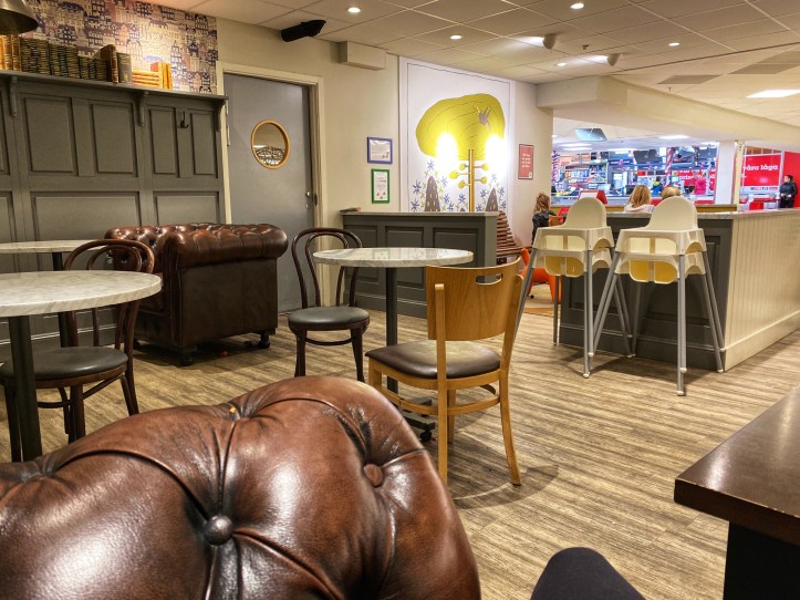 Only in Sweden (or places like it) can you find a kid’s play area and beautiful cafe with cozy seating area just outside of the grocery store. We went to grab a delicious selection of salad bar and savory pastry items for dinner (the cheapest way to eat in Scandinavia) and we sat down at these cute tables to eat while the kids played in the play area. It is so family friendly here!
