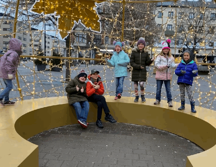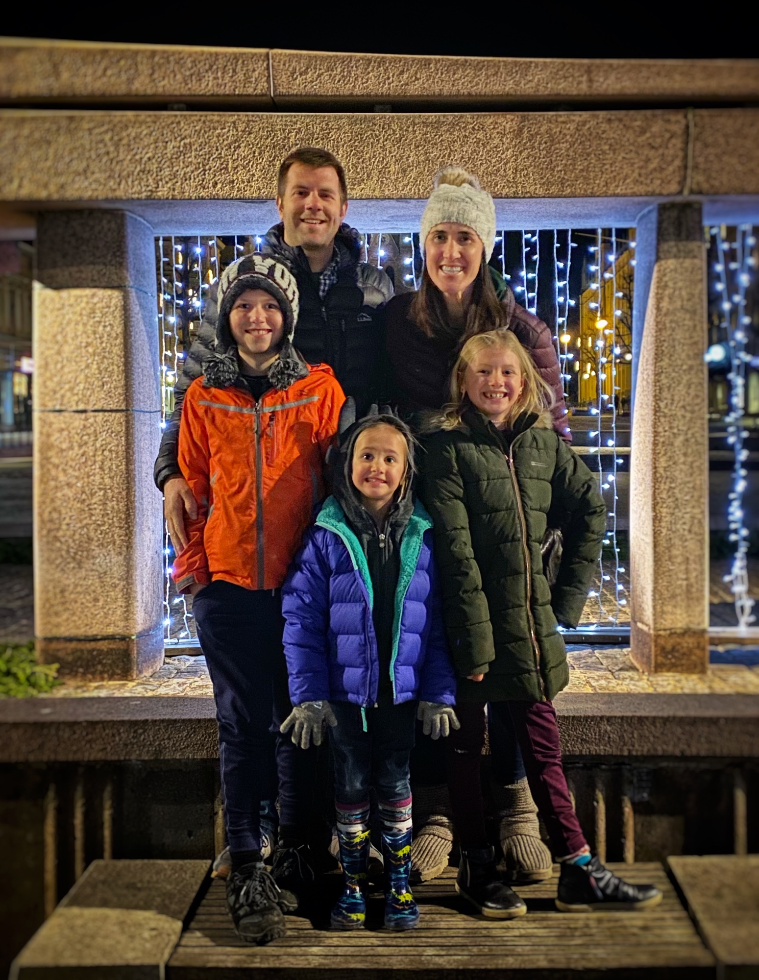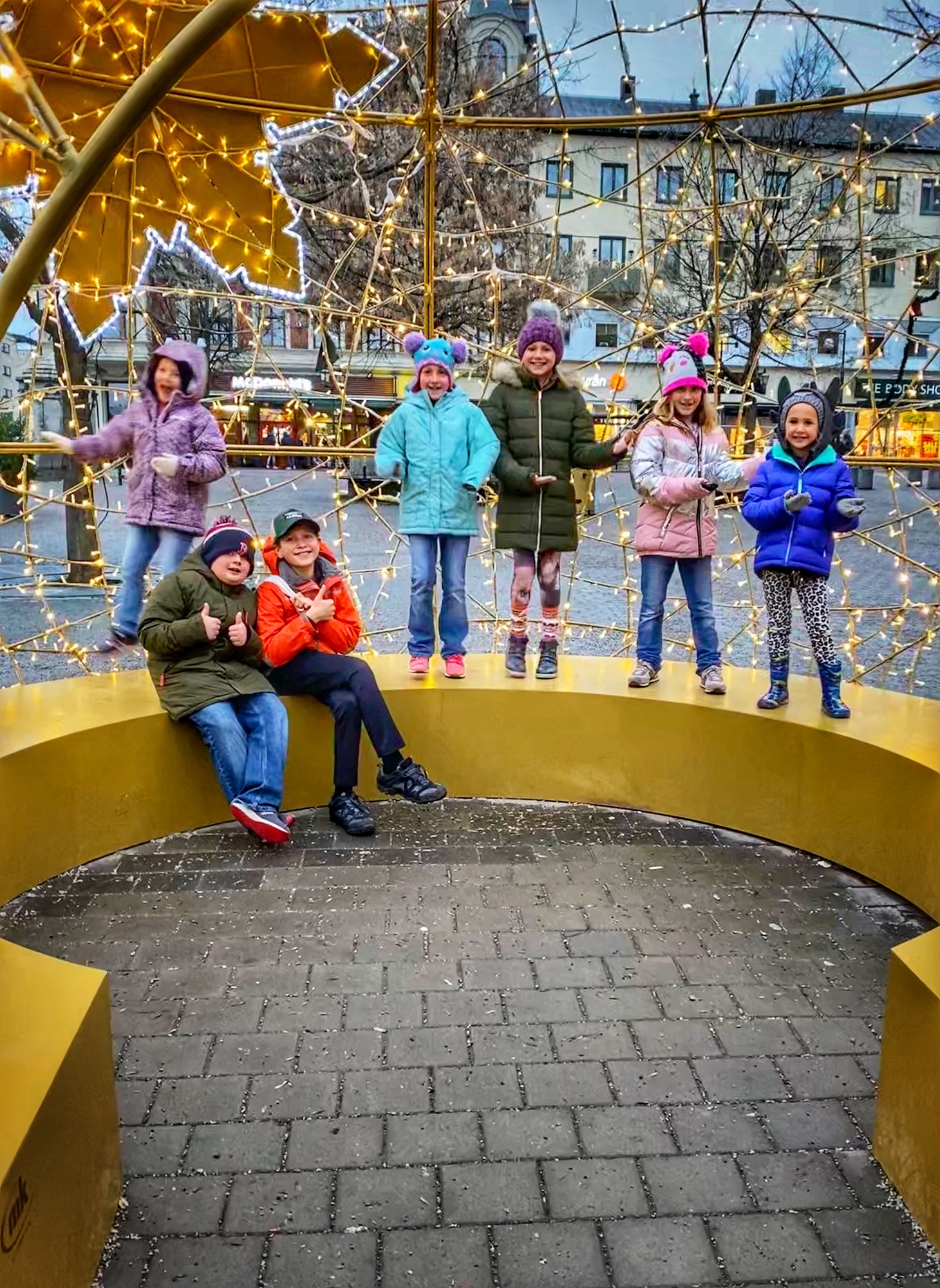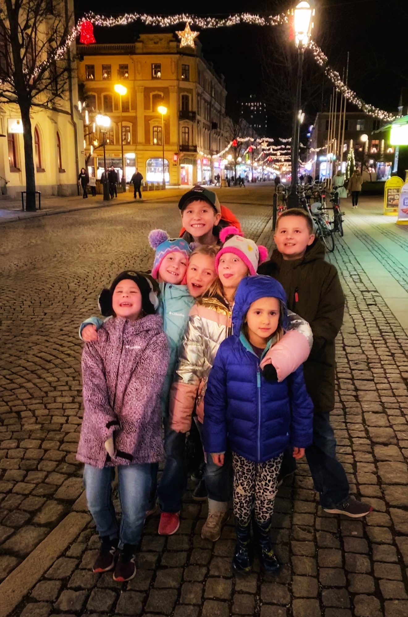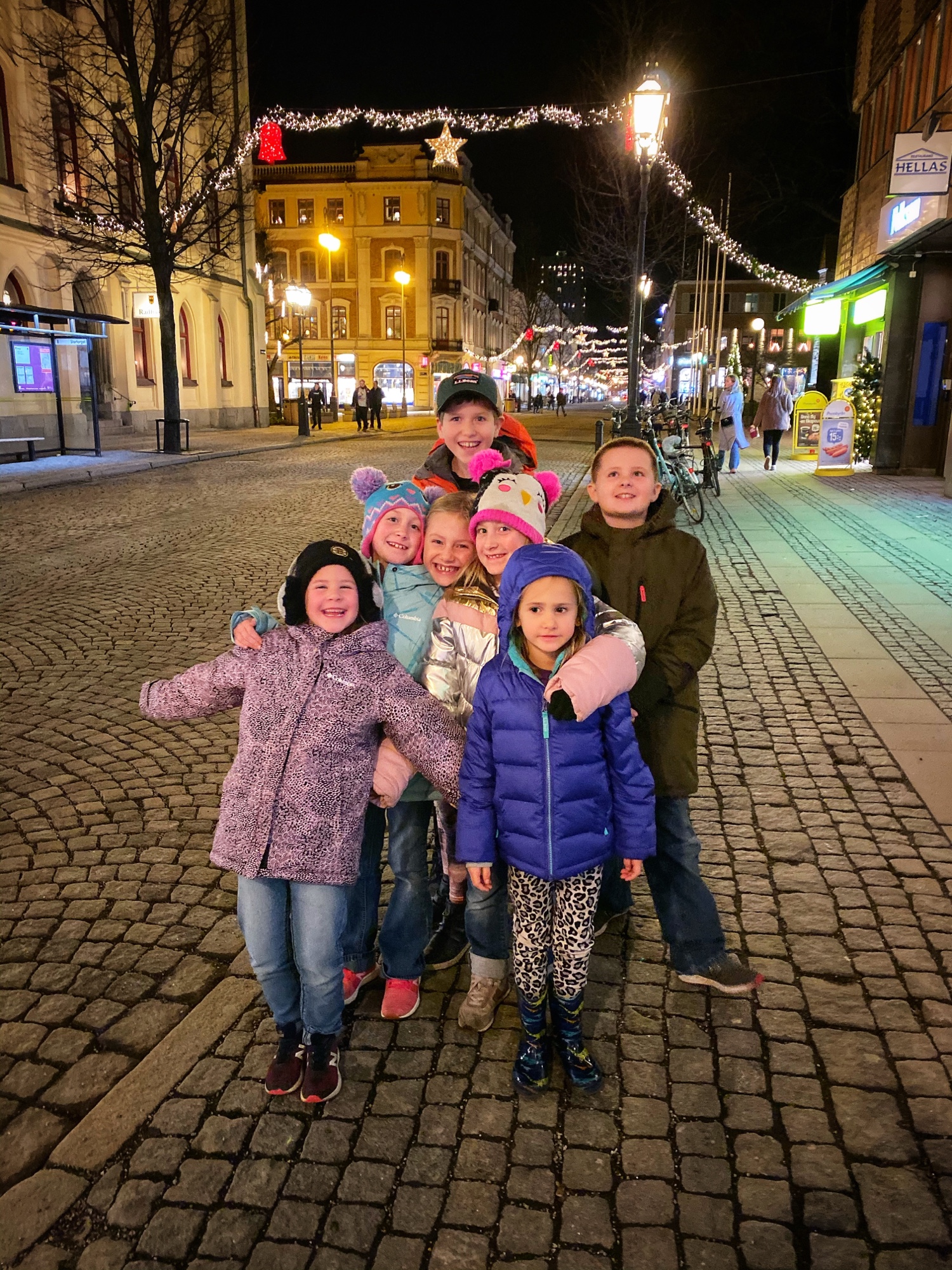 As there weren’t many restaurants open for New Year’s Eve, we managed to score a reservation at an Indian restaurant that was positively delicious (albeit expensive)! On the way back we snagged family photos in front of the lit up statue on the square. A rare thing for big families! We headed back to the hotel to play games and let the kids get rowdy before heading back out for firework festivities. It was worth the long wait! This was the first time our whole family was able to stay up late enough to ring in the New Year together … and see the fireworks! Simply beautiful!