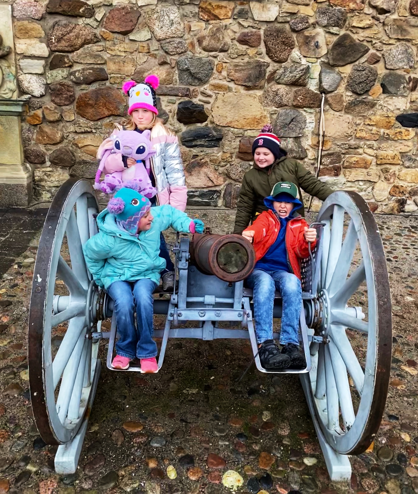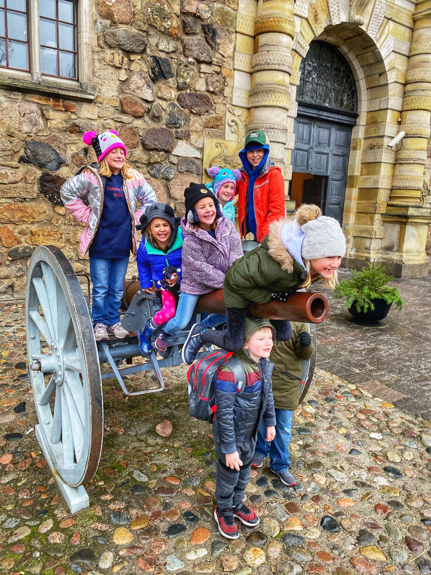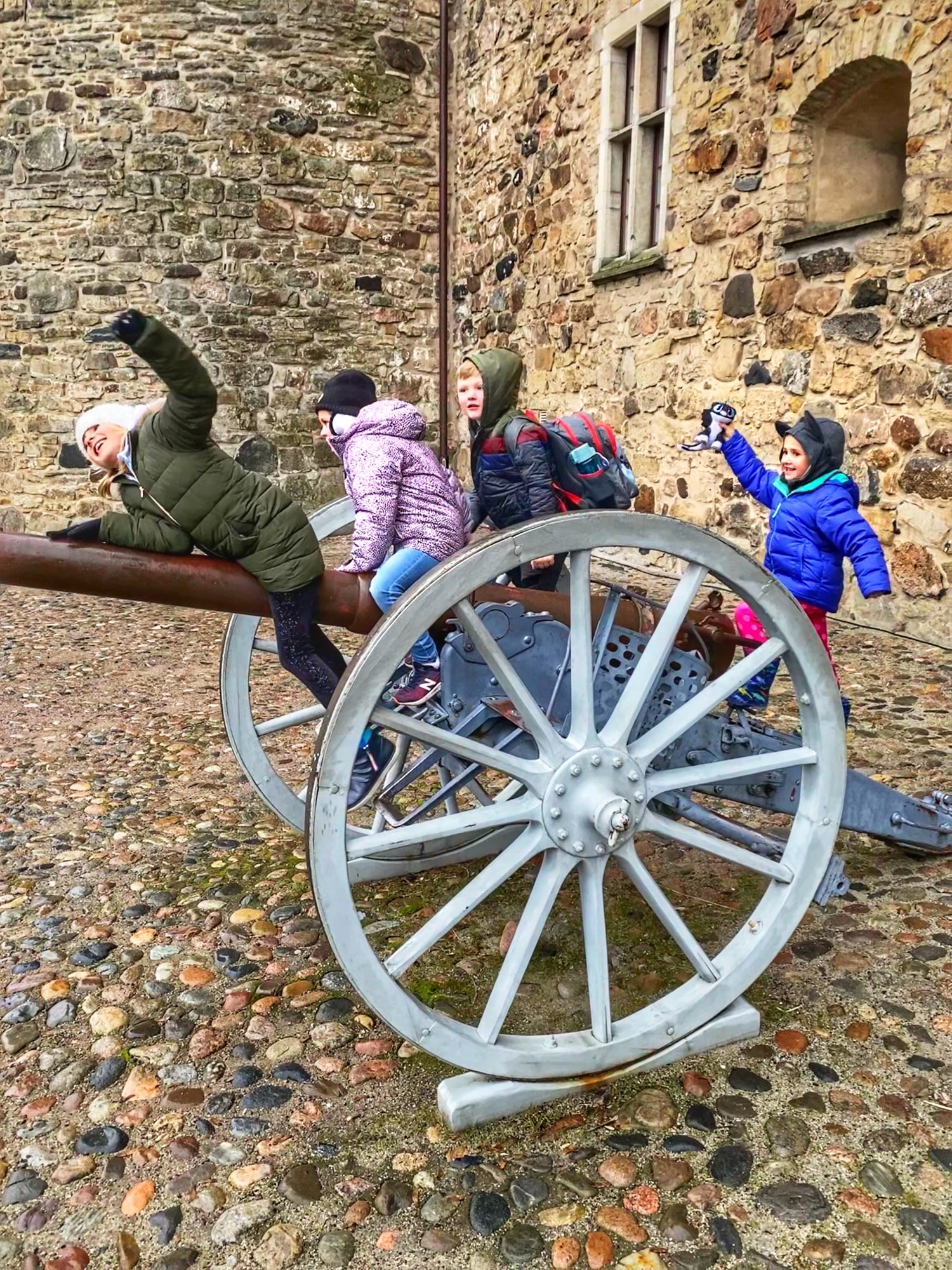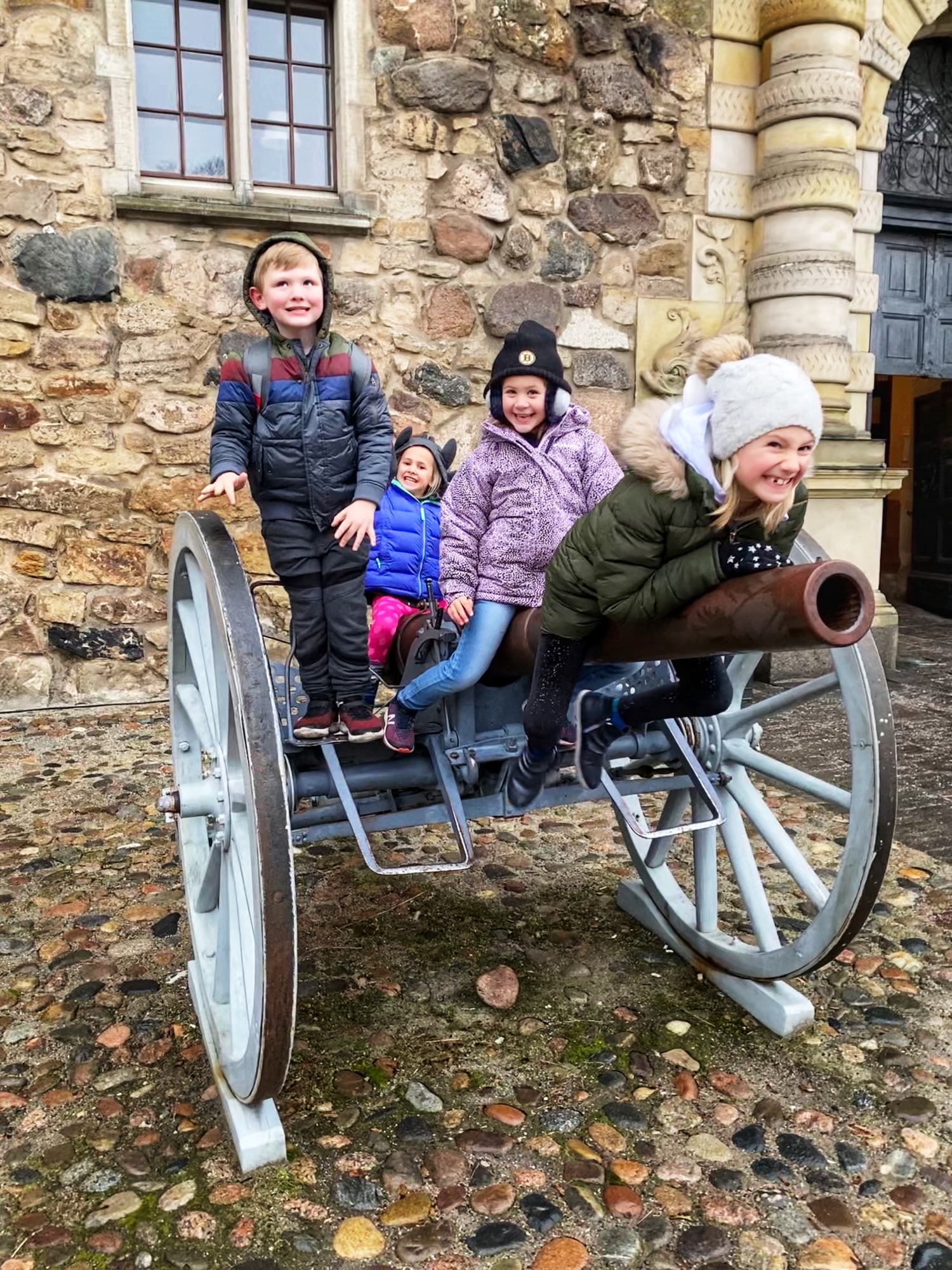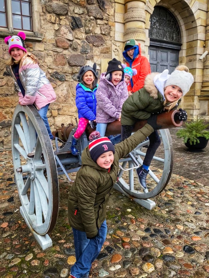 When we arrived – along with two other families – we left our things in the hotel and set out on a windy day to take a walk around the square and castle area. Antique cannons never get old. We realized quickly a lot of things were going to be closed as we were visiting during the New Year holiday, so we managed to see what we could before things closed down.