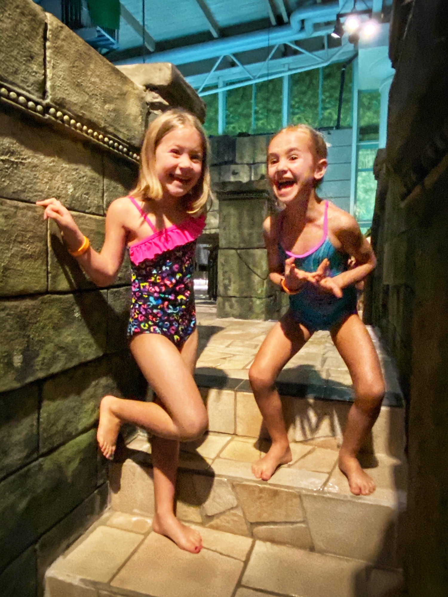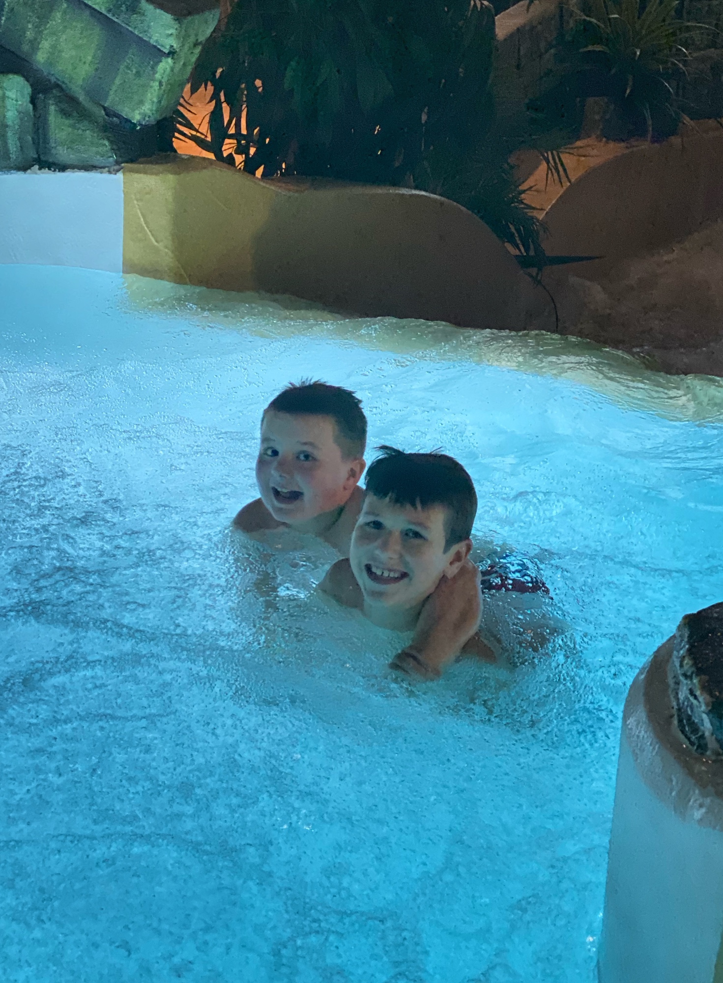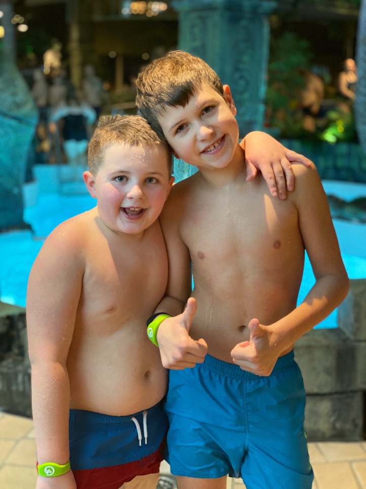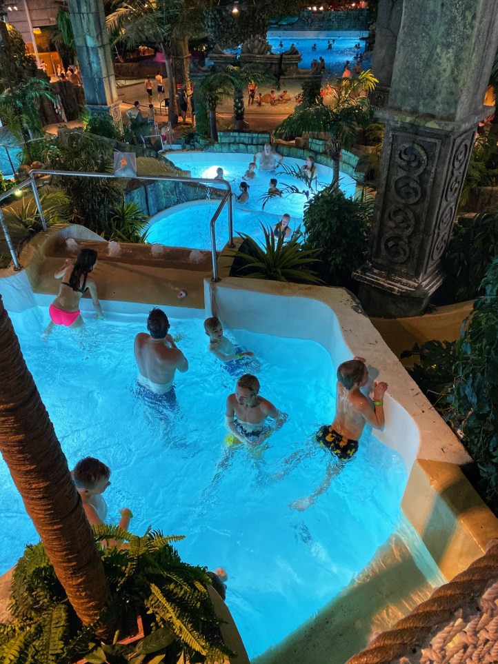 The next day the kids were VERY excited to walk to the jungle-themed thermal water park, about one mile from where we were staying. We sang songs and stopped at every single statue for a photo op along the way!