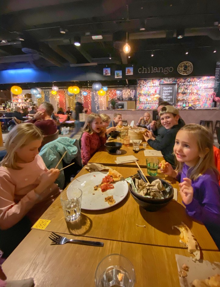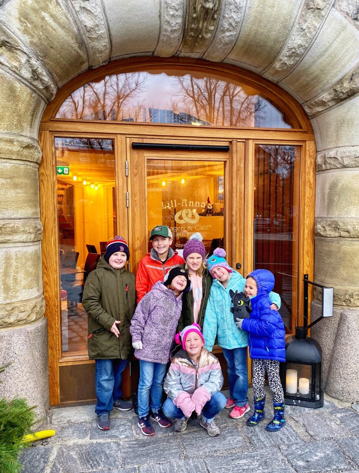 The next day was gorgeous! The dads took the kids to the playground so the moms could hop around from (closed) store to (closed) shop. HA! We stocked up on a few things at the grocery store and then headed to the little coffee shop to enjoy lattes, bagels and smoothie bowls. Soooo good. Everything just tastes cleaner and fresher in Sweden. When the kids and dads were done at the park, they joined us at the coffee shop and then we split up and went to different restaurants depending on what the kids wanted to eat – tacos, burgers or sushi!