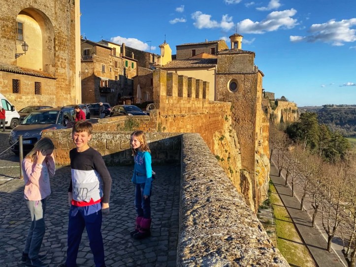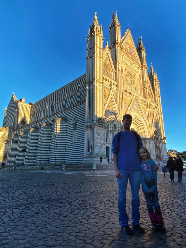 Our school break road trip with my brother and his oldest daughter took us from skiing in the alps (see blog here) to Rome and back up through Italy to Venice, hitting a few notable cities along the way. Jon’s biggest bucket item was visiting Rome and the Vatican – with a huge bonus of seeing Pope Francis’ address in St. Peter’s Square – and my niece had been dreaming of Venice. So, we pulled out all the stops and orchestrated the ambitious “1200 mile” itinerary with incredibly good luck, cooperative kids, awesome weather, and VERY excited energy! Our first stop was in one of the many little hilltop cities that exist in the Latium region of Italy, Orvieto.