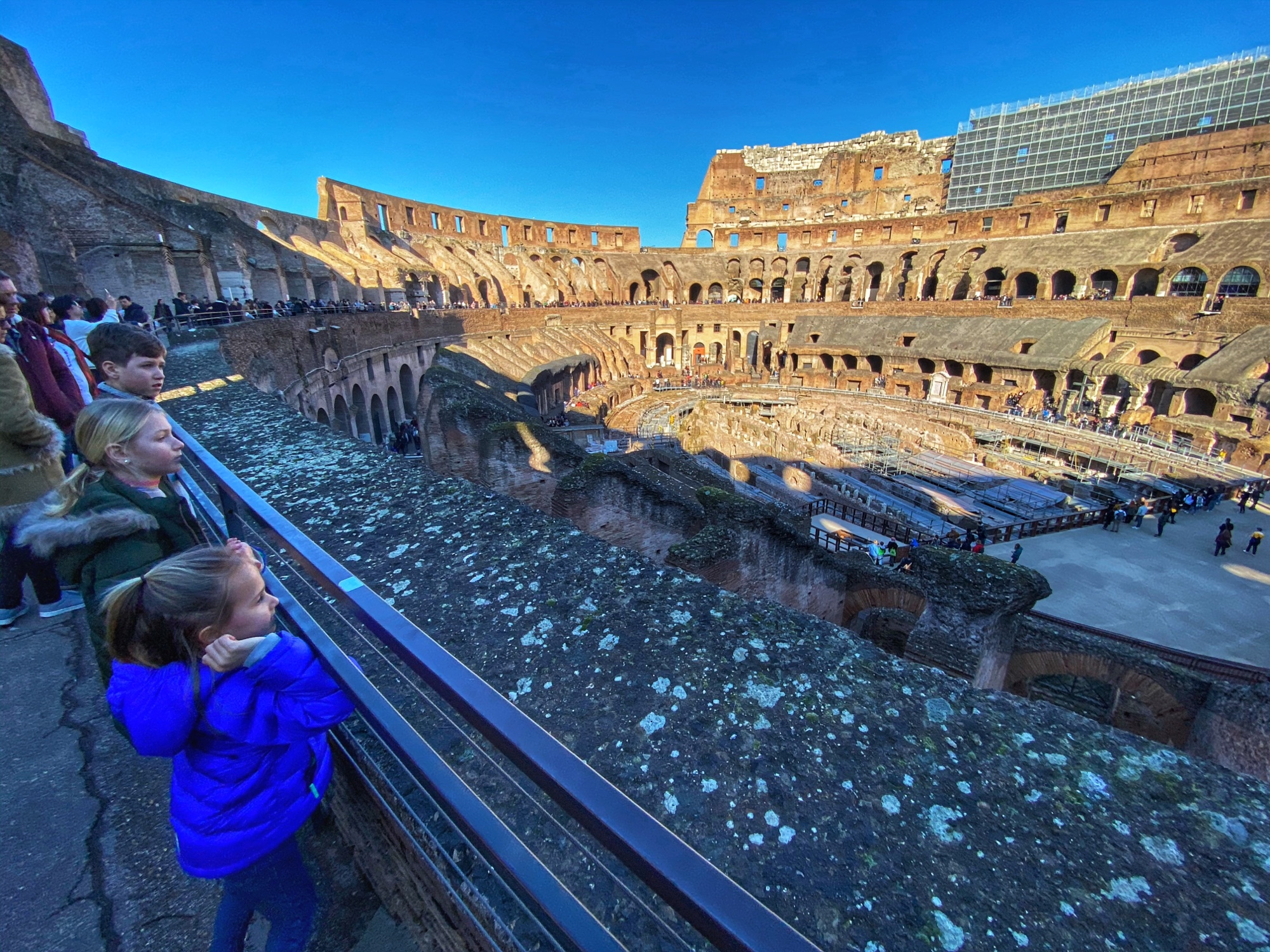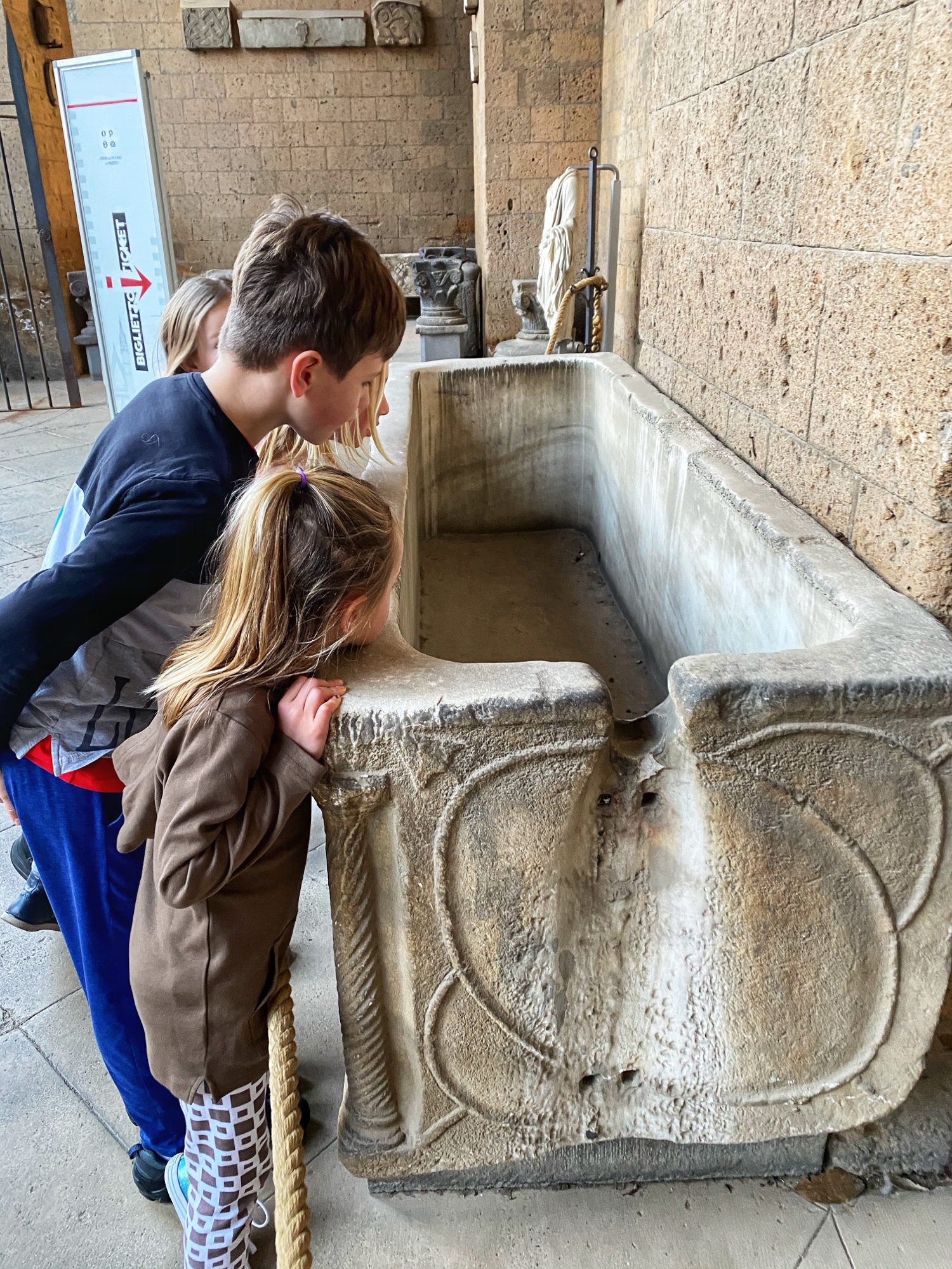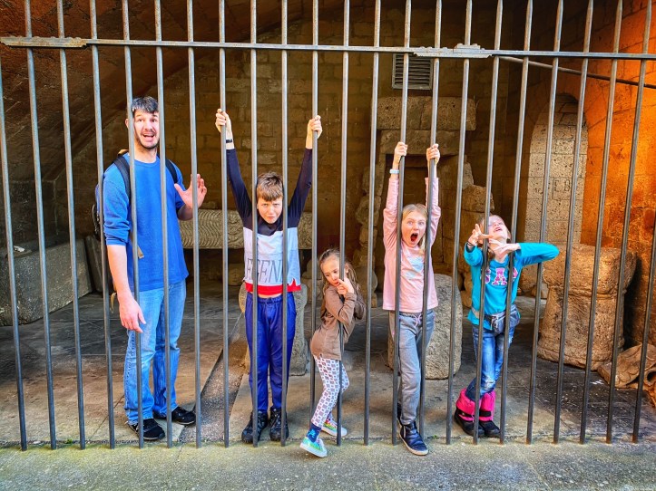 Once inside, I did my best to force the Rick Steves free audio tour on the kids, but I think I was the only one who got anything out of it. The kids were more impressed with my dramatic explanations of what once took place in the arena, as well as what is now visible under the arena floor. It is hard to imagine what it must’ve been like for people to attend a day’s worth of bloody events here, all of it orchestrated like clockwork in the largest amphitheater ever built in Roman times.