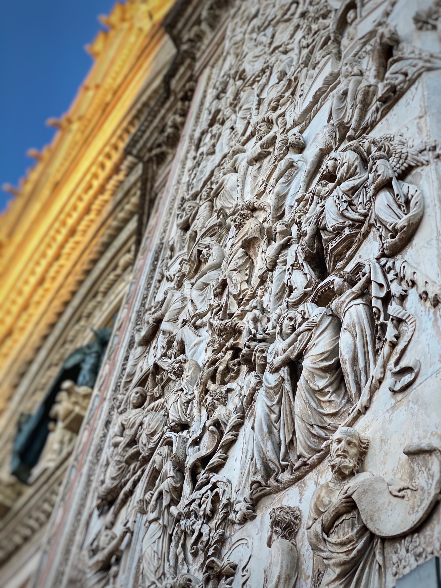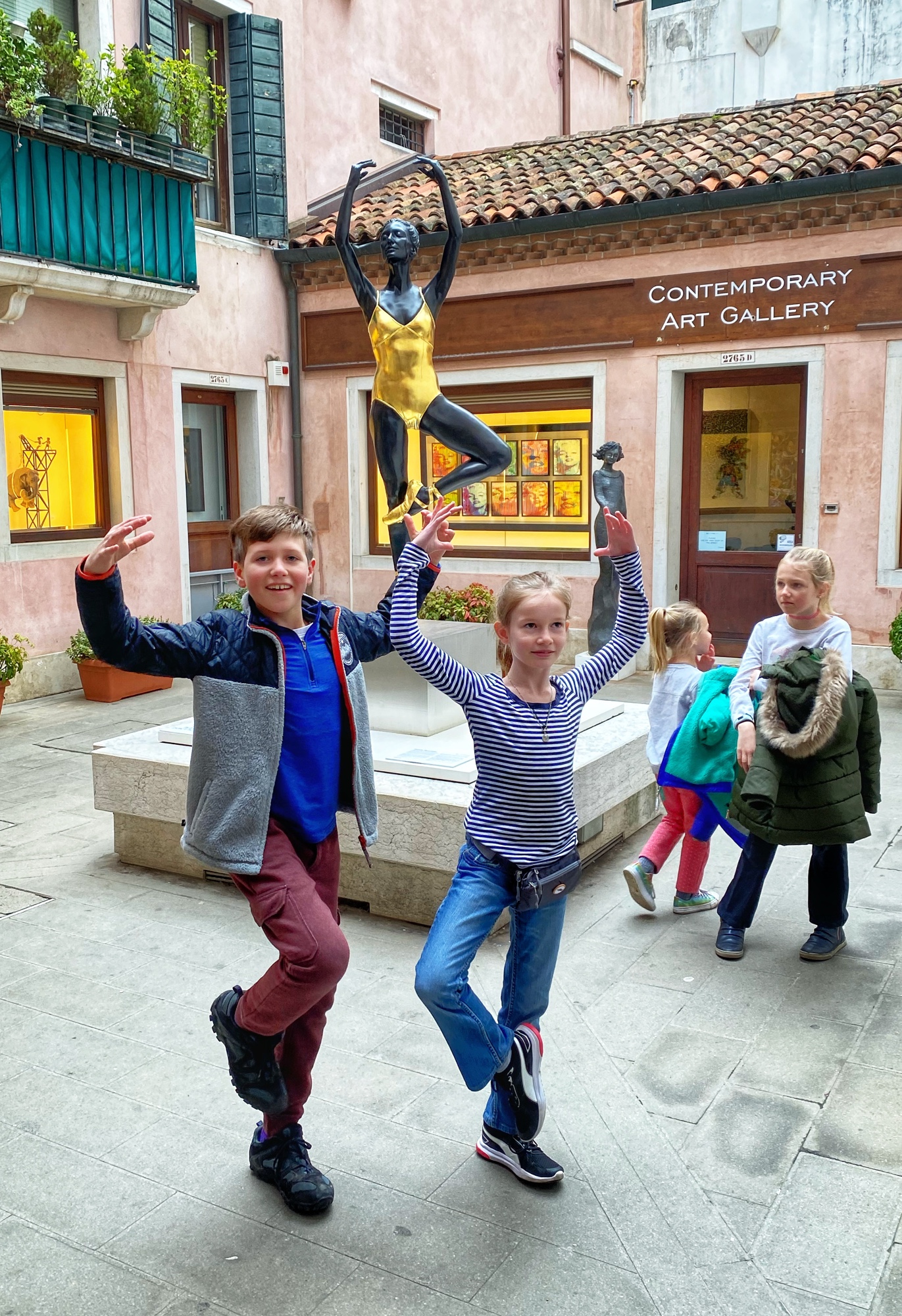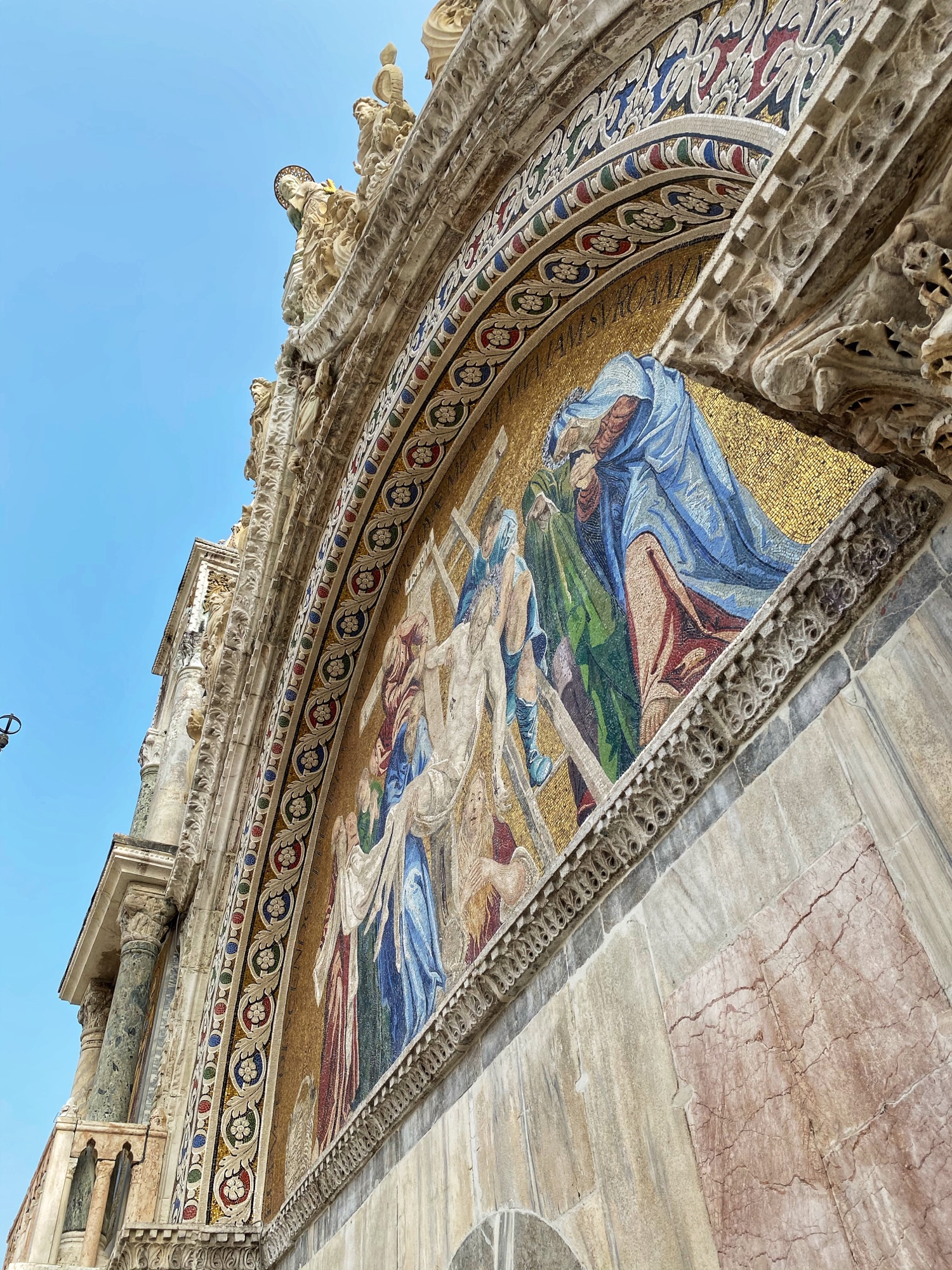 St. Mark’s Basilica in St. Mark’s Square was my niece’s top “must-see” spot on the entire trip. She couldn’t wait to see THE famous golden horses inside the church (technically no photography allowed) and I was excited to go inside the church as last time it was recovering from flooding and they weren’t allowing people inside. Entrance to the Basilica is free, and we jumped in the fairly short line to tour through the musty but grand interior. Up a steep set of stairs is the museum where the infamous four original horses are housed. To our surprise they didn’t look much different from Battaglia’s replica horses on the exterior of the church.