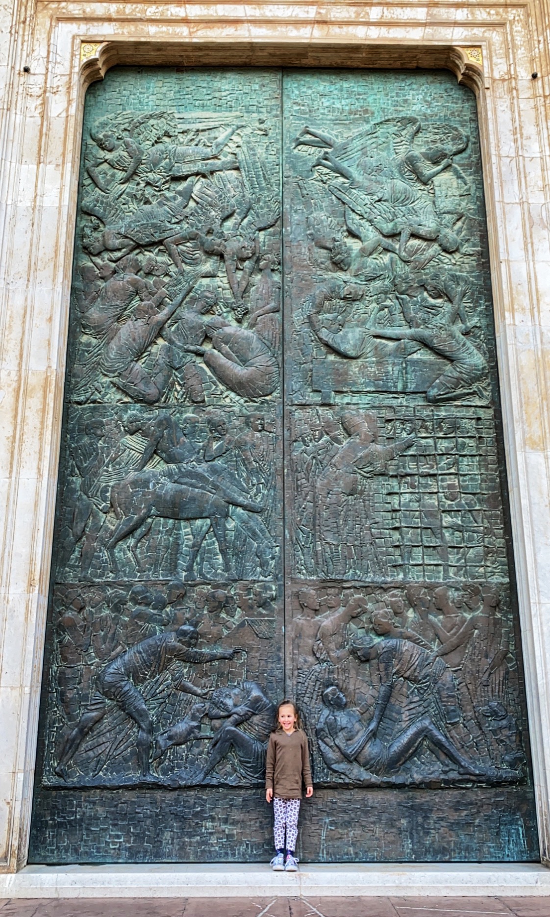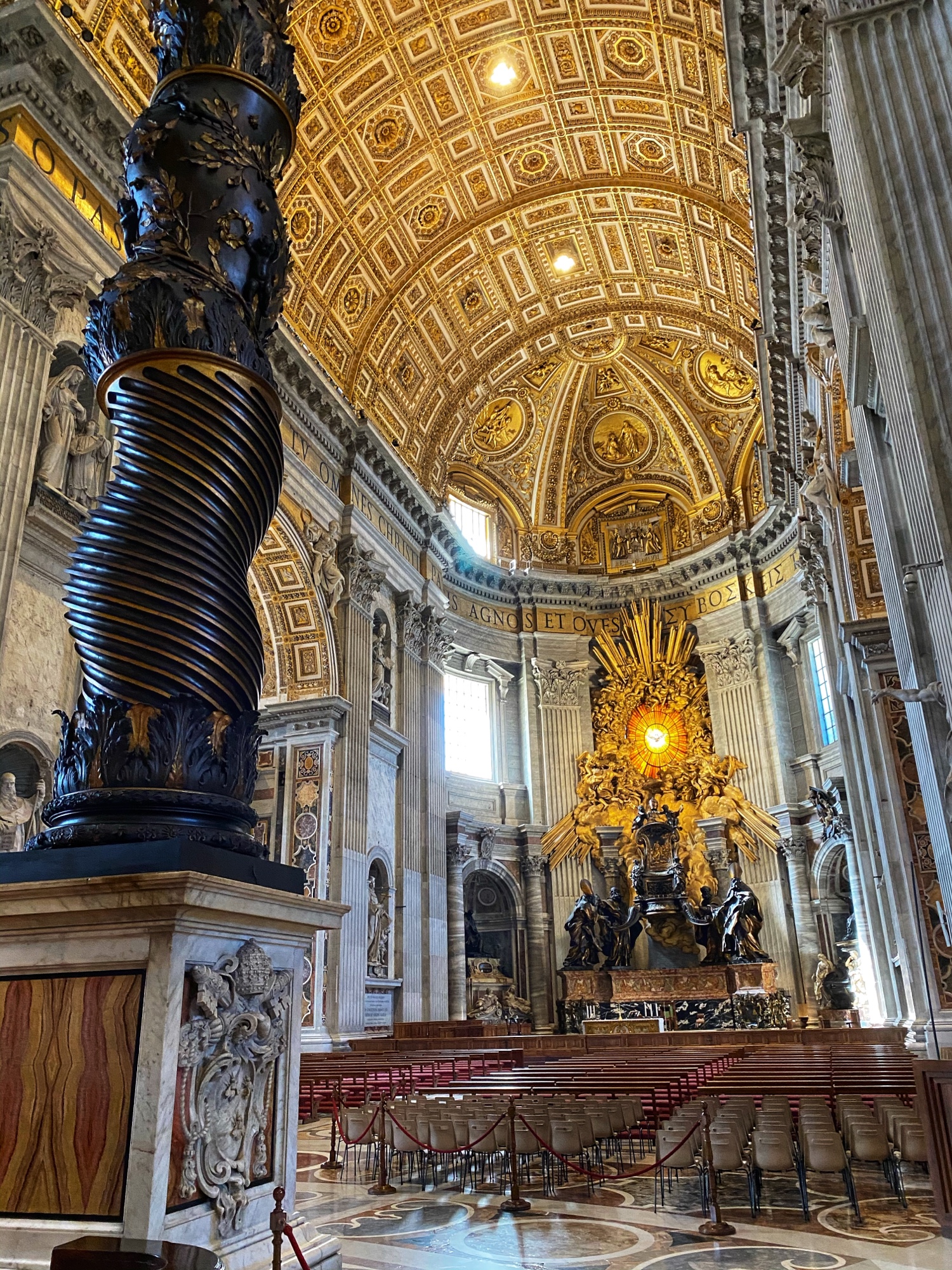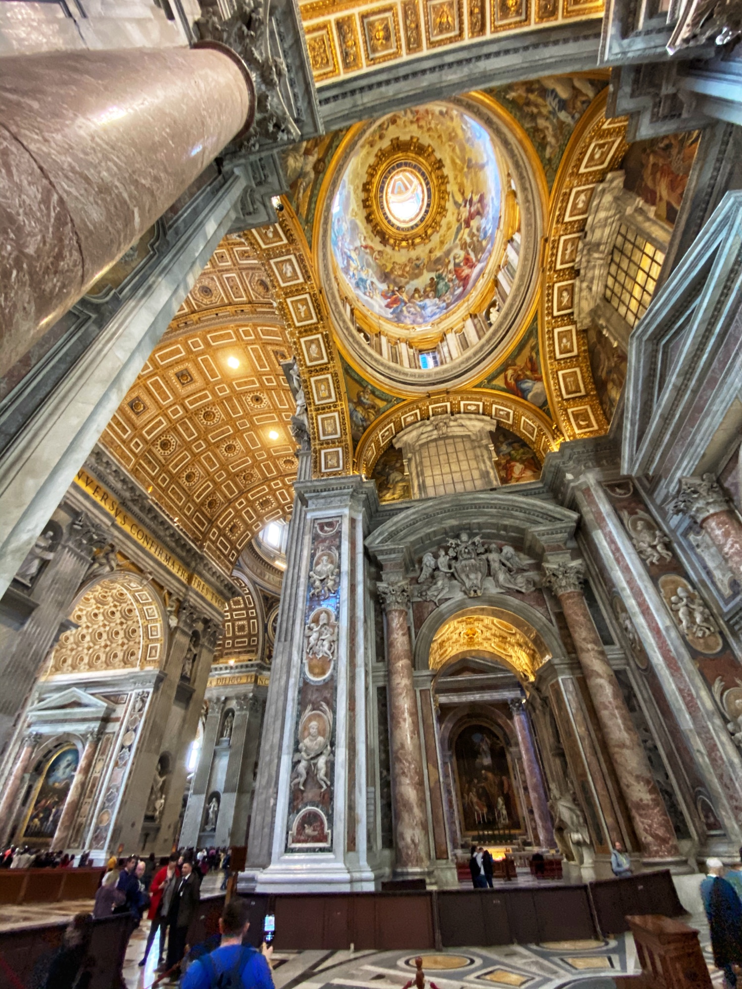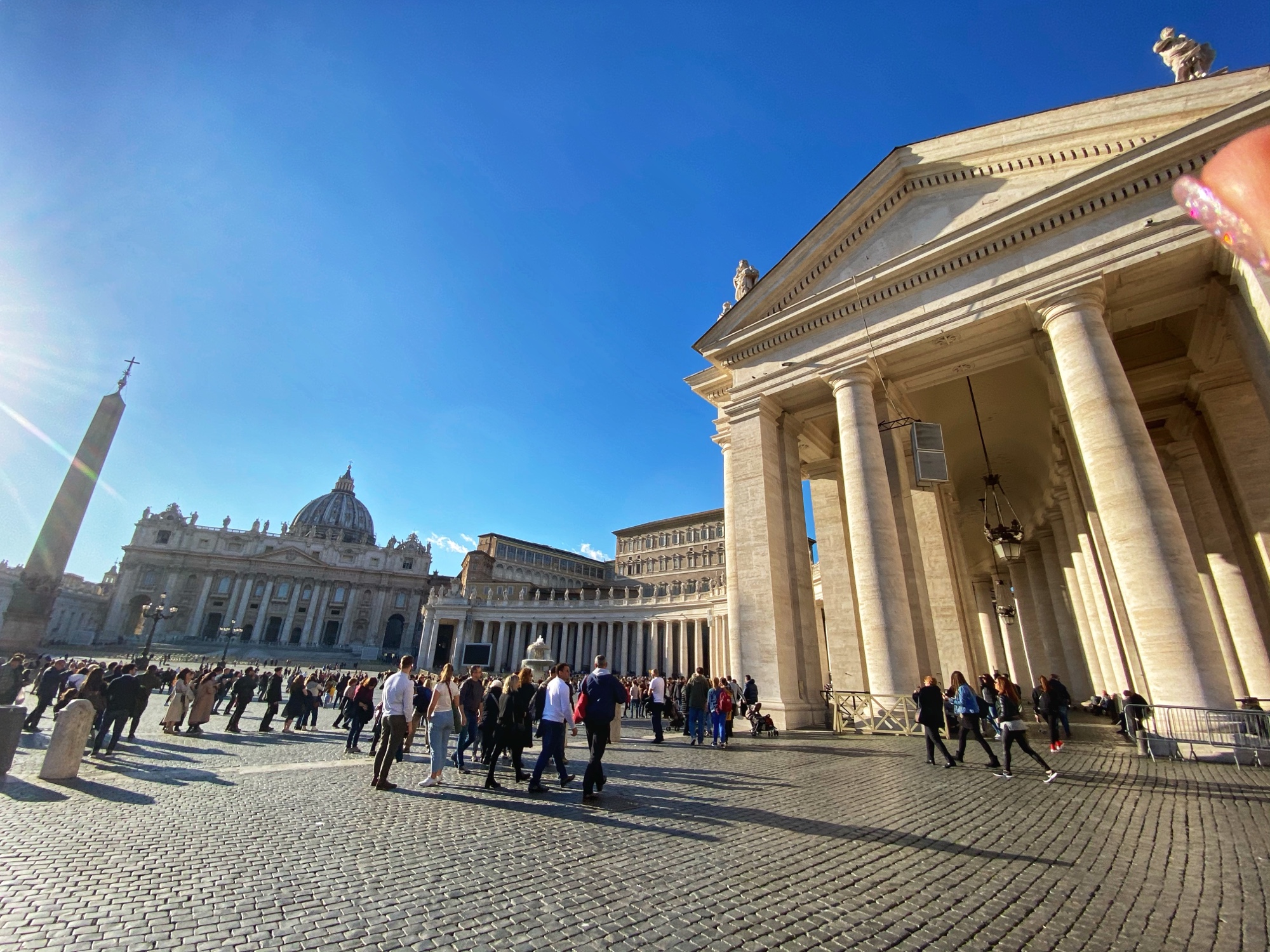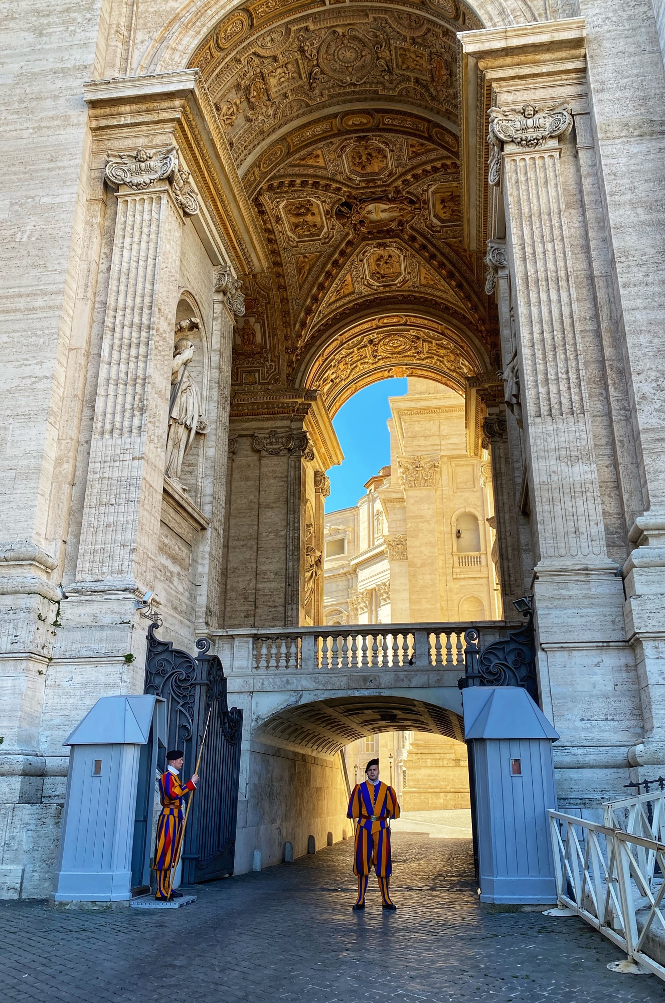 After being awed by the Sistine Chapel we were led out to a lovely view of St. Peter’s Square. From there we said goodbye to our tour guide as she let us explore St. Peter’s Basilica on our own. The square seemed smaller than what I had pictured, watching it fill with people over the years on TV, but this day was fairly quiet. We took in the expanse of it all with the sun on our faces and a little snack in our hands. In a hilarious twist of fate, middle one’s granola bar was stolen by a pesky pigeon. We learned all about minding the birds while in Italy!