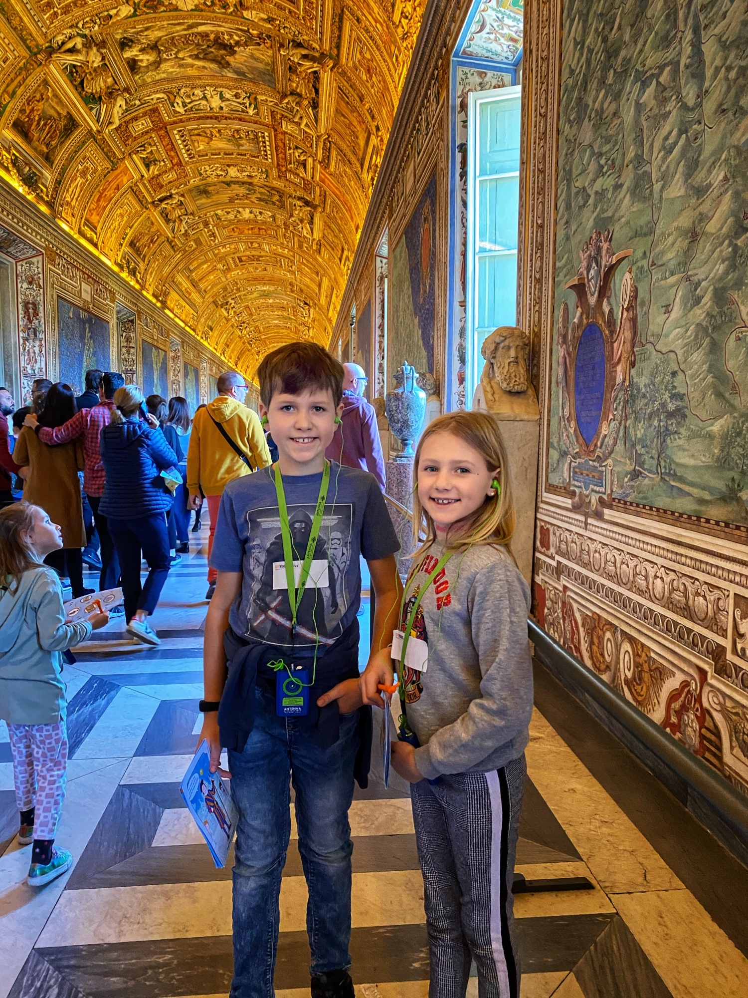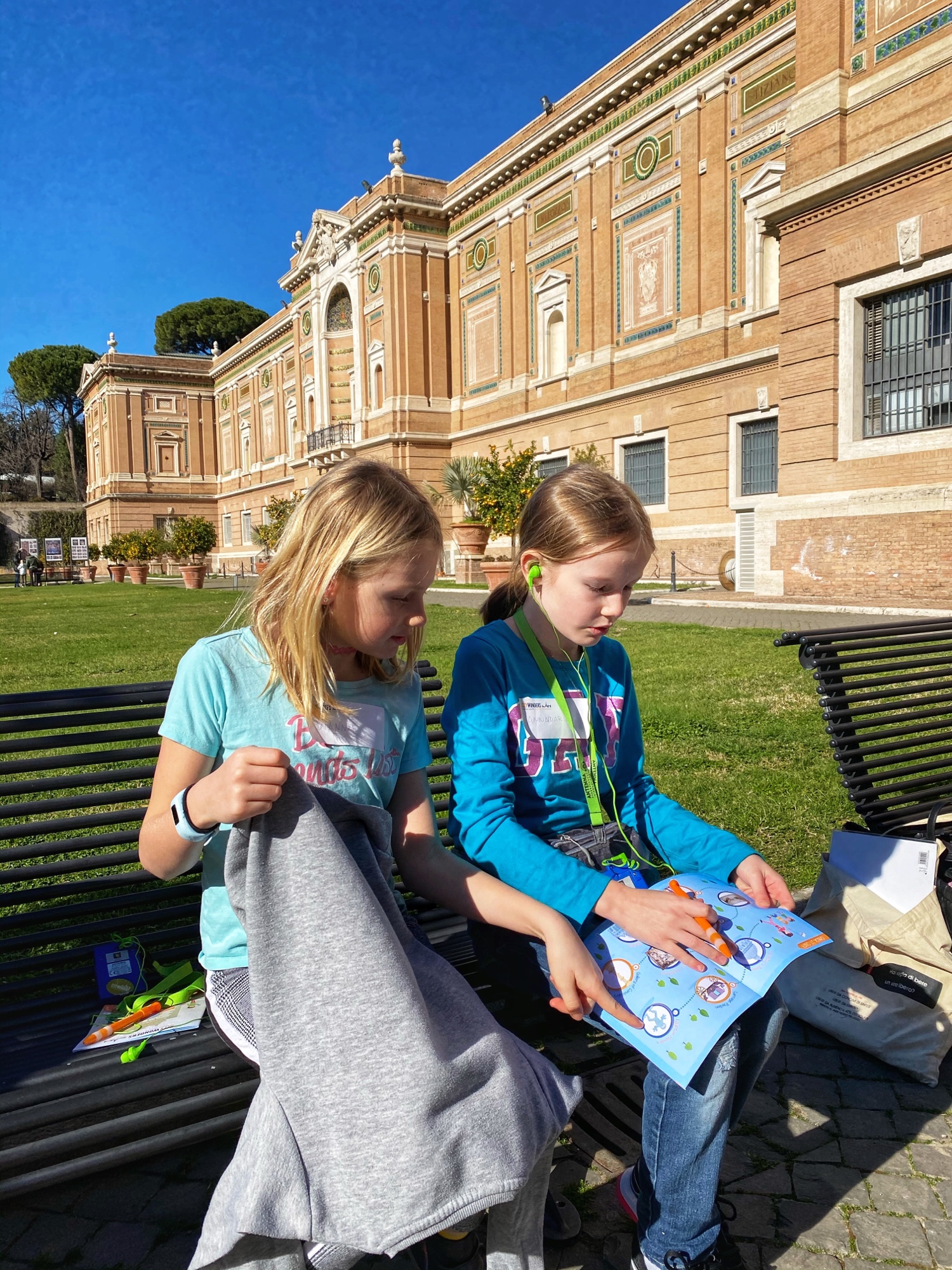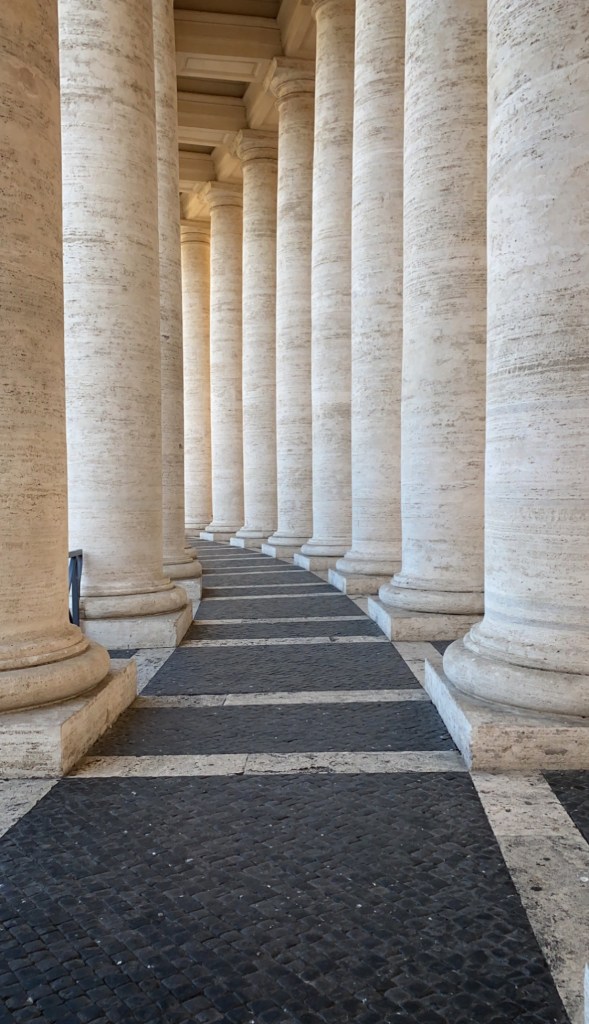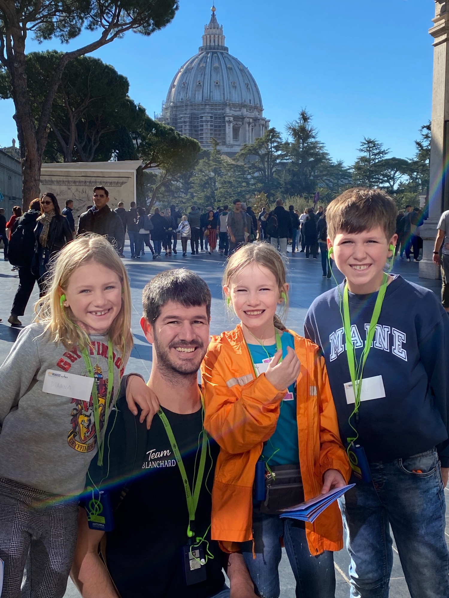 When we arrived, the first order of business was picking up a new pair of sneakers for Annamarie. This worked out perfectly as we found a shop right across the street from the train station and she is a quick shopper! The next mission was finding lockers to stow our luggage for the day until we could check into our apartment later. At some point middle kiddo realized the back of an earrings was lost, so we had to snag a temporary pair of earrings for her too, which was right on the way to the lockers. The cheap material ended up causing her ears to swell, so it turned into a good lesson. My niece found a pair of magnetic earrings she was thrilled about too, and even though only one earring made it back home to Maine with her, it was still a special souvenir! The locker plan was a good one – it allowed us to move about the Vatican without added baggage and we made it to our tour meeting spot with time to spare.