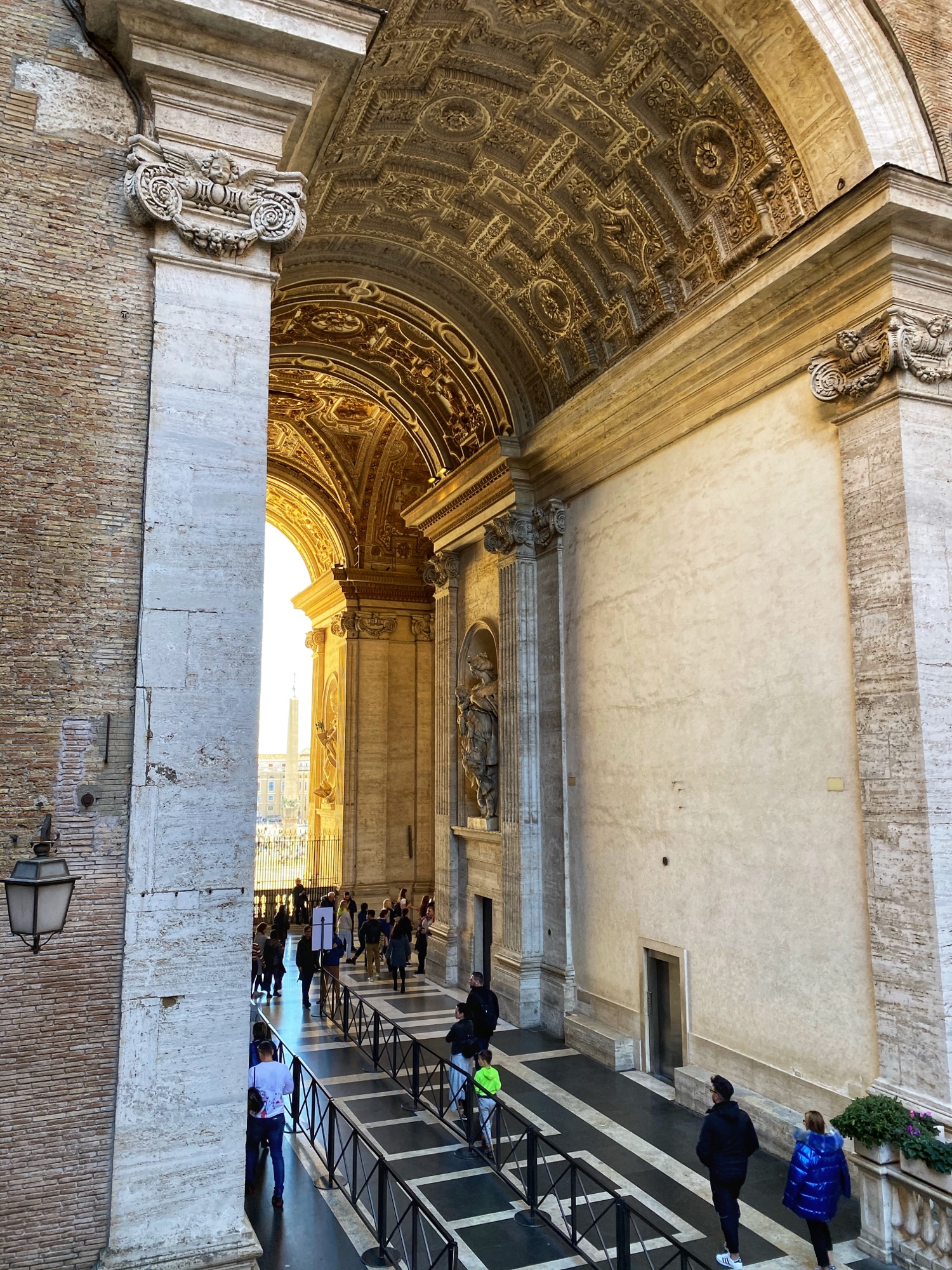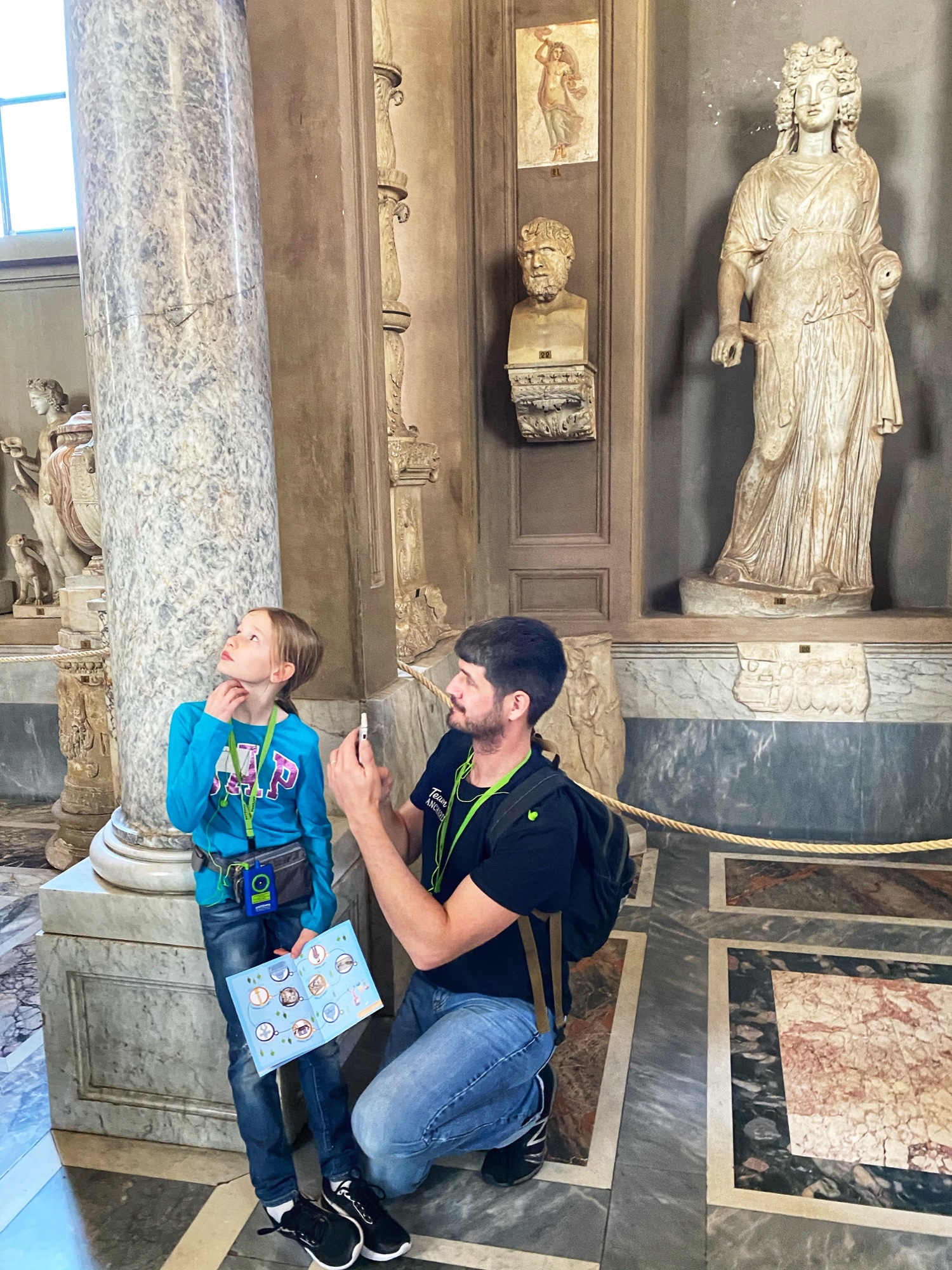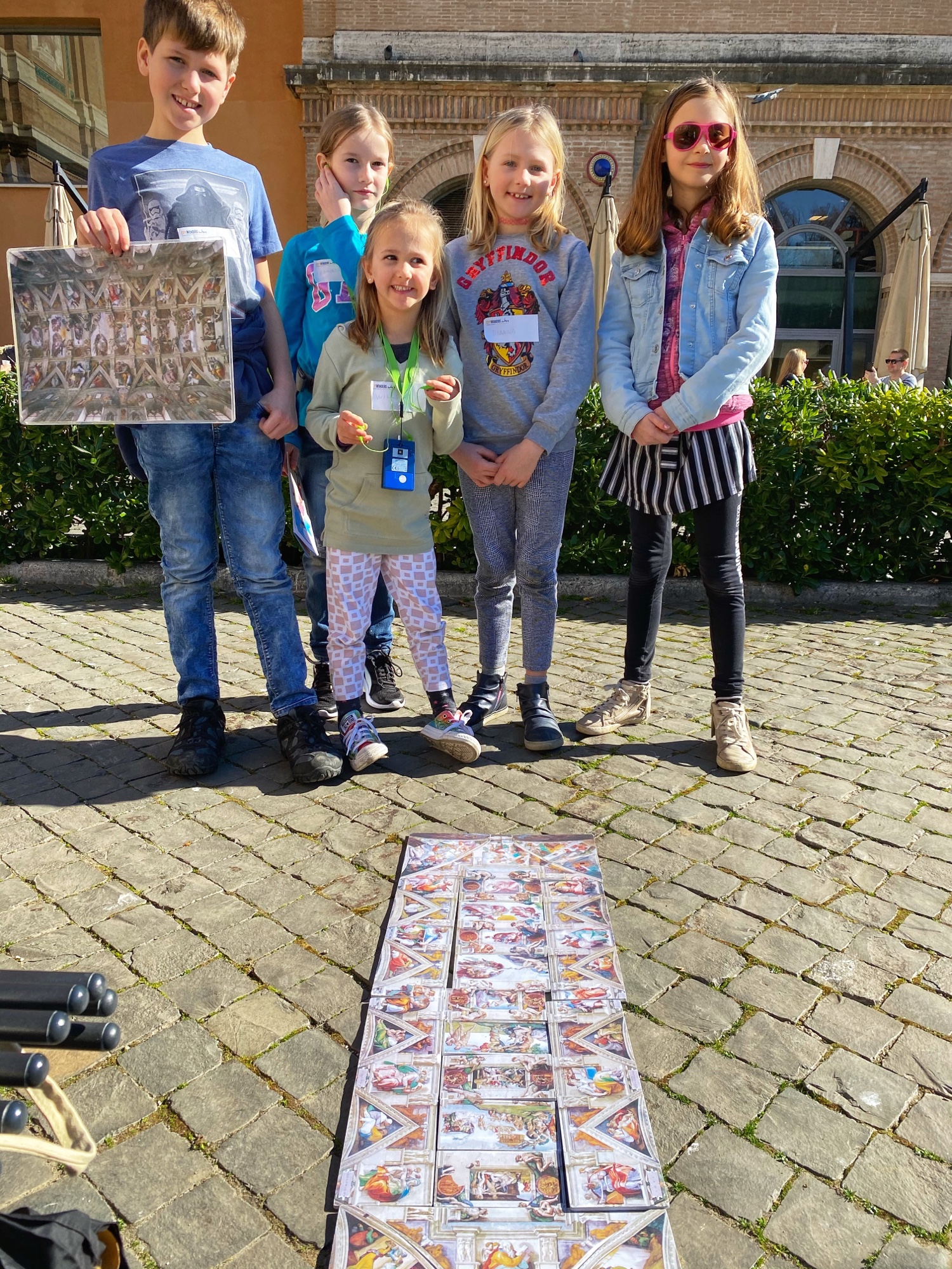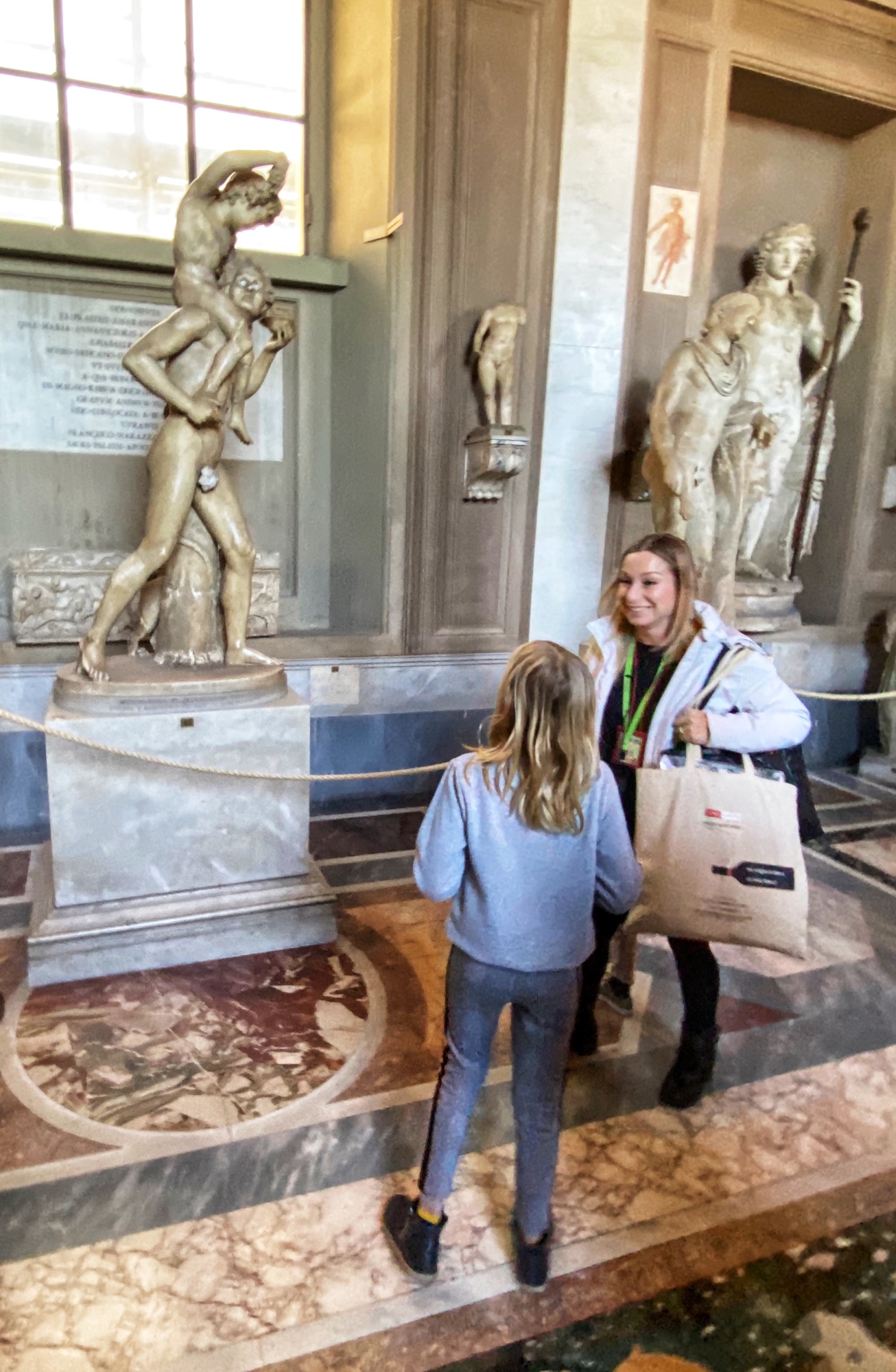 When we arrived, the first order of business was picking up a new pair of sneakers for Annamarie. This worked out perfectly as we found a shop right across the street from the train station and she is a quick shopper! The next mission was finding lockers to stow our luggage for the day until we could check into our apartment later. At some point middle kiddo realized the back of an earrings was lost, so we had to snag a temporary pair of earrings for her too, which was right on the way to the lockers. The cheap material ended up causing her ears to swell, so it turned into a good lesson. My niece found a pair of magnetic earrings she was thrilled about too, and even though only one earring made it back home to Maine with her, it was still a special souvenir! The locker plan was a good one – it allowed us to move about the Vatican without added baggage and we made it to our tour meeting spot with time to spare.