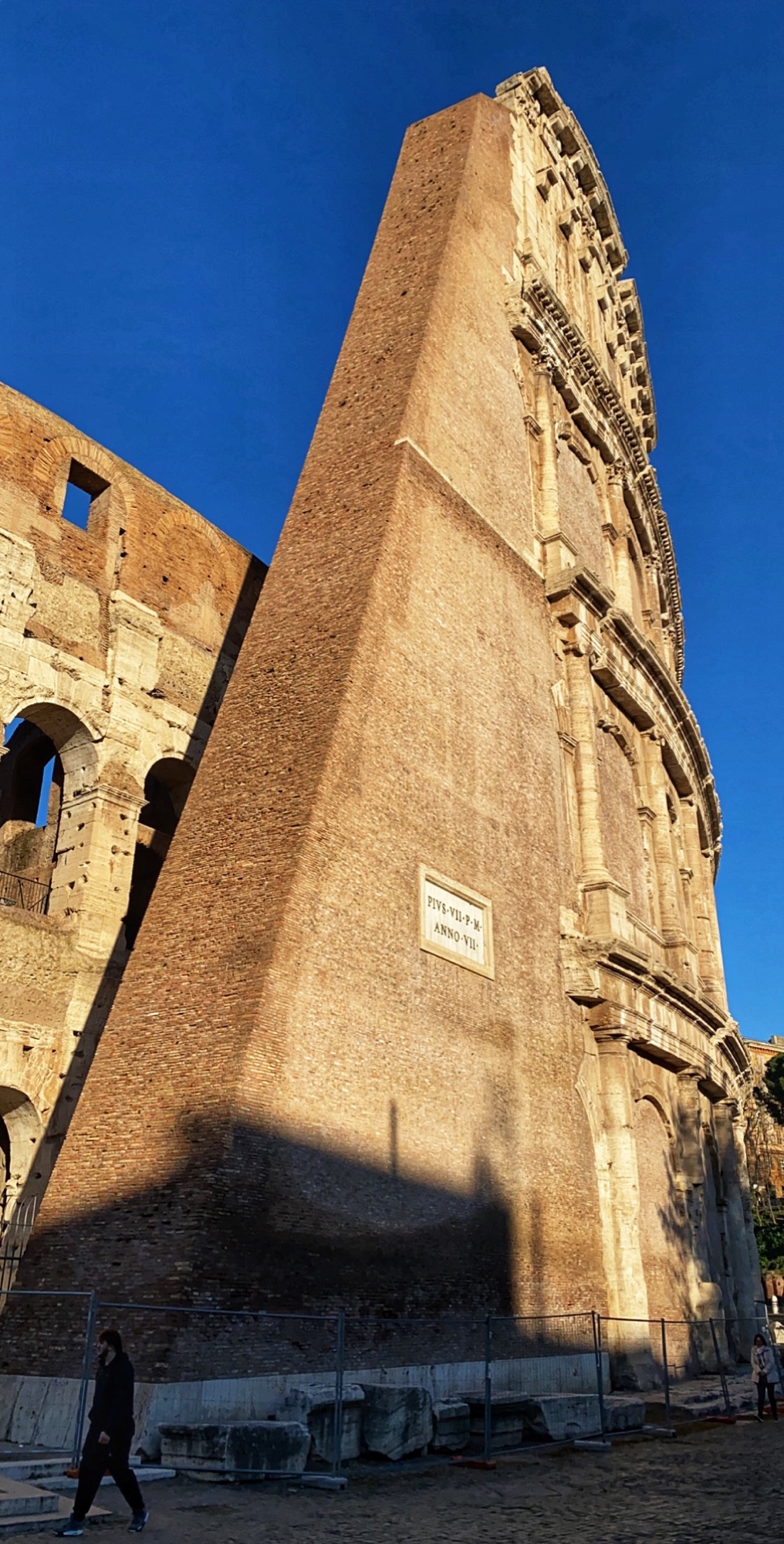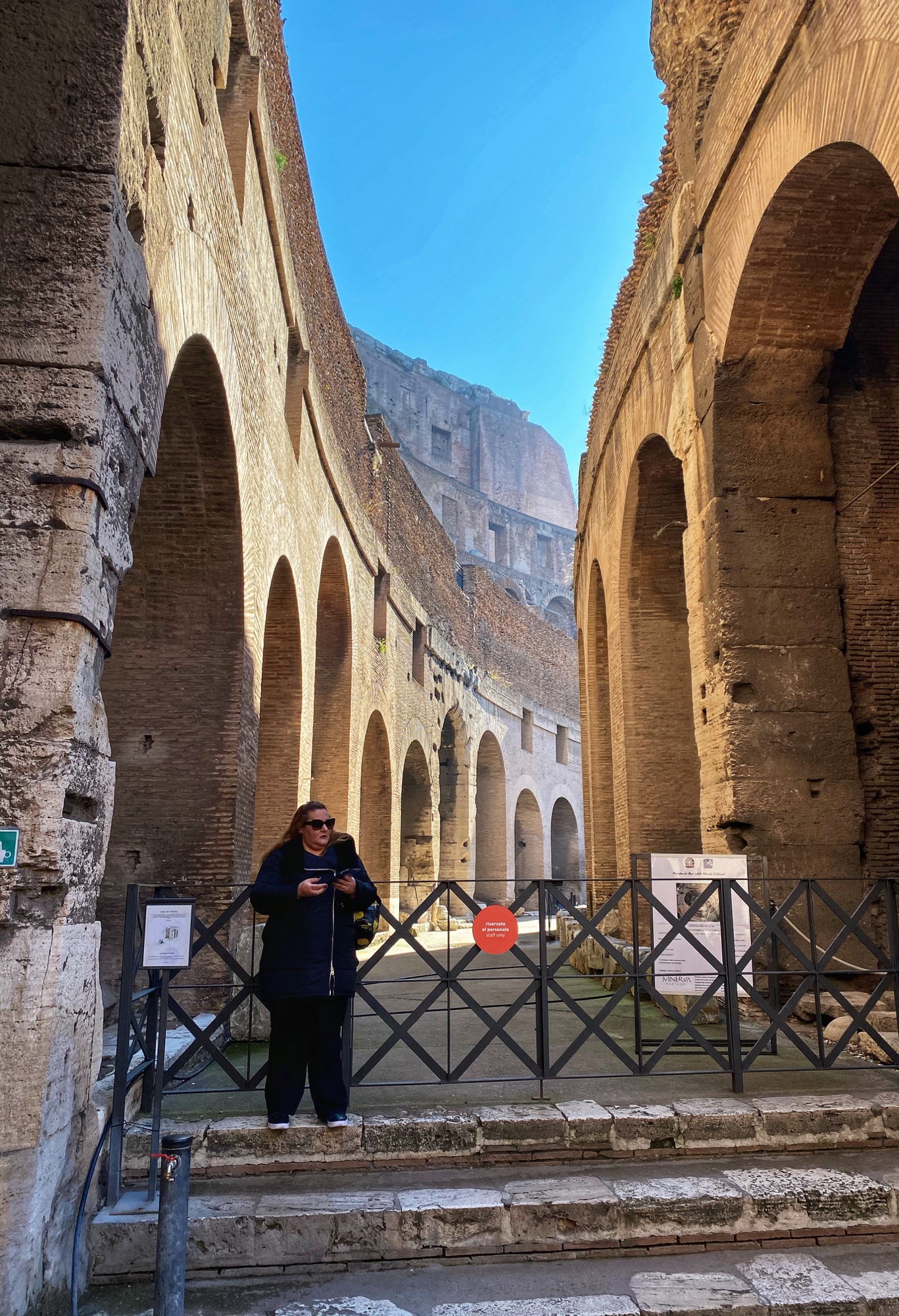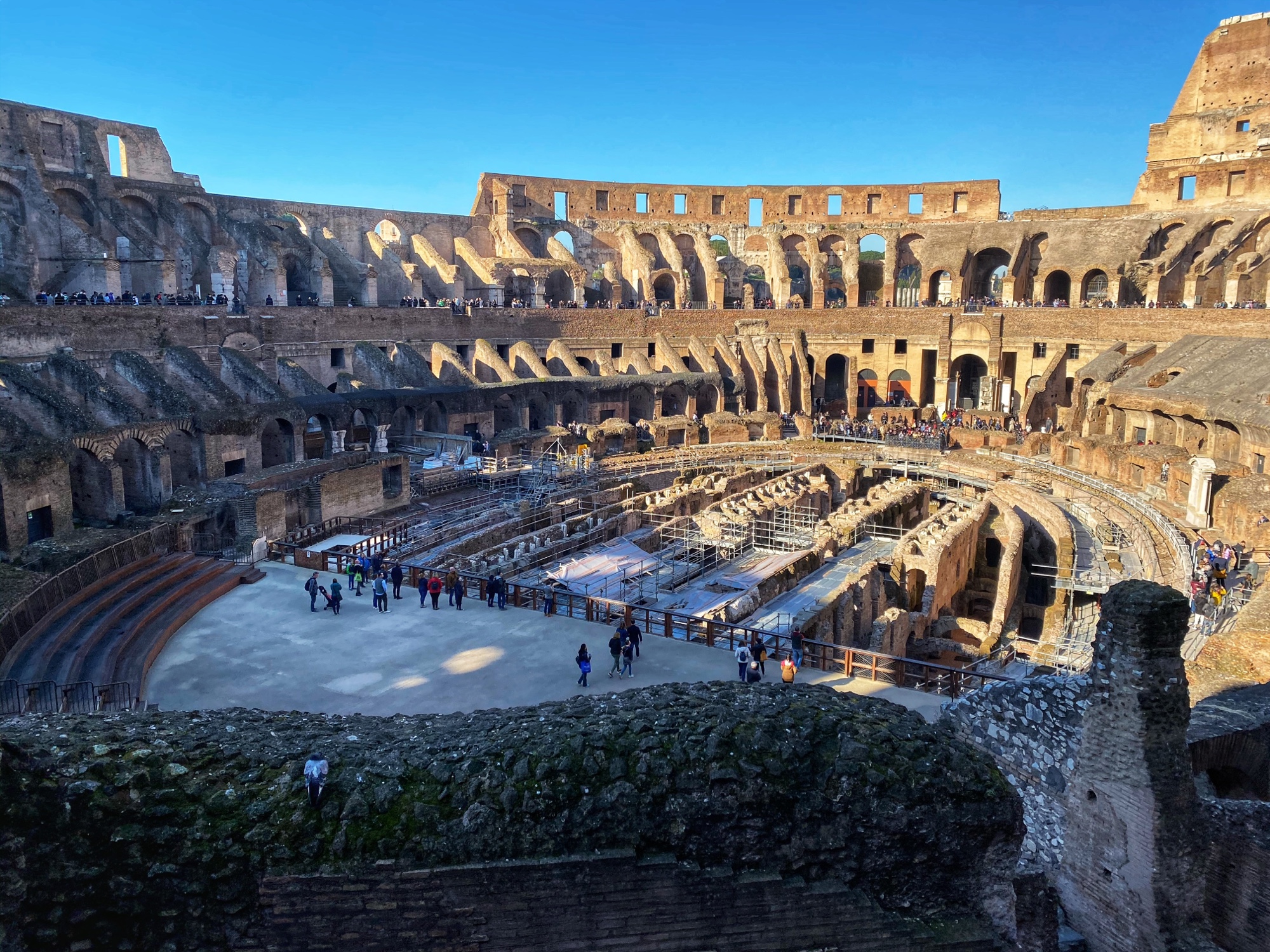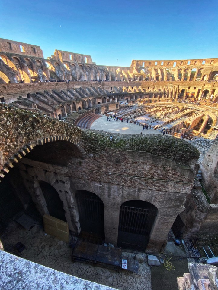 After their morning at the Vatican, Bro and cuz were also able to visit the Colosseum in the afternoon. The portion of the arena floor that has been reconstructed is visible in the photo below.