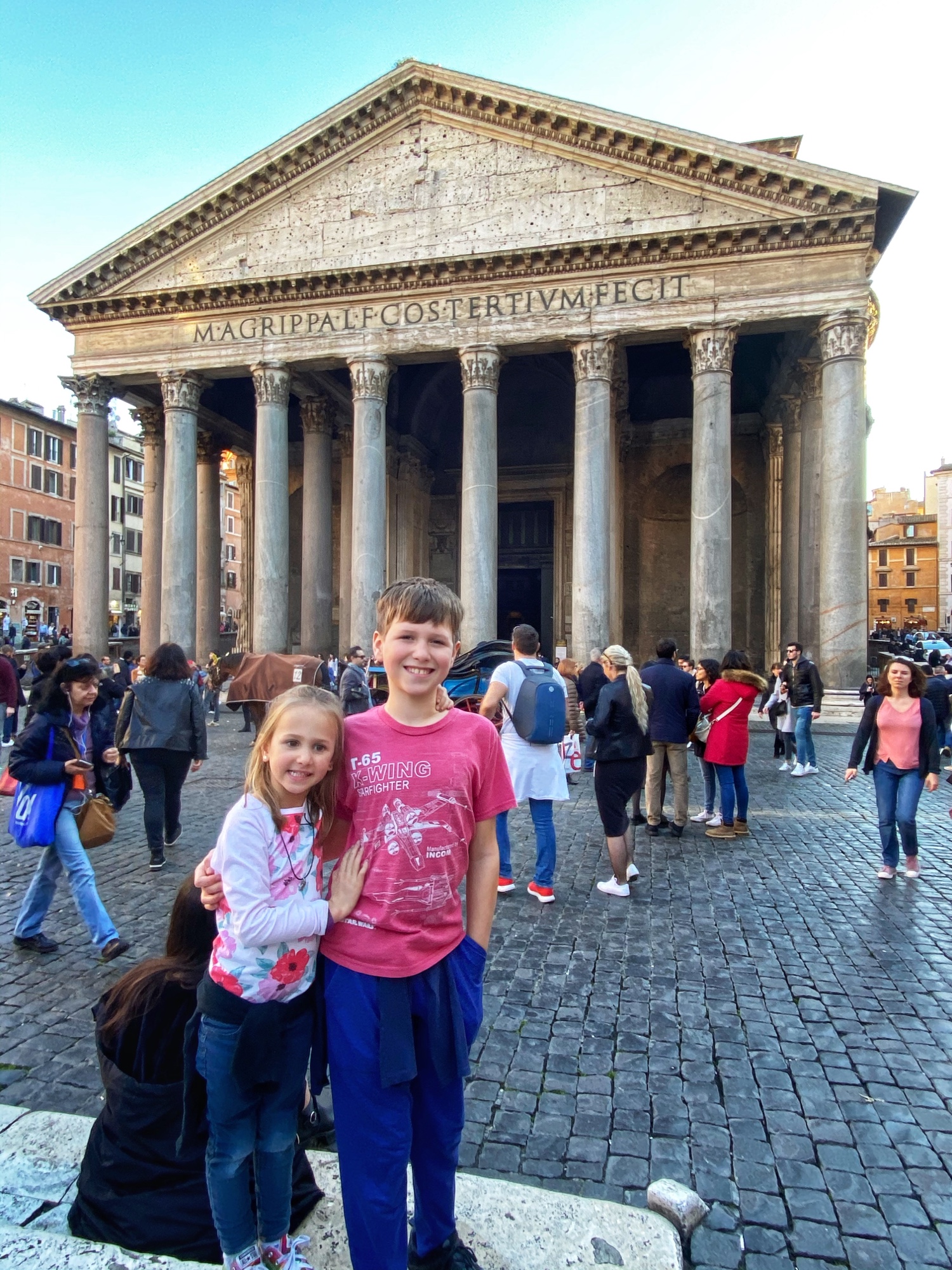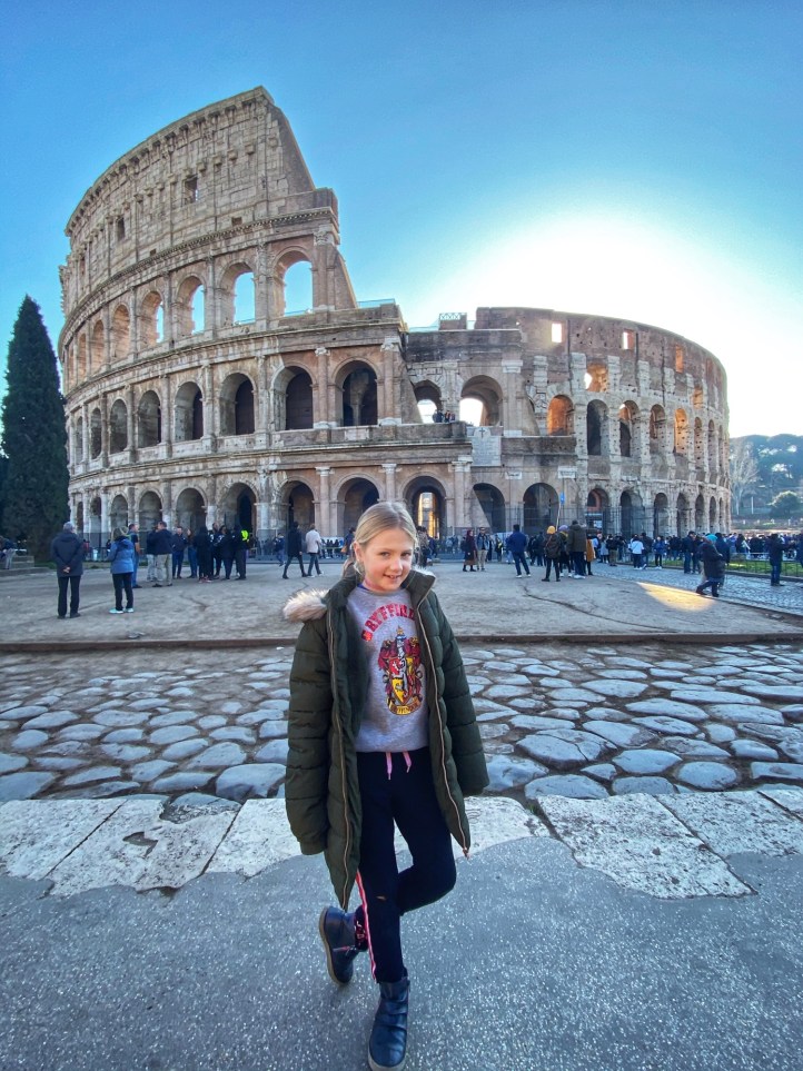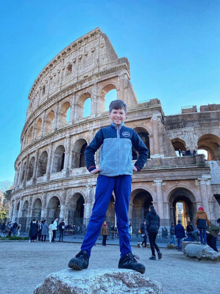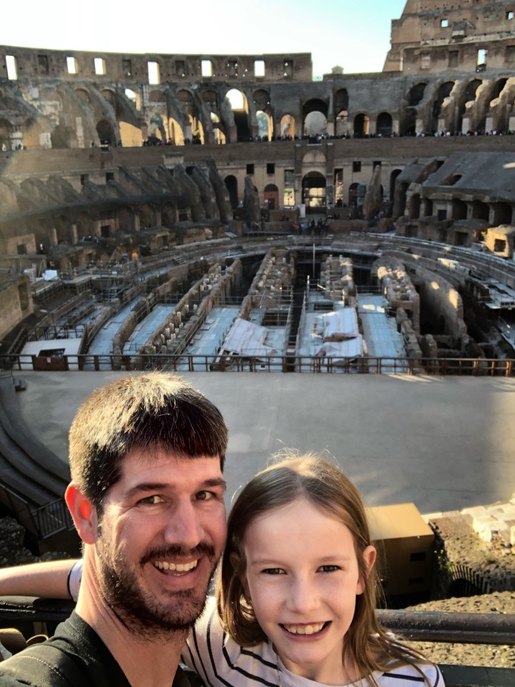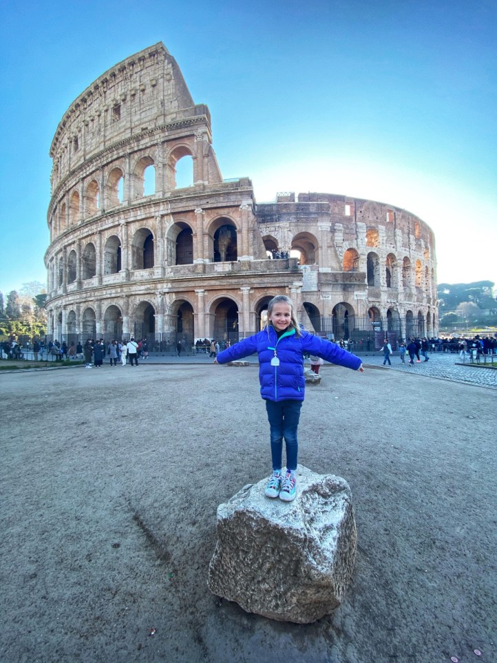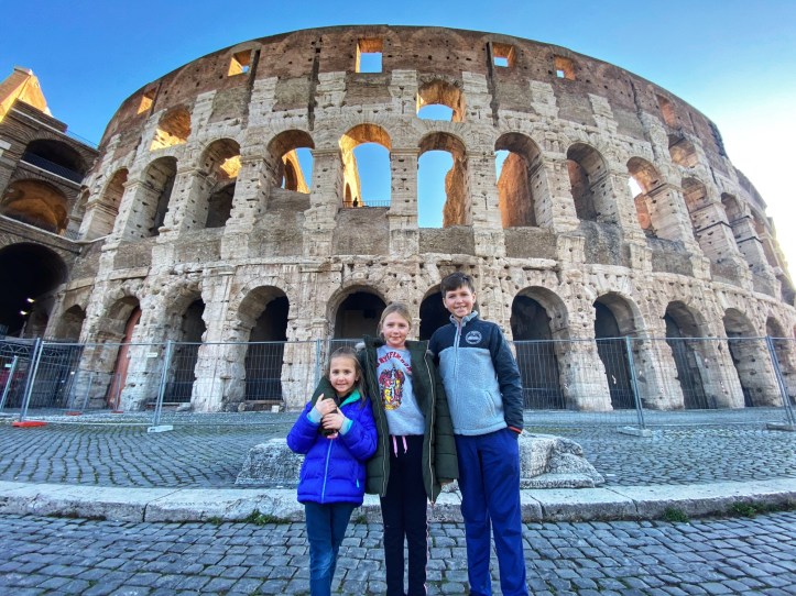 The next day Bro and I split up with our respective spawn and headed out into Rome on a mission to see as much as we could possibly see. I headed to the Colosseum with the kids (self-guided tickets purchased in advance, always) and Bro went back to the Vatican with Annamarie. On our long 9 mile journeys that day, we saw so much amazing history! It can be overwhelming to try to absorb everything, let alone trying to explain things to children. Luckily the book shops have great kid-friendly books to help. Here’s where we went: