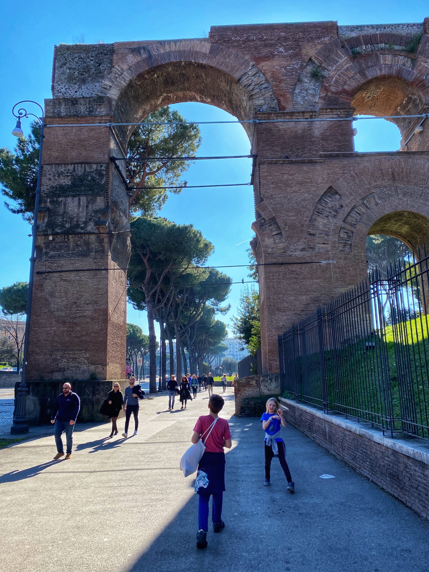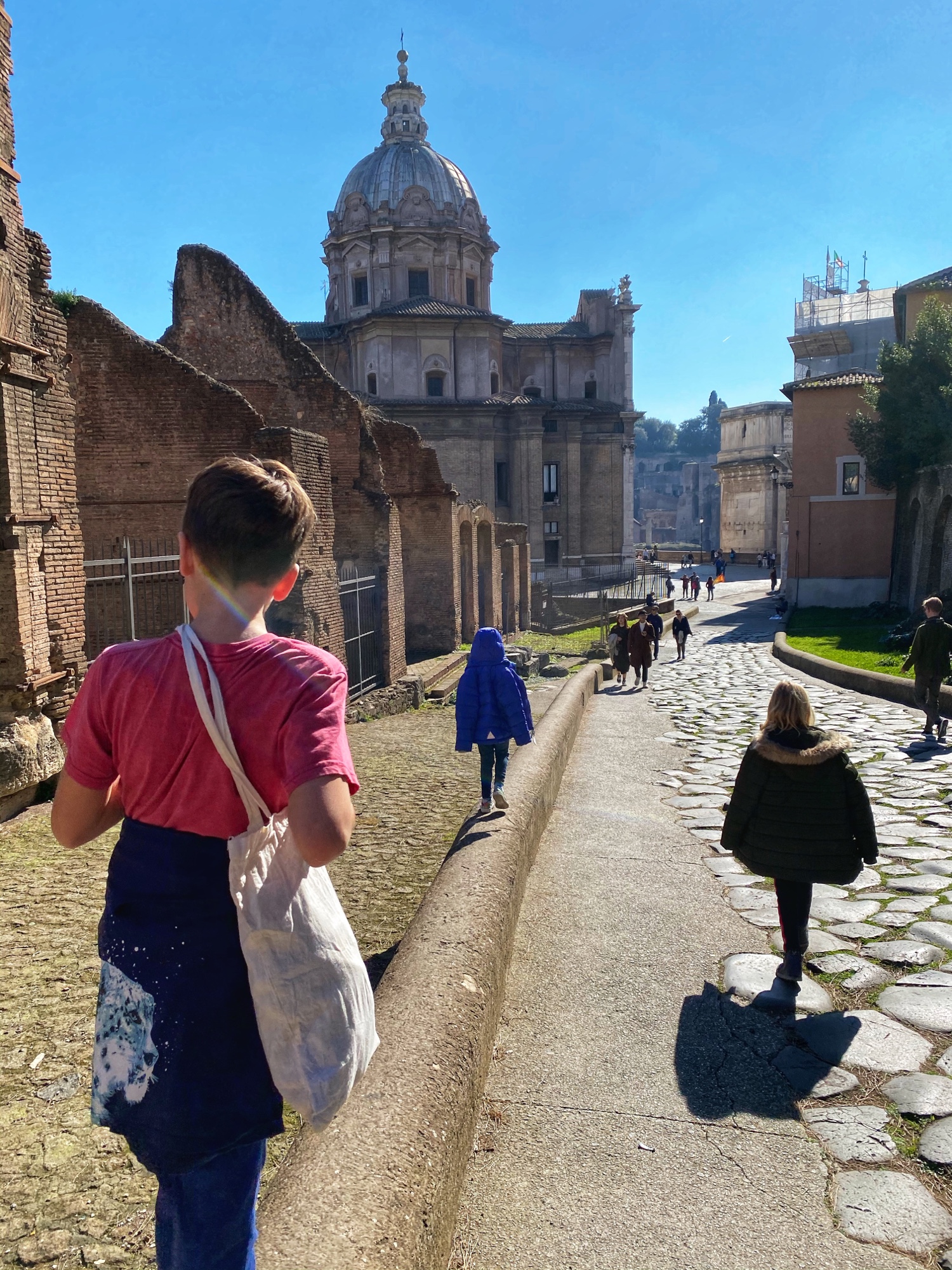 After touring the Colosseum, the kids were already getting hangry. We grabbed another snack of focaccia and (probably the best) gelato at Flor gelato outside of the Colosseum and headed past numerous street artists and performers to the Roman Forum. There seemed to be people from all nationalities and walks of life showing their talents. The kids loved the fire dancer, painters, and musicians.