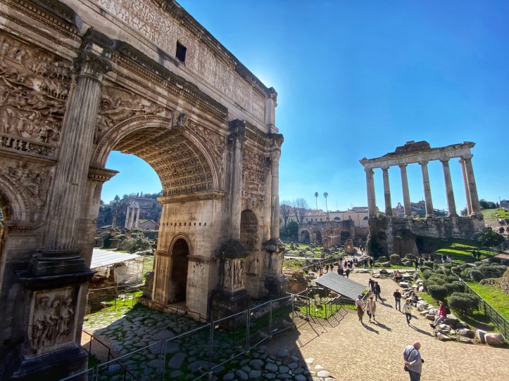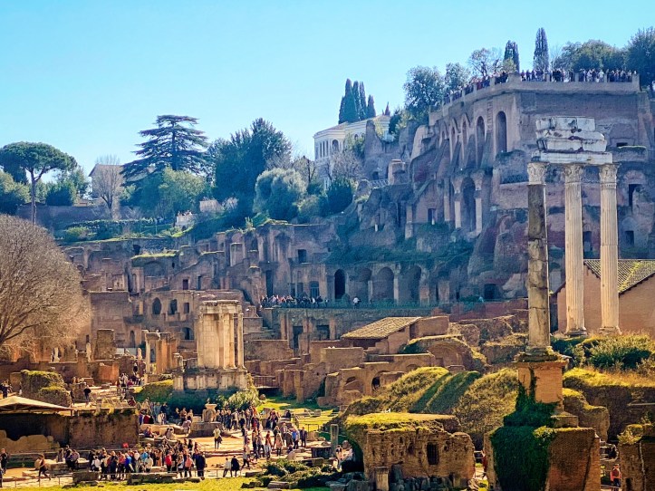 The Roman Forum is an incredible spot amidst the “Seven hills of Rome” boasting some of the most impressive Roman ruins we were able to see in Italy. The forum used to serve as a marketplace for the people of Rome, where they would come to gather and sell their goods. It also served as the parade route for returning armies bringing loot from conquered lands. This area was known as a city center of Government. In Roman times, this area was positively glittery with pristine architecture meant to be a show of power and wealth, and awe Roman citizens. We walked through the paths and gardens and it felt a little bit like being in a graveyard with all of the toppled columns and building ruins surrounding us on all sides. This was, for me, the most impressive place we spent time in Rome. I couldn’t get enough of the images depicting what it “used to” look like and what it was like here in ancient Roman times. It was truly fascinating.