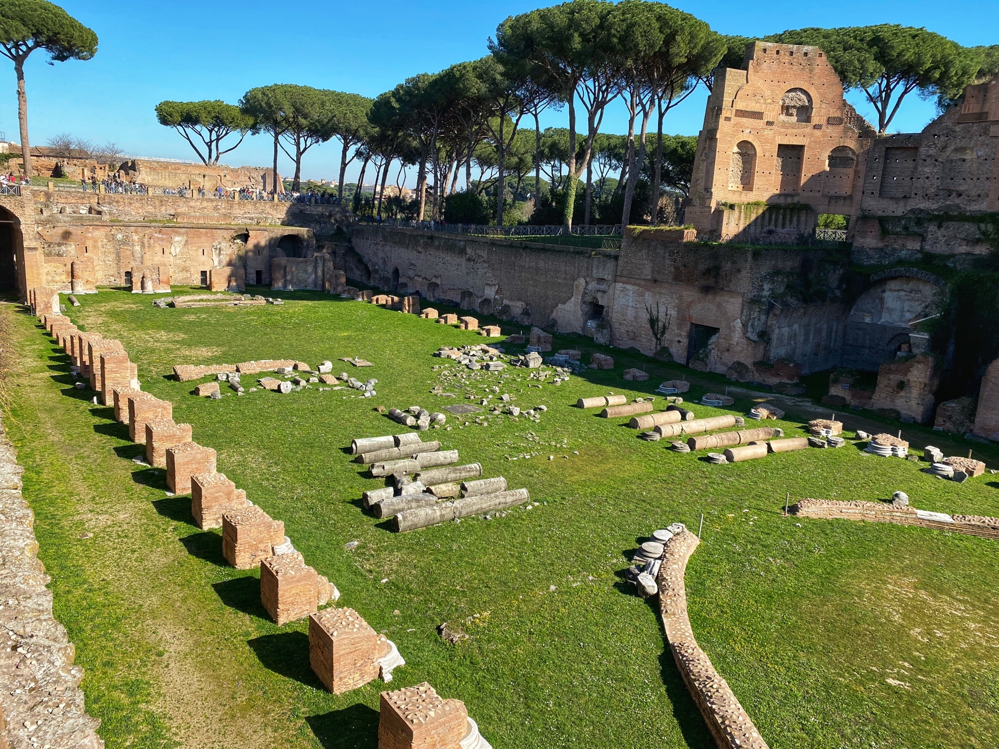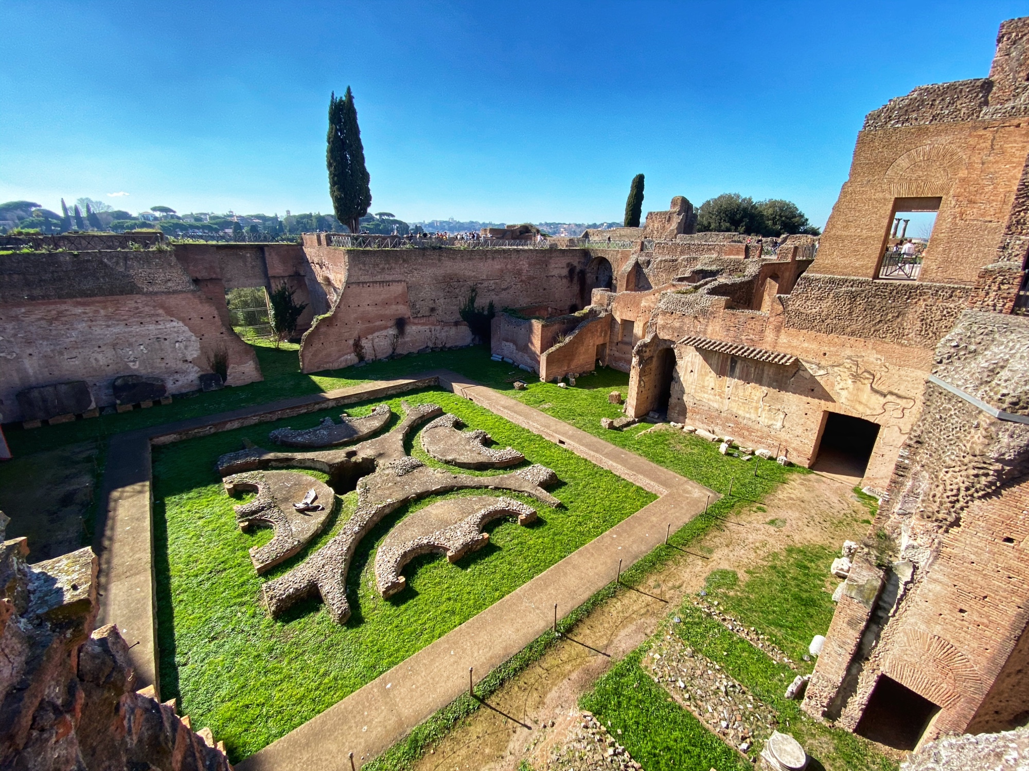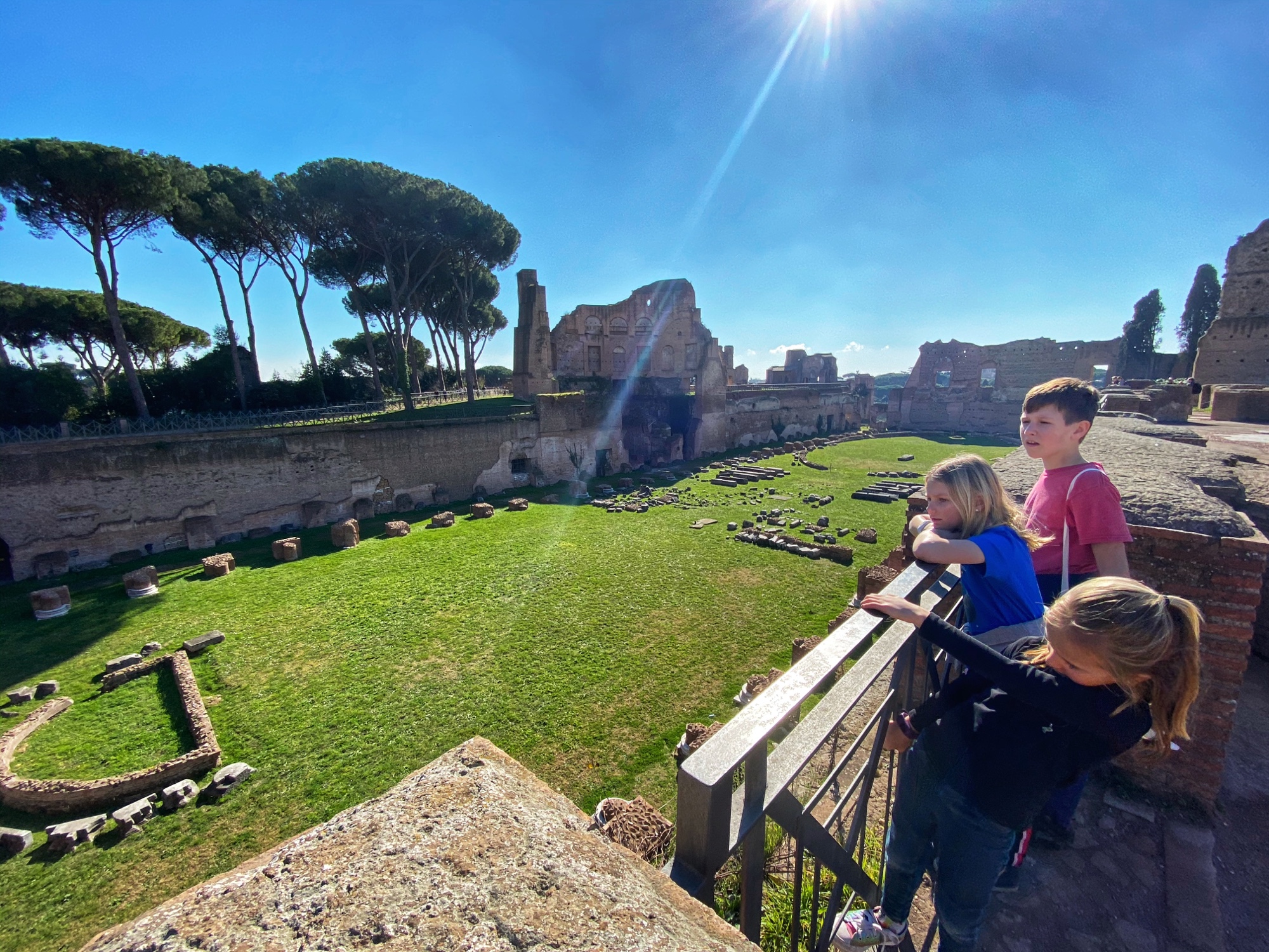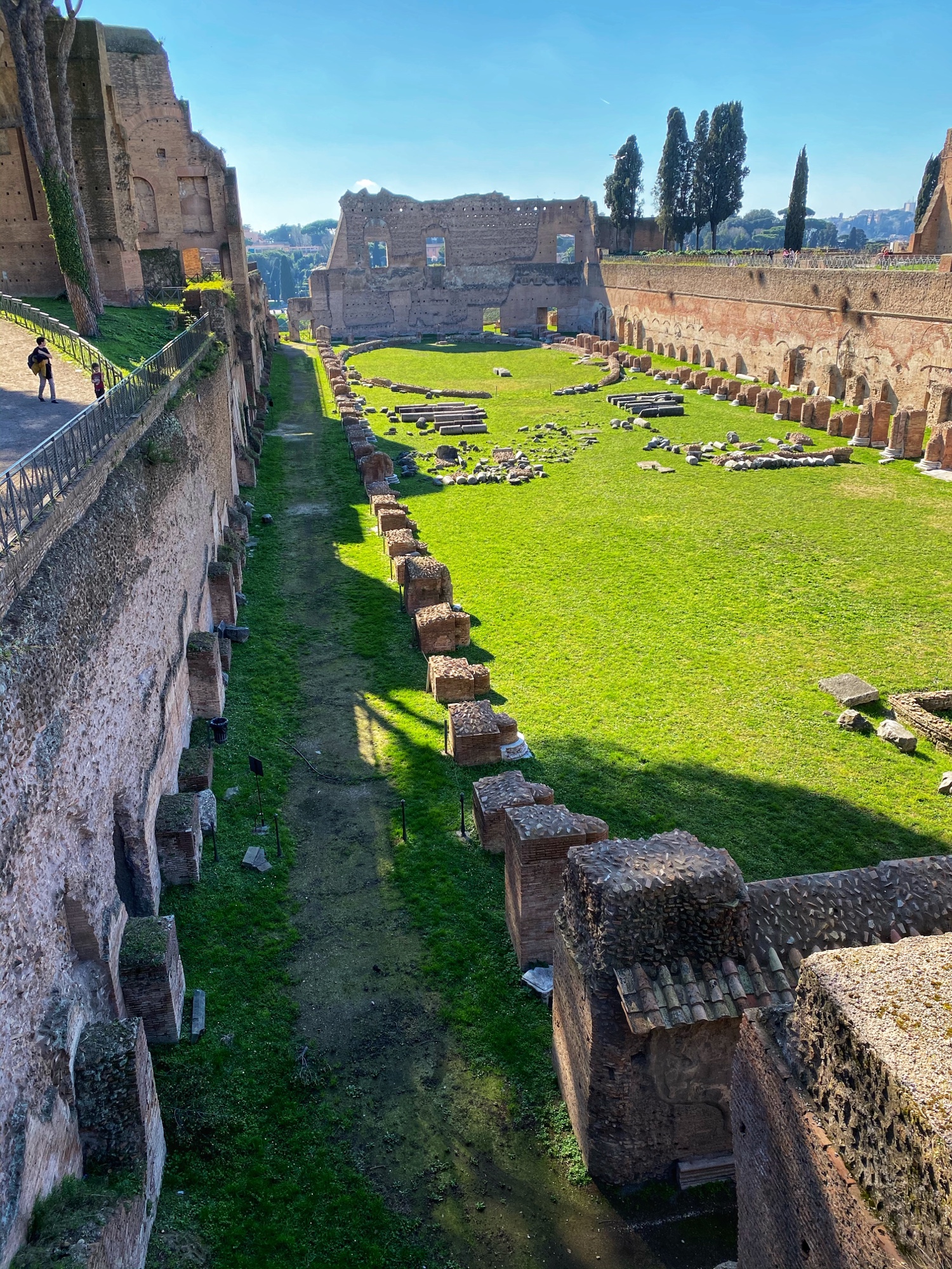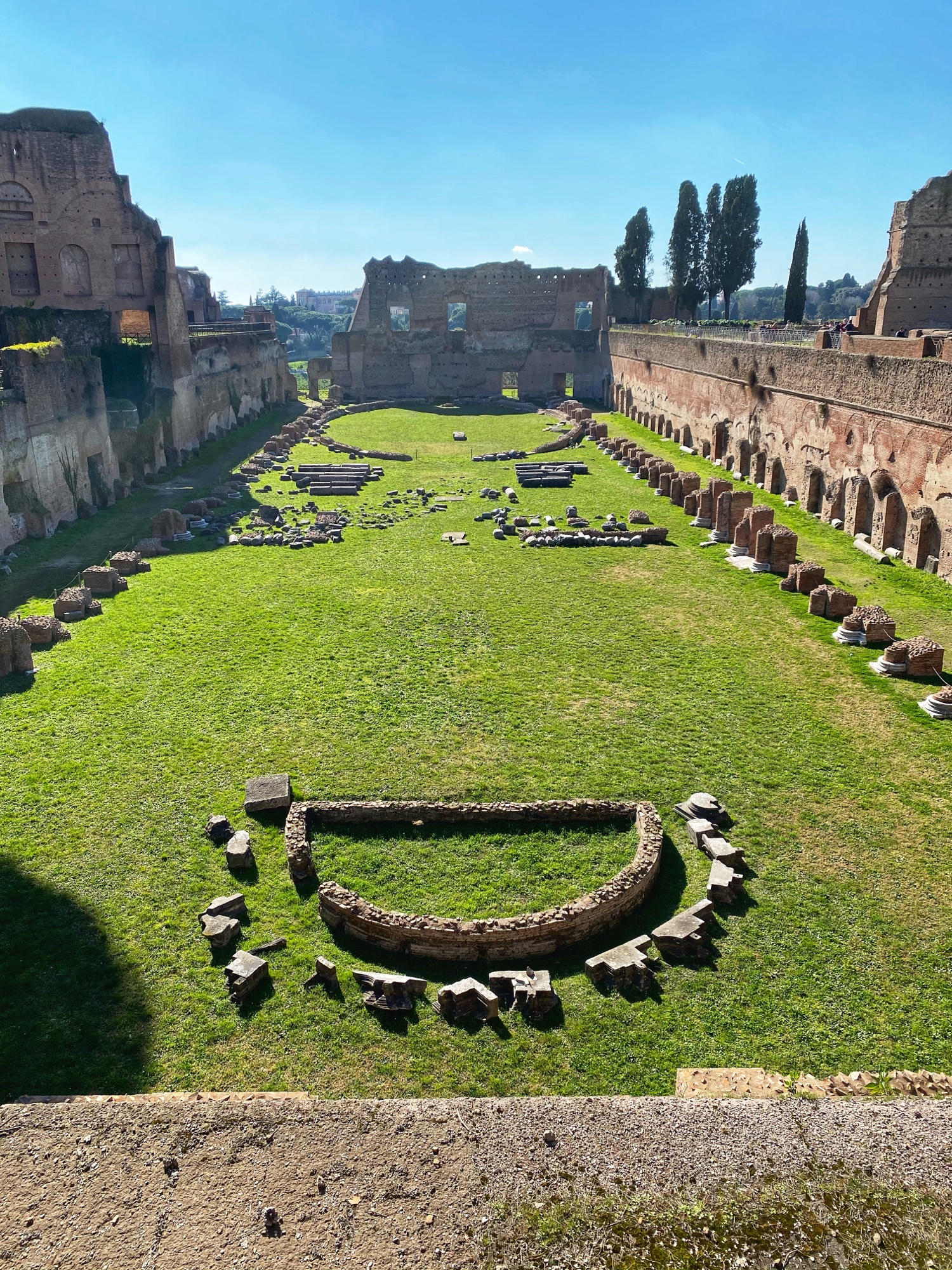 It was so fun to wander up the big stairs of the Dominus Tiberana monument with a view out over the entire forum. From there we made our way through the beautiful gardens of Palatine Hill to the stadium (pictured below). We imagined that this was a place of impressive sporting feats – but what we learned was it was actually a place to exercise horses – more of an opulent sunken garden – in Roman times. We walked from here back to our apartment for a brief rest before venturing out again for another round of sightseeing and Italian food indulgence.