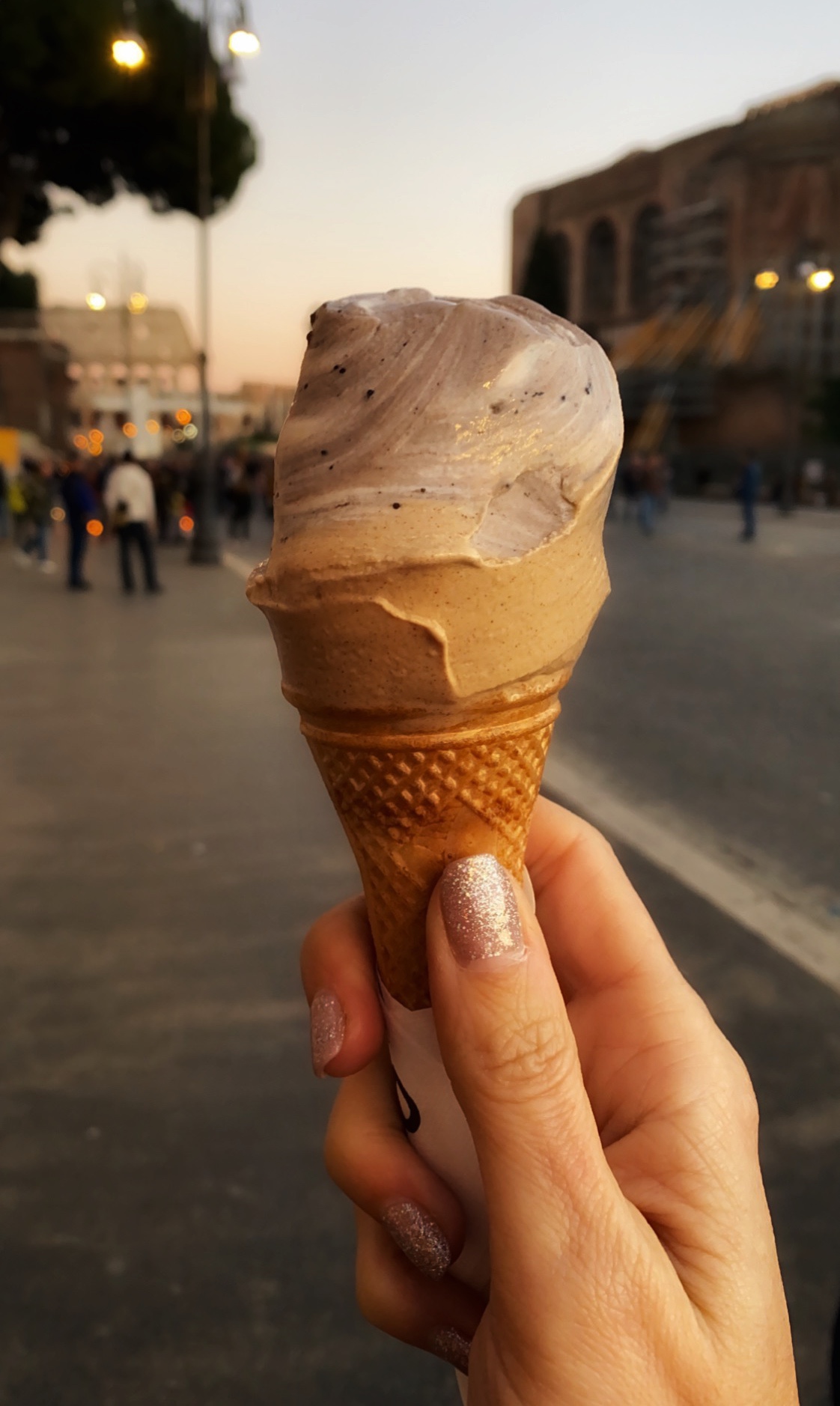 After our mini-tour of the top spots in Orvieto, we had to find a place to feed the hungry monkeys. As Italy is one of the countries where you can’t eat dinner at a proper restaurant before 7 PM, we managed to find a little cafe serving paninis, pizza and spaghetti – and it hit the spot. Of course we had to scoop up some gelato after dinner, even though it had turned quite chilly once the sun went down! Boy it was good! And it cost just about the same as dinner. HA! The glowy streets were beautiful as we walked back to our exclusive parking spot and made our way back down to our apartment Casa di Giulio, about 5 minutes from the city walls. We turned in, preparing for a very full day in Rome!