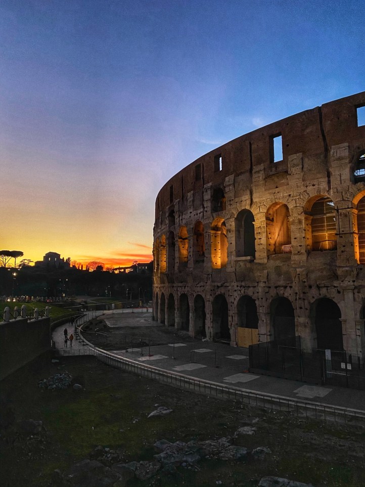 On our way back past the Colosseum, the sun was setting and the views were stunning. We had so much fun this day and couldn’t wait to hear how things went for Bro and cuz. We weren’t able to communicate all day (without wifi for Jon’s phone) so it was great to reconnect in the evening and compare notes. We certainly earned our gelato that day with close to 20 miles of walking between our two groups!