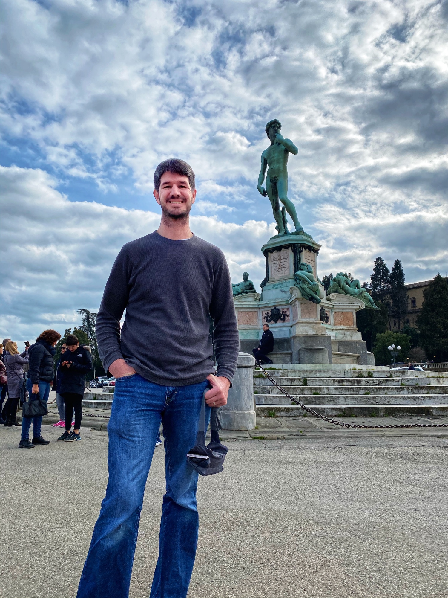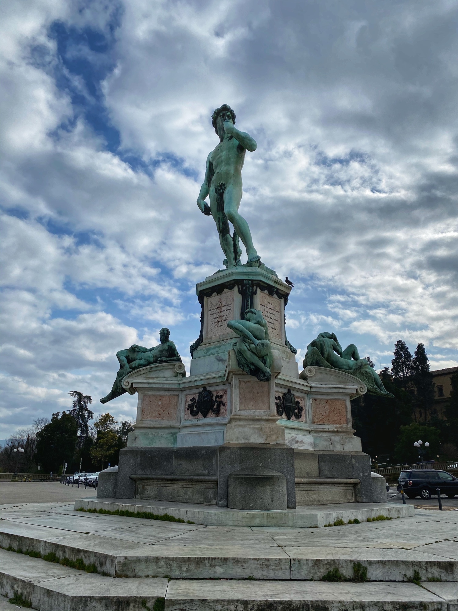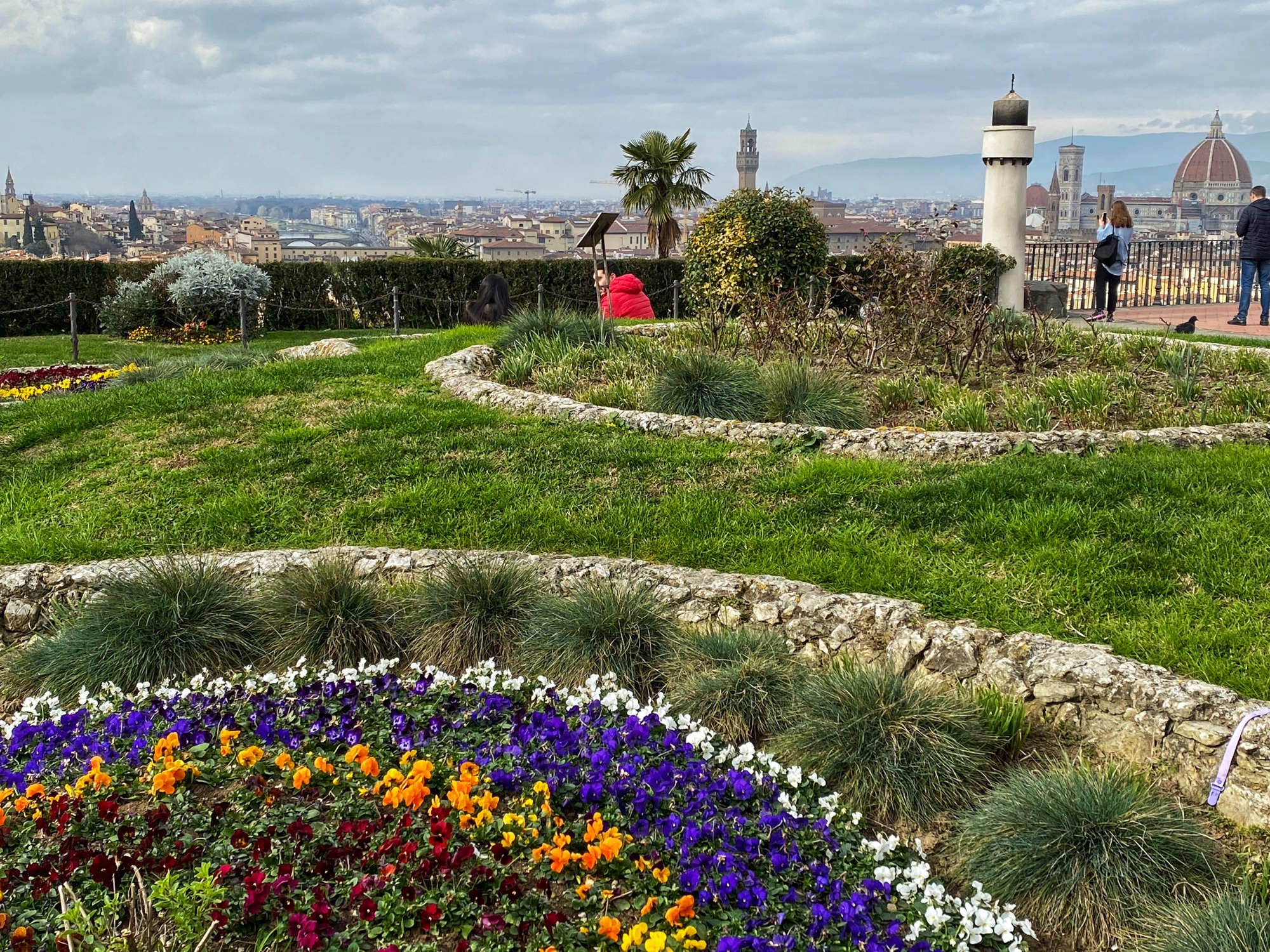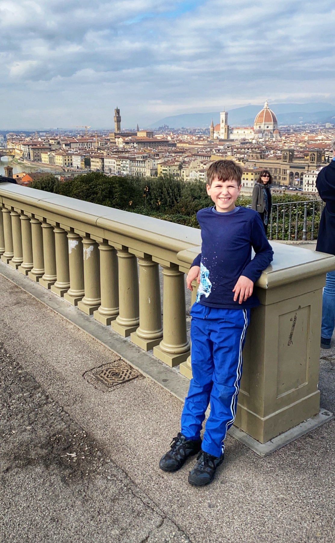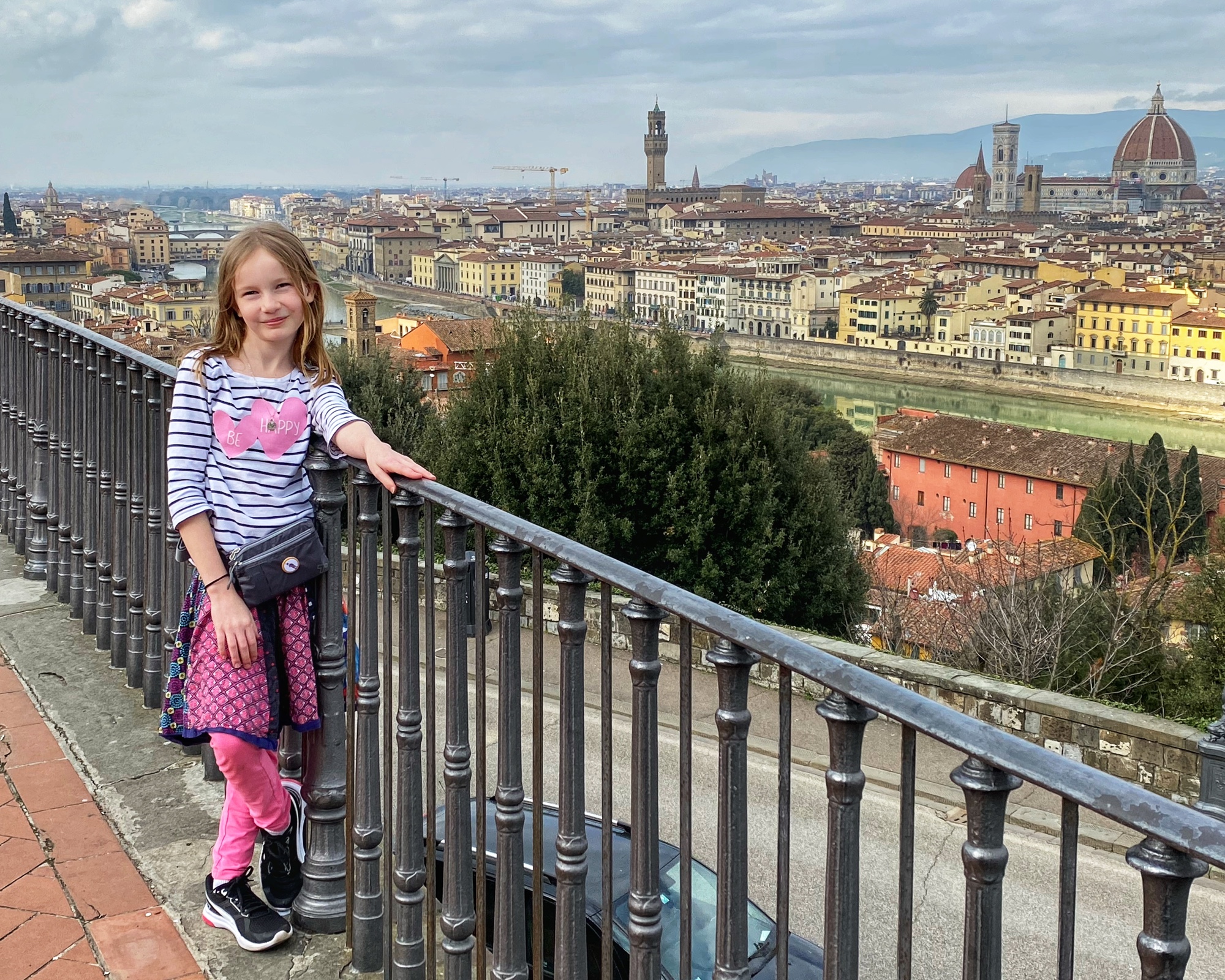 What would a seven hour road trip be without a few key stops? Another bucketlist item for Bro was seeing Michelangelo’s David, but the Galleria dell’Accademia was closed the day we passed through, so we had to settle for the outside bronze version of the David in the Piazzale Michelangelo. It turned out to be a perfect pitstop, where the kids could run around and giggle at the David, cuz could dance to a fiddler, big bro could pick up a marionette souvenir, and we got a perfect view overlooking Florence. Middle one made a friend with a mini poodle and little one showed us how to nail the perfect “jump photo” on the terrace overlooking the split city of Florence and the Arno River. What a gorgeous day!