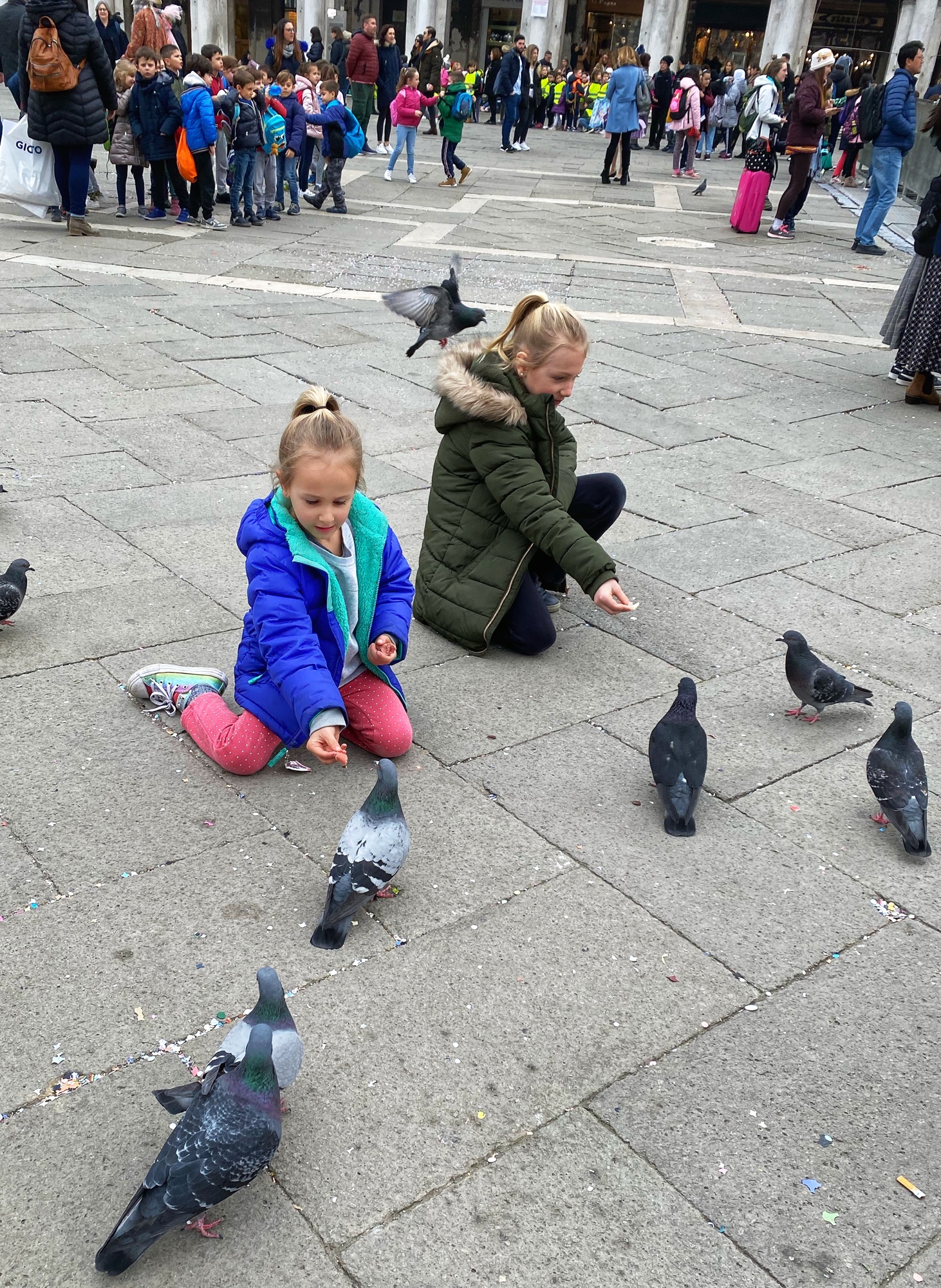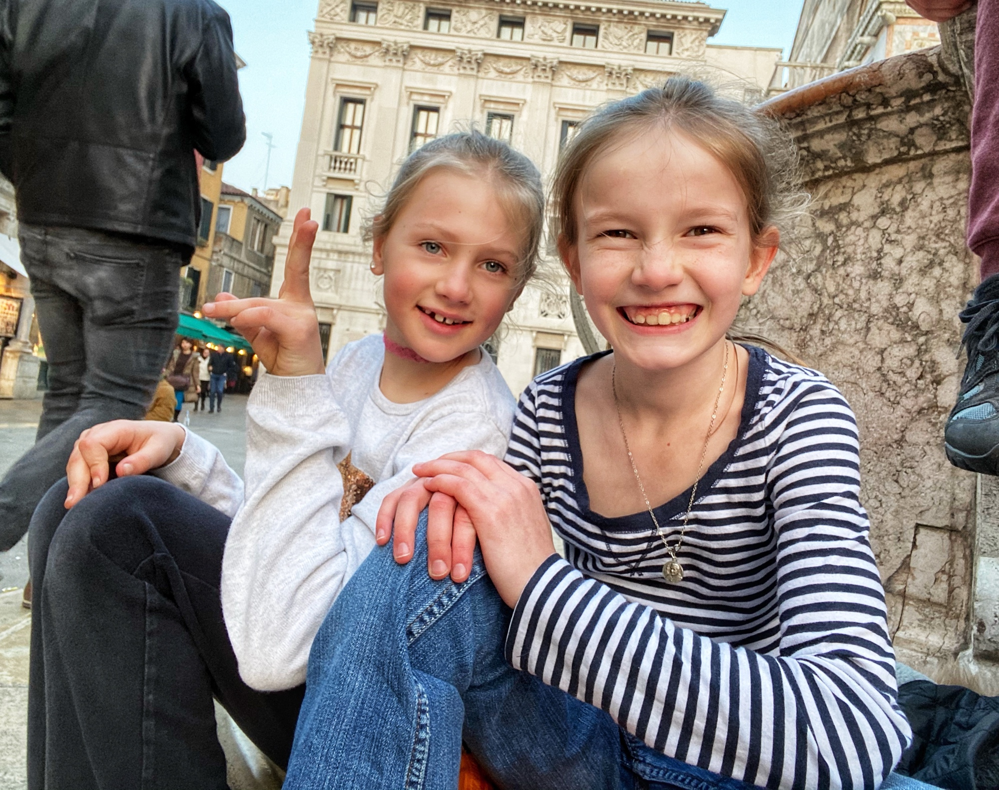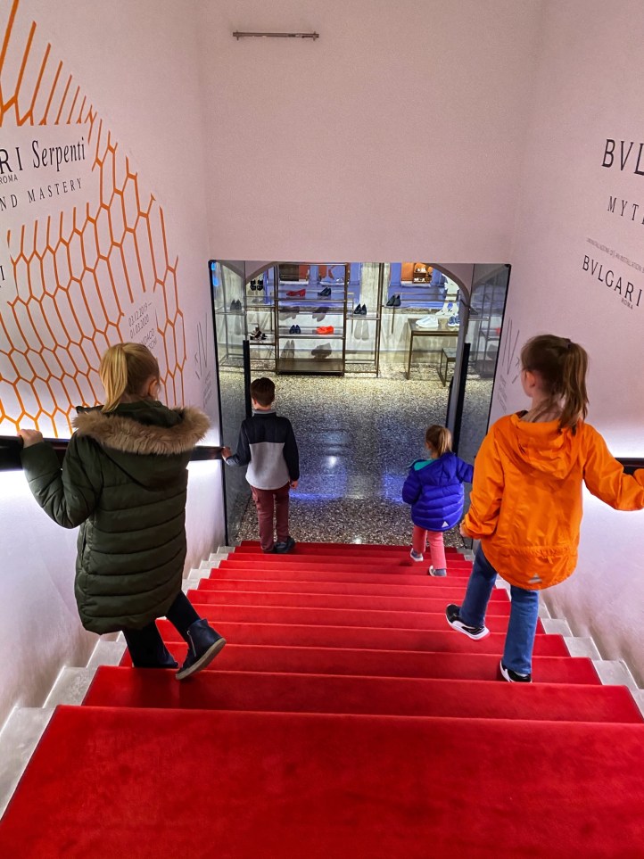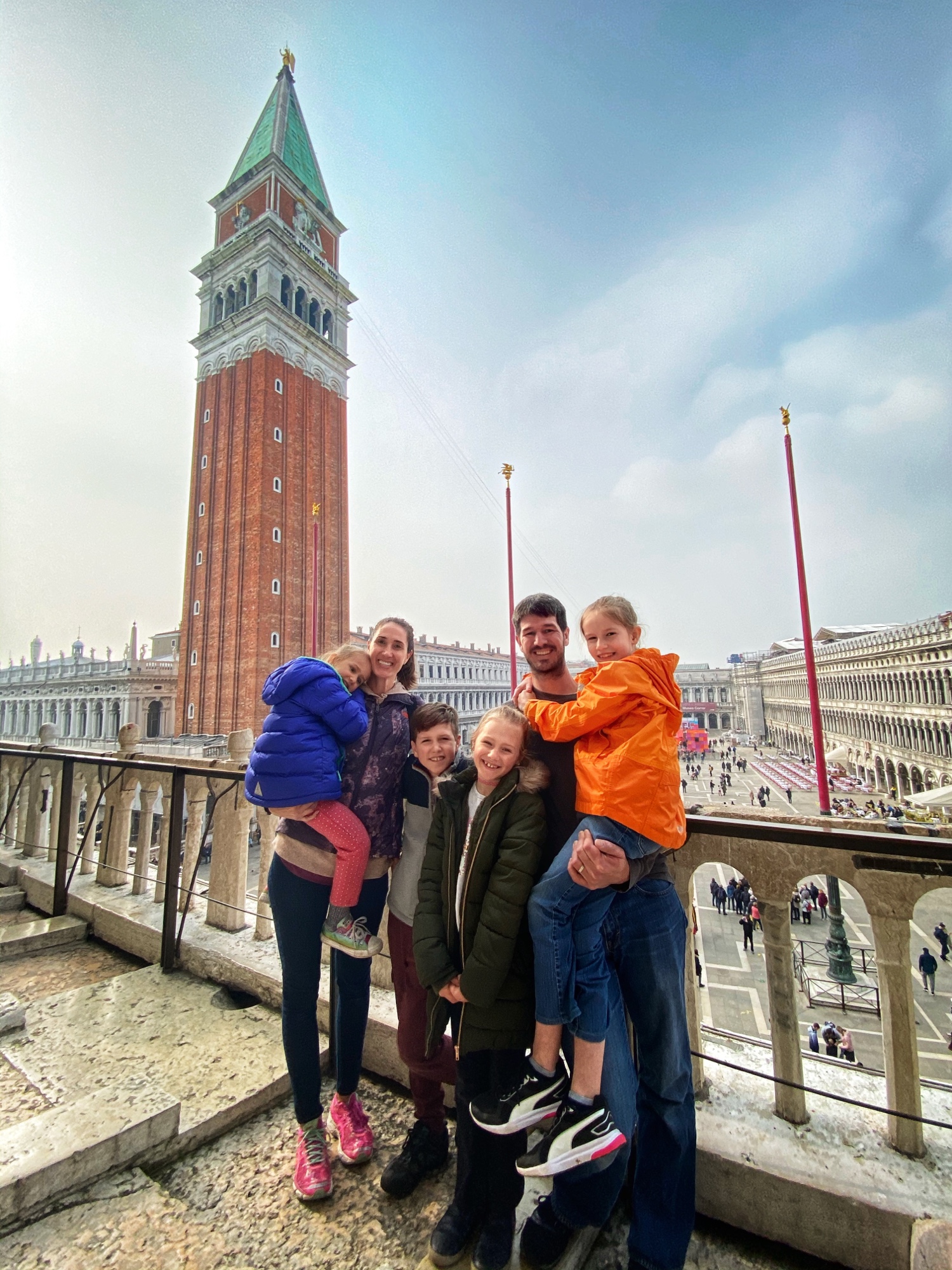 The kids had a great time chasing pigeons and dodging seagulls who were aggressively trying to steal food from our hands! We browsed endless Venetian glass and mask shops, saw all kinds of amazing Carnivale costumes, and even got a chance to ride on a gondola. It seemed like the perfect time to visit Venice…there were times we felt like we had the place to ourselves! We got a quick view of the Bridge of Sighs between Doge’s palace and the prison, but if we return to Venice I definitely want to tour Doge’s Palace.