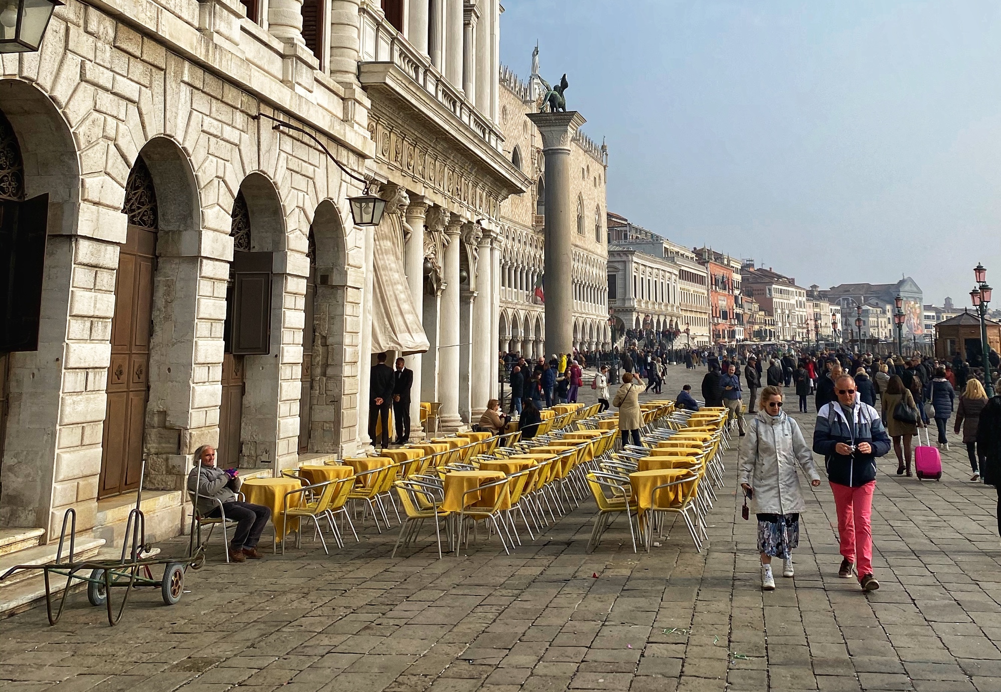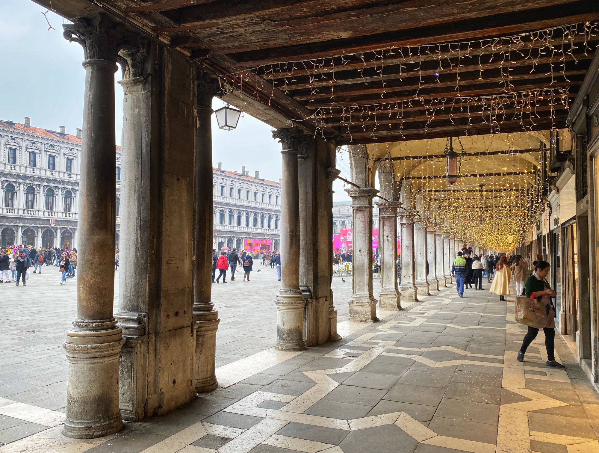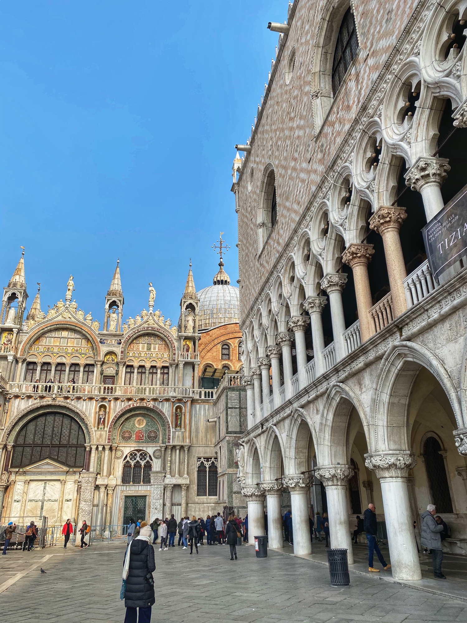 We stopped at the Rialto bridge area to make sure we signed up for a good (free) slot at the top of the high end shopping center Fondaco dei Tedeschi, the best rooftop views in town. From there we hopped back on the water taxi all the way to San Marco where we did all the things.